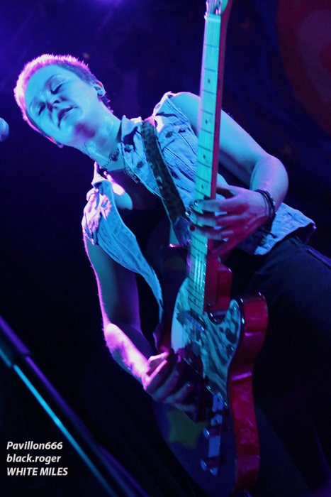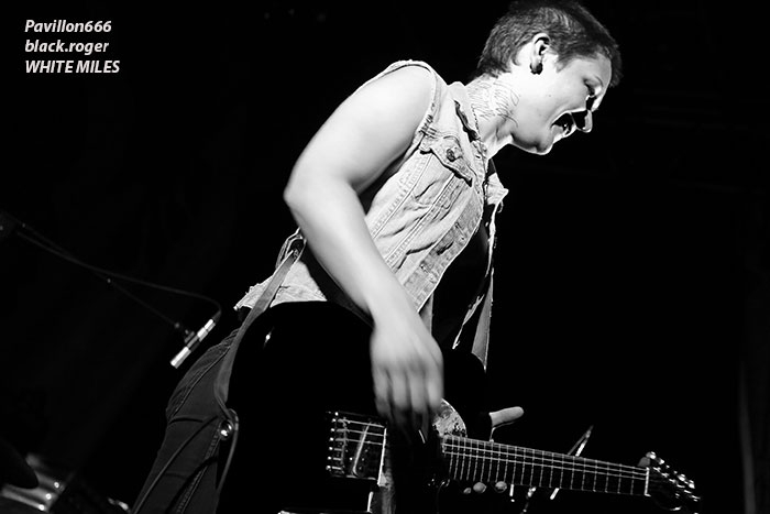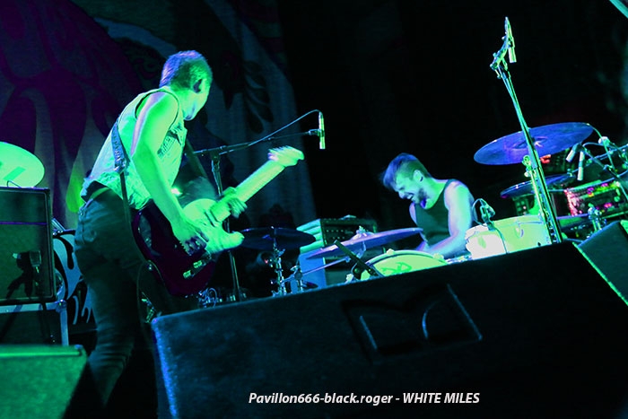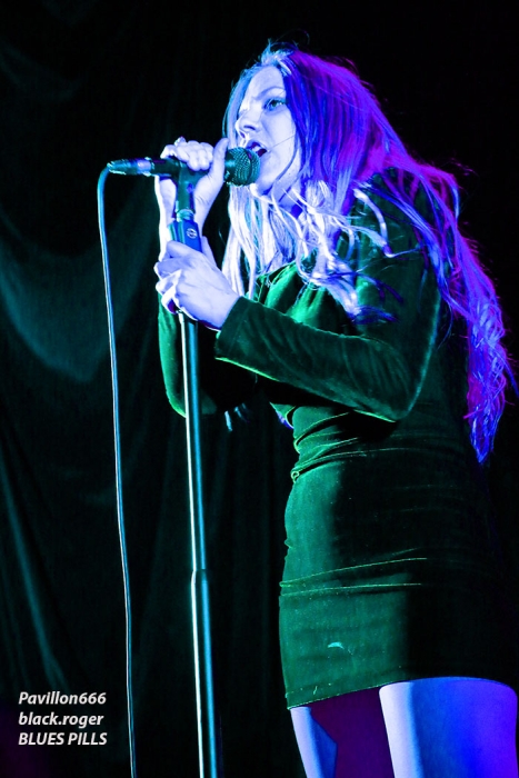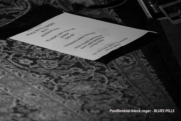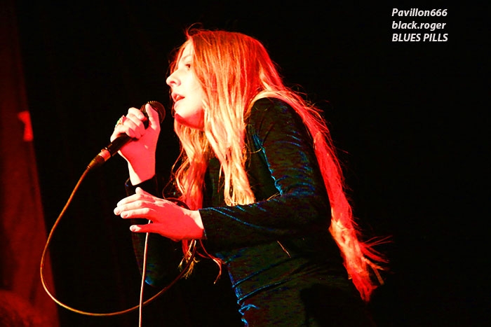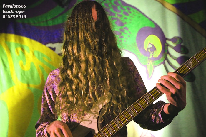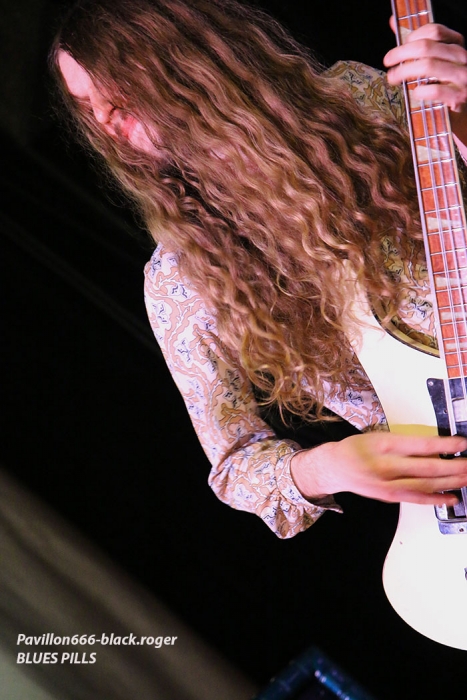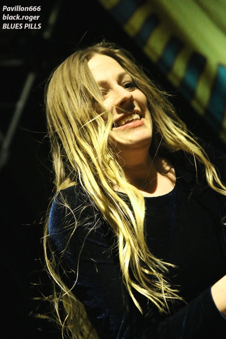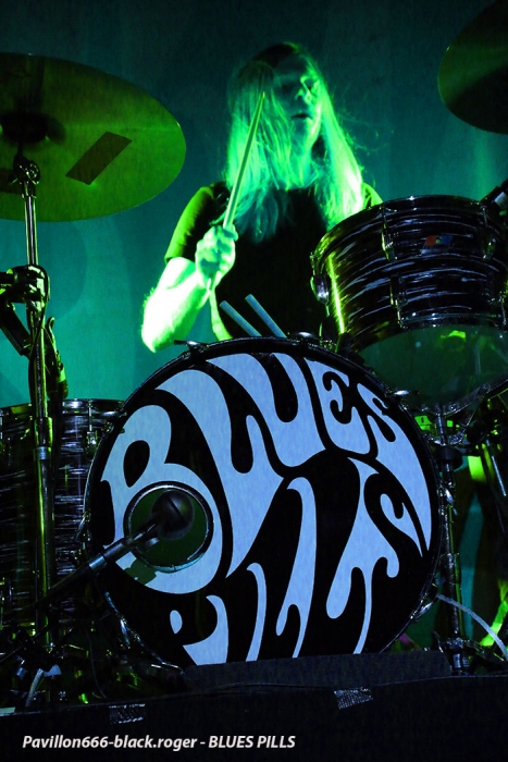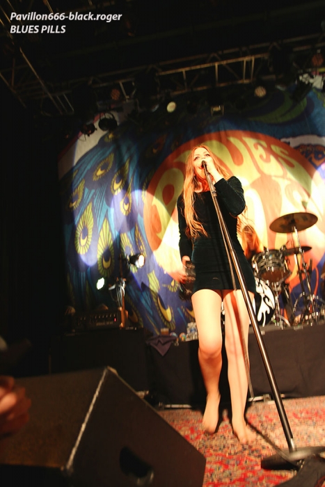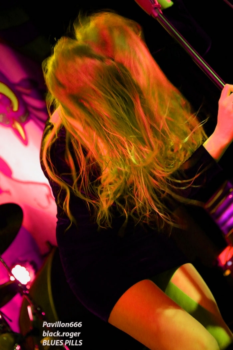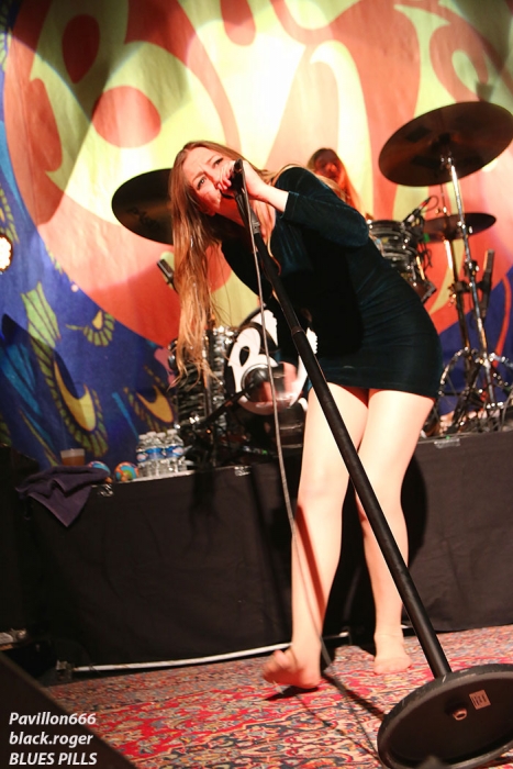 Bien entendu c’est Médiatone qui nous propose ce voyage dans le monde psychédélique et bluesy « d’avant » avec trois formations nageant dans les eaux troubles de ce « revival » rock actuel. Il est à peine 20 heures lorsque SUNDER, le groupe local formé sur les cendres de THE SOCKS, prend possession de la scène du Kao où il semble tout heureux de pouvoir jouer enfin. Ce quatuor dont les musiciens ne sont pas nés de la dernière pluie donc, profite de l’occasion pour nous présenter son premier album éponyme paru fin octobre dernier avant de partir en tournée Européenne dans peu de temps. Première impression, l’emploi de claviers Farfisa et Mellotron nous ramène par moments vers les Doors, mais pas que. Leur rock vintage nous invite à prendre la route (666), au voyage, direction les indes très prisées dans les années 60/70 (la fumée dans les yeux un éléphant me regarde…). La voix colle parfaitement au style, la guitare est « fuzz » à souhait, la basse s’envole et la batterie supporte l’édifice binaire sans faux plis. Bref, SUNDER nous rappelle la période re-visitée sans la copier, en y ajoutant sa « patte » afin d’effectuer un « revival » prenant et honnête, la classe tout simplement ! Pour la suite nous aurons droit à une petite surprise. En effet, pourquoi être une douzaine sur scène alors que deux musiciens suffisent à nous coller contre les murs ? Donc, WHITE MILES est un duo de choc Autrichien qui débarque là devant nous avec sous le bras un nouvel album « The Duel » à paraitre le 1er Avril prochain (non, non, ce n’est pas une farce vous allez voir, écouter plus précisément). Voici un batteur avec un kit tout blanc (cqfd) et une guitariste/chanteuse montée sur ressorts, le tableau est en place nous pouvons commencer avec au menu du rock bien-sûr, sauvage, aux accents punk, voire post-punk, mais aussi du blues de la « dance ». En deux temps trois mouvements Medina et Lofi vont retourner un Kao subjugué par tant de fougue et de dextérité, aargh ! Ces Tyroliens sont littéralement déchaînés en live, nous prenant à la gorge à l’aide de compositions tranchantes avec une dose binaire plus sensible parfois, le blues est là ! La scène semble ne plus avoir de secret pour eux après nombre de concerts effectués notamment en ouverture de Truckfighters, Courtney love, Eagles of Death Metal et maintenant en tournée avec Blues Pills. Bonne pioche pour le label SPV qui met en avant ce duo incroyable de simplicité, d’énergie et de charisme, on aime vraiment leur rock-blues stoner déjanté. La salle est pratiquement pleine (+ de 500 personnes) pour accueillir maintenant le combo Suédois BLUES PILLS. Enfin, Suèdois peut-être pour Elin au chant et André aux fûts mais avec des éléments venant de France (guitariste) et un ex- Radio Moscow (Etats-Unis) à la basse. Tout démarre sur une intro instrumentale avec Elin qui nous met dans l’ambiance en dansant devant nous avec son millenium tambourine. Et puis, le premier titre de la soirée « Black Smoke », hard enragé nous est jeté en pâture faisant accessoirement office de présentation des vocalises variées de la chanteuse, mais nous y reviendrons plus loin. Tout débute donc vraiment avec ce groupe qui sous une étiquette blues-rock seventies nous offre bien plus que cela avec notamment Elin qui se fait remarquer d’emblée par un chant et une présence rappelant évidemment la regrettée Janis Joplin. Et puis côté musiciens, un guitariste jeune et surdoué nous invite parfois dans son délire « Hendrixien » et puis le duo bass-batterie dérape souvent dans un hard-rock appuyé de bon aloi. D’ailleurs sur « Ain’t No Change » le solo de batterie nous laissera bouche bée. Nous aurons droit avec « Astralplane à du blues psyché planant, avec « Gypsy » ce sera une reprise de Chubby Checker, mais aussi on nous proposera des ballades comme « No Hope left For Me » avec Elin dont le timbre vocal navigue entre douceur, hargne, dérapage « soul » et chaleur bluesy, le tout accompagné d’un jeu de guitare bourré d’effets comme cela se faisait à l’époque revisitée ici. Au final, ce groupe Suédois sorti un peu de nulle part en 2011, réussit le pari de fédérer rockeurs invétérés et métalleux de tous poils avec en fond d’écran des couleurs « flashantes » nous mettant dans le bain sur une base « revival » originale en fait et surtout avec une démonstration éclatante du savoir- faire de musiciens hors pair qui valent largement le détour. Inutile de vous dire que Blues Pills a mis tout le monde dans sa poche ce soir en un peu plus d’une heure de show. Vus pour ma part lors du Metaldays en Slovénie l’an dernier, leur prestation de ce soir a confirmé tout le bien que je pensais d’eux et au final c’est bien mérité, à voir et revoir encore et encore sans modération. Set-list en photo. Ce genre de concert semble possèder la participation d’un large public actuellement et c’est tant mieux, alors riche idée de Médiatone, que nous remercions, de nous avoir proposé ce soir un certain « must » dans le style. |