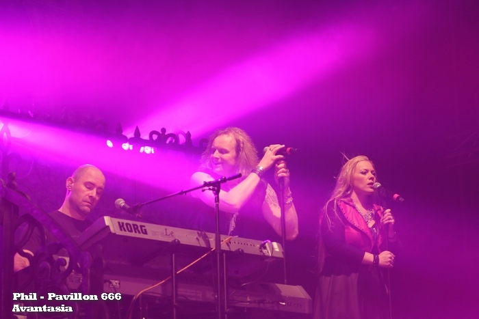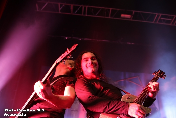 Le théâtre du trianon reçoit une troupe de metalleux venue faire vibrer les murs par une série musicale orientée power symphonic metal. Afin de faire patienter le public et de permettre à tous d'être dans la salle pour le début des festivités, le tour de chauffe est tenu par un DJ metal. Sans faire de polémique et d'irrespect à ce dernier, au milieu du terrain de jeu de Avantasia le diffuseur de titres de formations cultes semble être seul. Sa setlist pourtant choisie ne met pas en émoi le public, qui reste malgré tout courtois à l'égard de la prestation. Un quart d'heure d'attente sans passion, sans évasion. Arrive le moment tant attendu, les premiers pas posés sur la scène mettent le feu aux planches mais aussi dans l'assistance. Tobias Sammet (chant) et ses compères sont acclamés dès les premiers accords. La troupe de musiciens est toute de suite en place et diffuse un set parfaitement rodé et maitrisé. Quelque soit l'interprète, soit : Sascha Paeth (guitare, producteur - Virgo, ex-Heavens Gate), Oliver Hartmann (guitare, chant - ex-At Vance, ex-Iron Mask), Andre Neygenfind (basse), Felix Bohnke (batterie - Edguy), Michael "Miro" Rodenberg (claviers - Virgo, ex-Luca Turilli), les vocalistes Michael Kiske (Unisonic, ex-Helloween), Eric Martin (Mr Big), Jorn Lande (Jorn), Ronnie Atkins (Pretty Maids) et Bob Catley (Magnum) ainsi que les choristes Amanda Somerville et Herbie Langhans (Sinbreed), chacun livre une prestation exemplaire, chacun dégage un certain plaisir de porter ce devant le public. Sans esprit de compétition entre les musiciens, ceux-ci évoluent dans une ambiance enjouée, de liesse, exprimant une union parfaite et un professionnalisme confirmé. Les titres proposés, pas moins de 25 morceaux, font honneur à tous les albums édités par Tobias Sammet en privilégiant "Ghostlights" et "The Metal Opera". Sans fioritures pyrotechniques ou visuelles, la troupe envoie les compositions et conquiert le public par ses attitudes scéniques, son travail d'interprétation et ses lights en support. Selon les chansons, le plateau nous propose un à cinq vocaliste mettant sous les projecteurs en majorité en plus de Tobias, Ronnie Atkins, Jorn Lande et Michael Kiske. Les parties musicales sont tenues sans failles, confirmant les qualités de chaque instrumentiste. Le duo de guitaristes se partagent les soli mélangeant leurs technicités pour le bien des morceaux. Andre Neygenfind , en parfait session man, assure les parties de basse de Tobias Sammet et fait ronronner les graves pour bâtir une assise solide en compagnie de Felix Bohnke. Setlist : 00 / Intro Zarathustra Miro Version 01 / Mystery of a Blood Red Rose 02 / Ghostlights (avec Michael Kiske) 03 / Invoke the Machine (avec Ronnie Atkins) 04 / Unchain the Light (avec Ronnie Atkins et Michael Kiske) 05 / A Restless Heart and Obsidian Skies (avec Bob Catley) 06 / The Great Mystery (avec Bob Catley) 07 / The Scarecrow (avec Jørn Lande) 08 / Lucifer (avec Jørn Lande) 09 / The Watchmakers' Dream (avec Oliver Hartmann) 10 / What's Left of Me (avec Eric Martin) 11 / The Wicked Symphony (avec Oliver Hartmann, Jørn Lande, Amanda Sommerville, Herbie Langhans, Michael Kiske, sans Tobias) 12 / Draconian Love (avec Herbie Langhans) 13 / Farewell (avec Amanda Sommerville) 14 / Stargazers (avec Michael Kiske, Jørn Lande, Ronnie Atkins, Oliver Hartmann, sans Tobias Sammet) 15 / Shelter from the Rain (avec Michael Kiske et Bob Catley) 16 / The Story Ain't Over (avec Bob Catley) 17 / Let the Storm Descend Upon You (avec Ronnie Atkins et Jørn Lande) 18 / Promised Land (avec Jørn Lande) 19 / Prelude 20 / Reach Out for the Light (avec Michael Kiske) 21 / Avantasia (avec Michael Kiske) 22 / Twisted Mind (avec Eric Martin et Ronnie Atkins, sans Tobias Sammet) 23 / Dying for an Angel (avec Eric Martin) Rappels : 24 / Lost in Space (avec Amanda Sommerville) 25 / Sign of the Cross / The Seven Angels (tous vocalistes) Tobias Sammet tient le public tout au long du show et communique régulièrement avec celui-ci, amenant une certaine dose d'humeur durant ses interventions. Satisfait de l'accueil reçu, le frontman confirme que Avantasia sera rapidement de nouveau en France. Une performance intense et riche en émotion, Avantasia est entré en communion avec le public qu'il soit dans la fosse ou les gradins. Tous ont vibré sous les riffs, rythmiques et performances vocales distillés durant ce show. Tous attendent la prochaine venue de la troupe afin de renouveler cette communion, cet échange captivant. Merci pour cette soirée pas comme les autres et merci à Karen de Veryshow pour l'invitation donnée à Pavillon666. |