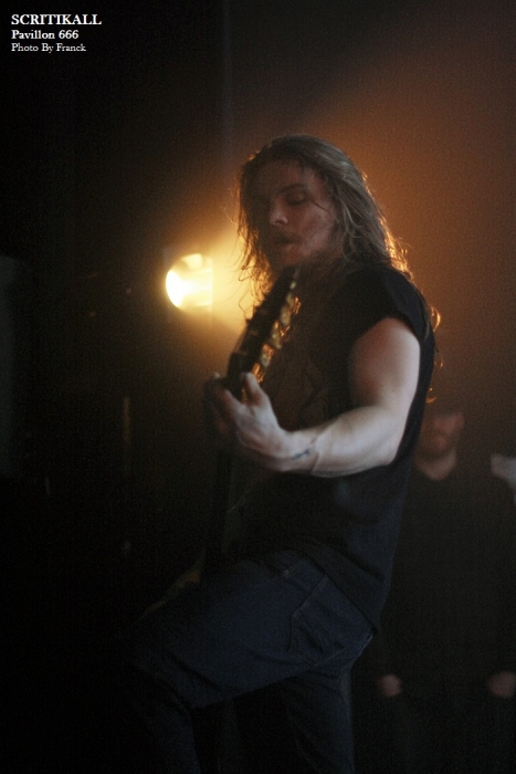 En effet, un bus qui percute deux camionnettes et qui envoie valser le tout dans une bagnole, ça ne simplifie pas le trajet. Du coup, je suis méchamment arrivé à la bourre. J’ai même failli louper le début de Breed Machine, c’est vous dire si j’étais en retard. Toutefois vous pouvez toujours retrouver les coreux de Yoda Rising sur leur page facebook et ainsi découvrir leur premier Ep. https://www.facebook.com/yodarising/?fref=ts http://yodarising.bandcamp.com/releases Les Breed Machine sont déjà bien chauds sur scène et ne vont pas tarder à commencer. Je saute aussitôt sur mon appareil photo (au sens figuré bien sur, je ne suis pas con à ce point là…) et c’est parti pour le grand rodéo avec trois autres excellents groupes pour me rattraper. Dès les premières notes ça ne rigole pas. Il faut garder à l’esprit que c’est quand même Breed Machine et lorsqu’ils se déplacent ce n’est pas pour étendre le linge. C’est un véritable assaut sonore avec Mike en tête et le reste du combo envoie absolument tout valser. Depuis 14 ans et après 5 albums, les sudistes n’ont plus grand-chose à prouver et arrachent les décibels des amplis comme ce n’est pas possible. Entre power metal, groove metal et hardcore, Breed Machine déchaîne les esprits obscurs qui planent sur la scène. L’atmosphère est lourde comme de la fonte et le chant de Mike est un déchirement dans la nuit. Nous sentons chaque vers de leurs textes lourds de sens comme une oppression omniprésente, tout comme savent le faire The Arrs ou encore l’Esprit du Clan. Du haut de la scène, Mike harangue le public pour qu’il se bouge. Et ça ne se fait pas attendre. Plus Mike hurle et plus le public envoie du circle pit en passant par le wall of death. C’est Breed Machine, pas Garcimore donc il faut de l’ambiance dans l’arène. Les mecs donnent absolument tout sur scène, jusqu’à leurs tripes. Le set sera malheureusement un peu court, ce sont les aléas des horaires et des plateaux. Ce fut une véritable effusion sonore au sein de laquelle un très jeune spectateur est venu partager la scène avec Mike pour une danse de guerre comme seul Breed Machine sait les rythmer. Grandiose !! Les suivants à envahir la scène, sont les stéphanois de Scritikall et leur décor résolument hypnotique. Le batteur est perché tout en haut d’une haute estrade et des toiles tendues font office de fond de scène où des ombres seront projetées tout au long de leur set. Je ne connaissais pas Scritikall et j’avoue que j’ai été agréablement surpris par ce combo et son approche très personnelle du metal. C’est un metal très rude qui cogne beaucoup avec des mélodies plutôt lentes et feutrées. C’est une musique qui serait vraiment solide s’il n’y avait pas tant de triggers et de kick dans la batterie qui font un raffut du diable, tant et si bien que l’on entend que cela avec des guitares qui passent bien en dessous. Rien que pour ça, c’est bien dommage et cela gâche le gros potentiel d’un groupe de talent qui possède beaucoup de personnalité. C’est également un groupe qui ne manque pas de charisme. Sur scène c’est un combo largement déployé qui sait parfaitement occuper les planches. Ils sont également relativement bien en place mise à part deux ou trois pains par ci par là, surtout rythmiques. Soufièn Daïr, le chanteur, possède une voix particulièrement prenante, une voix sombre et déchirée qui donne un méchant coté sludge à Scritikall. Personnellement, je trouve que le chant de Soufièn est la véritable marque de fabrique du groupe. Une telle qualité vocale ne peut pas laisser indifférent. Des titres très forts comme par exemple « Endorphin » sont là pour démontrer que ce groupe a bien sa place sur les plus grandes scènes et avec les meilleurs du genre à travers un metal d’un style très personnel à la croisée des chemins de bien d’autres tissus sonores qui ont forgés leur approche plutôt ouverte de la musique. A peine les décors démontés que The Arrs balancent les premiers riffs et les premières gueulantes histoires de peaufiner les balances de la scène du Tôtem. Puis soudain, sans attendre, ça part comme un coup de feu et les watts dévastent nos oreilles. La vache, c’est ça les pros !! Dès qu’ils estiment que pour eux c’est ok, à quoi bon attendre. Ces mecs ne sont pas du genre à retourner en loge pour siroter des bières en attendant que le public les plébiscite. Non, The Arrs c’est du gros, c’est du lourd avec des textes imprégnés et forts, tout simplement ce que l’on fait de mieux en France lorsque les deux grands fleuves du hardcore et du metal se rejoignent à pleine puissance. The Arrs, ce n’est pas un avertisseur, mais plutôt un avertissement sonore et lorsque tu viens, c’est pour prendre des watts plein la chetron. Ce groupe hors norme ne connait qu’un leitmotiv et ce dernier est « pied au plancher !! ». Depuis 1998, les parisiens n’ont rien lâché et trimbalent dans leur musette cinq superbes albums, un Ep et un DVD live et l’indétrônable « Dans la chair et par le sang ». Rien qu’avec ce titre, je pense sincèrement que la messe est dite. Avec Breed Machine et l’Esprit du Clan, ils sont pour moi la pointe du metalcore français. C’est pratique parce qu’avec eux, pas besoin de présentation, tu sais tout de suite qui c’est, l’empreinte sonore est suffisamment forte, alors on ne perd pas de temps en présentation. De toute façon Nico en vrai frontman n’est pas venu pour faire la causette et se perdre dans des échanges de politesse superflus, lui il envoie direct. Il expédie sans concession ses tripes sur la scène et chacun de ses mots sont comme autant de brulures. Selon ma formule habituelle consacrée, The Arrs ça fait mal, là où ça fait mal. Stefo et Pierre aux guitares sont de véritables rouleaux compresseurs. Leur son est puissant et épais comme une n