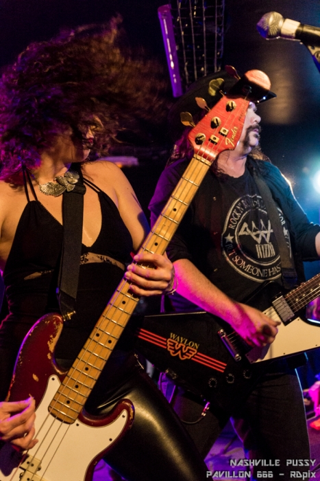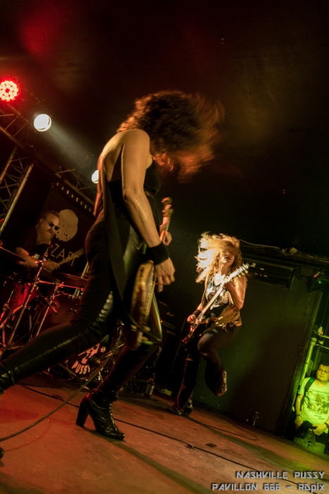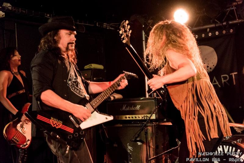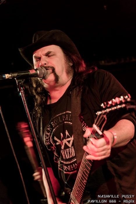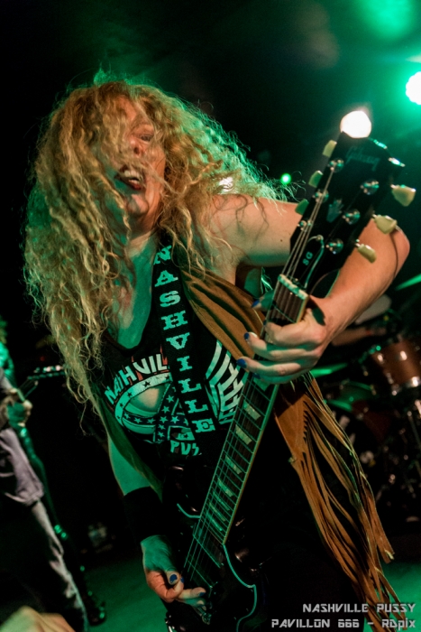 Au bout d’une longue pause c’est enfin le quatuor d’Atlanta qui a fait son entrée sous les encouragements de la foule. L’attente en a valu la peine. Les Nashville Pussy étaient remontés à bloc et n’ont pas faibli pendant l’ heure et demie qu’a duré leur set.