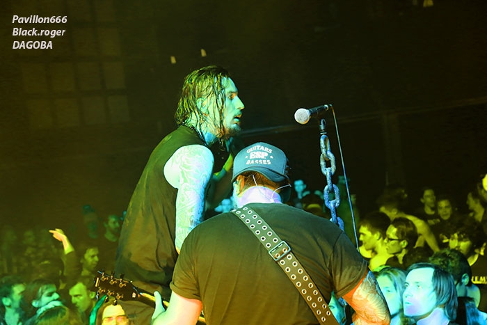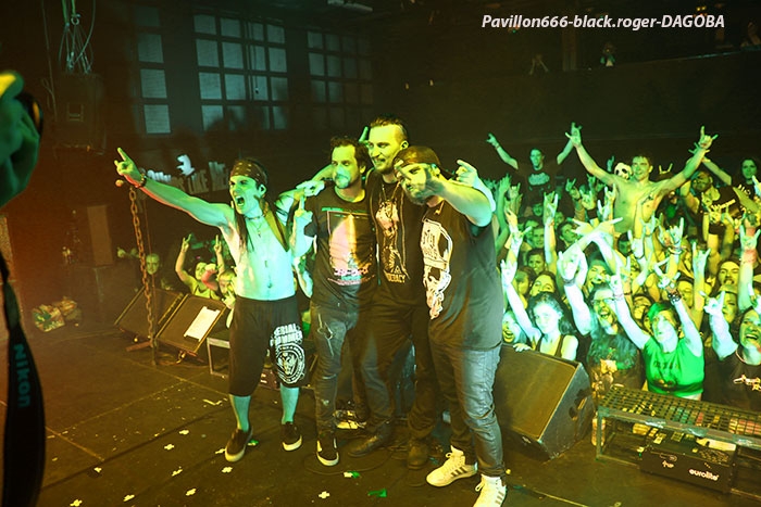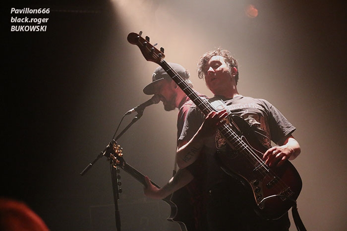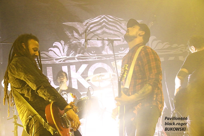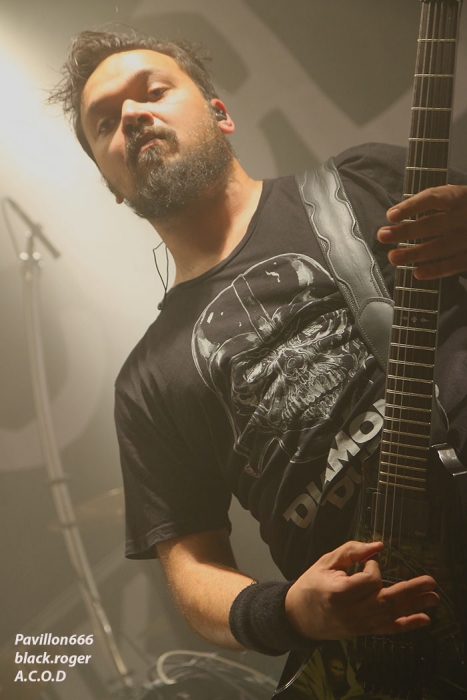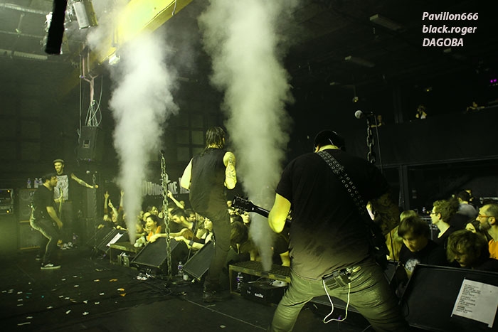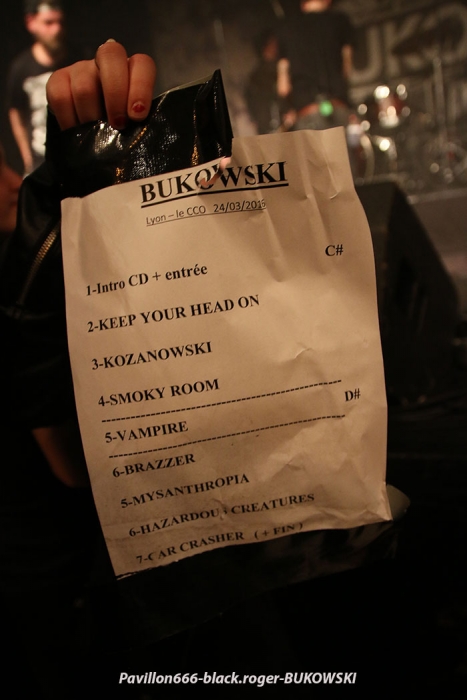 A l’évidence le public était à l’heure pour une fois (concert en semaine pourtant) et du coup, le premier combo de la soirée allait donc pouvoir exprimer sa splendeur métallique sous de bons auspices. De ce fait, dès 20heures les Marseillais (eh oui !) d’A.C.O.D ont ouvert le feu avec leur death soi-disant mélodique mais en fait énergique, enragé, puisant sa substance dans plusieurs courants du métal extrême notamment. Depuis une dizaine d’années, ces sudistes ont tourné jusqu’à plus soif en prenant tout de même le temps d’enregistrer trois albums au passage. Et cela se sent, cela se ressent sur scène. Le son est bon, le son est gros, les compositions variées, avec des musiciens qui ne sont pas des « manches » emmenés par un frontman « qui en veut » et qui nous le fait savoir. Il nous dit notamment que A.C.O.D a pour mission ce soir de « chauffer » la salle, alors il s’exécute et le résultat est là avec un public déjà en mouvement qui installe l’ambiance chaude de la soirée, mission accomplie en 30 petites minutes. Perso, j’en aurais bien repris une louche, mais bon il faut laisser la place au groupe suivant, timing oblige ! Le groupe suivant se nomme BUKOWSKI, combo parisien que l’on ne présente plus puisque déjà présent par exemple au Sonisphère en 2011 où je l’avais vu à l’œuvre pour la première fois. Et puis récemment, nous avons eu le plaisir d’apprécier en live leur gros power-rock en ouverture de Mass Hysteria à Lyon au Ninkasi Kao. Leur power-rock mâtiné de stoner enfumé a déjà conquis un large public même en dehors de l’hexagone notamment en Europe et en Amérique du sud. Alors Bukowski n’est pas né de la dernière pluie du rock burné et va nous le prouver encore une fois ce soir devant un public conquis d’avance. Bukowski a su se démarquer de la vague stoner en naviguant sur les eaux troubles d’un rock chaotique mais aussi dans des profondeurs heavy mélodique voire « grungy » à la Alice In Chains. Mais ne vous y trompez pas, le groupe sait faire parler la poudre même au ralentit en s’appuyant sur un duo basse/batterie énorme. Le son leur est favorable aussi ce soir et chaque instrument se distingue bien dans le panel sonore avec cependant un léger + pour la basse qui râcle le plancher de la scène du CCO, même si le bassiste en question semble avoir un peu « mouillé la meule… ». Avec dix ans au compteur, 4 albums sous leurs bras, les parisiens ne lâchent rien et font honneur au rock/metal frenchie. La preuve encore une fois dans cette chaude soiréen à Lyon où plus de 300 personnes enjouées ont retourné la salle de concert, alors bravo les « parigots » ! Set-list en photo. Mais le plus gros reste à venir avec les marseillais (encore !) de DAGOBA que l’on ne présente plus non plus de par leur générosité et leur gentillesse, je tenais à le préciser. Après la sortie d’un 6ème albums en juin 2015 intitulé « Tales of the Black Down » nous ne pouvons que constater que les marseillais tiennent toujours la route (666 ?) surtout en live at qu’ils nous offrent toujours du bon métal puissant, agressif dérapant bien sûr dans des contrées métalcore afin de nous offrir la possibilité de nous éclater à l’aide de mosh-parts notamment. Alors ce soir c’est la même, comme je le dis souvent, la même énergie déployée, la même technicité musicale auxquelles il faut ajouter une présence et un charisme indiscutable. Bien entendu les détracteurs de la formation pourront toujours avancer la phrase usée disant « Dagoba, c’est toujours la même chose ». Mais enfin, vous tous amateurs de riffs destructeurs, de gros son, d’envolées métalliques et d’agressivité métal éprouvées vous serez d’accord avec moi en disant qu’avec Dagoba nous sommes certains de passer une soirée métallique en diable avec défoulements se déclinant en « wall of death », « circle pits » et autres éffusions physiques sur la base de sueur et de boissons houblonnées, point barre ! Résultat de cette énorme prestation, un public nageant dans un sauna incroyable pour une ambiance de « ouf », voilà tout est dit. Et tout glisse vers la fin, que l’on ne désire pas, avec rappels et photos souvenir du, et des groupes de la soirée sur scène avec le public en nage en arrière- plan, amen ! Set-list en photo. Un seul mot pour terminer cette chronique d’une soirée réussie, « merci » ! Merci aux trois groupes qui nous ont collé contre les murs du CCO grâce à des prestations sans faille, merci encore à Sounds Like Hell productions pour l’organisation des festivités, et merci au public motivé qui a tout renversé ce soir. Pour des raisons de confidentialité YouTube a besoin de votre autorisation pour charger. Pour plus de détails, veuillez consulter nos Politique de confidentialité. |