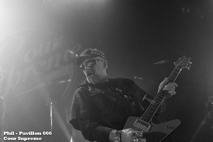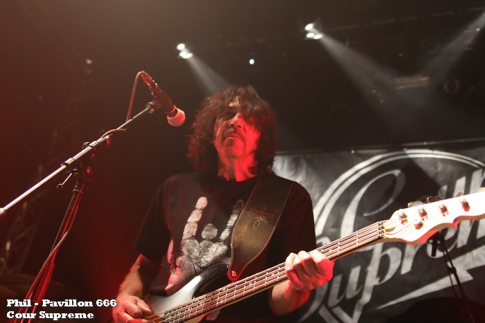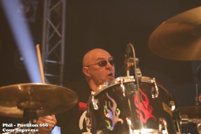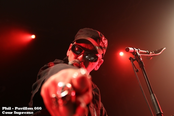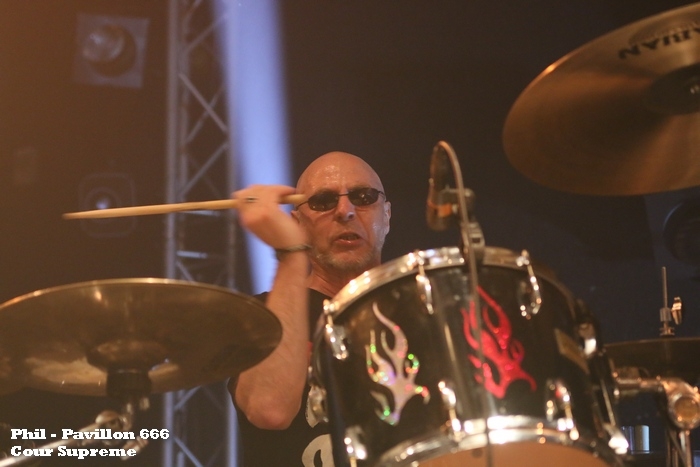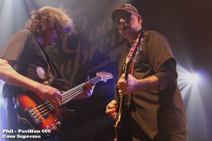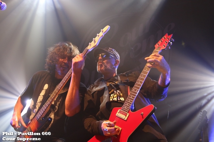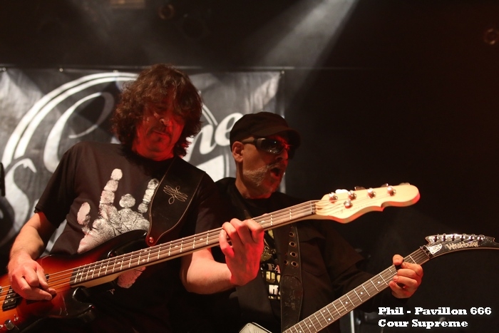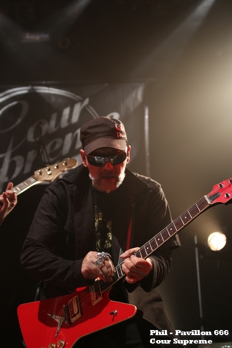 Pour ceux qui lisent la presse dédiée aux guitares, Judge Fredd n'est pas un illustre inconnu, ses deux associés, Gilles Chevalier (batterie) et Jean Marc Palma (chant, basse), ont des parcours tout aussi fournis. La musique délivrée par le trio est orientée rock imposant, tranchant ayant des influences seventies, blues rock et heavy / hard. Les musiciens ont des bagages et peuvent se balader sur ces ambiances en toute aisance, en toute simplicité. Fidèle à la tradition du power trio, chacun est à sa place et occupe l'espace sonore sans vide, sans sensation de manque. La formation envoie ses brûlots sans temps morts, avec liesse et dynamisme. Pas d'économie, la scène doit être un moyen d'expression musicale et visuelle, l'ensemble occupe les planches et ne se ménage pas. Fredd vient régulièrement prendre la parole entre les morceaux afin d'aguicher la foule participative. Le public suit Cour Suprême dans ses attentes et répond aux appels du trio : We want Beer ou les aboiements du chien... Le set se déroule à la vitesse V et semble court lorsque les lumières de la salle brillent nouveau, celui-ci a permis de découvrir une formation de qualité. La place est bien chaude pour l'arrivée de Wishbone Ash, le public a prit une bonne dose de décibels. Seul membre fondateur, Andy Powell est épaulé de Bob Skeat (basse), de Joe Crabtree (batterie) et de Muddy Manninen (guitare). Le quartette prend d'assaut le public et l'emporte dans son rock teinté de progressif, de propos 70's planant, de sensation FM dès les premières mesures. La section rythmique démontre qu'il faut compter sur elle, les deux officiers tiennent le cap en toutes circonstances en toutes tendances ou tempi. Muddy en teneur du rythme assiste son frontman dans la tenue du riff que cela soit en duo avec Andy ou lorsque ce dernier entre dans ses soli. Le finlandais confirme qu'il sait aussi s'évader lorsqu'il sent que le solo lui est ouvert. Andy Powell, au jeu démonstratif mais pas excessif, prend la pose et les gimmicks dès qu'il peut s'écarter de son pied de micro. Le guitariste, sous-estimé, que ce soit en rythmique ou en soli connait son sujet et peut en montrer à de nombreux jeunes loups. Sans faire d'esbroufes, il envoie avec puissance, dynamisme et maitrise technique. Un peu en retenue pour cette dernière soirée, le groupe vient faire le show sans être en roue libre mais il aurait agréable de trouver un peu de fougue dans la prestation. Musicalement, Wishbone Ash remet le même couvert à deux titres près que le vendredi soir au Forum. Dommage pour ceux qui ont assisté aux deux shows. Ne boudons pas notre plaisir car quel confort de pouvoir assister un ce spectacle dans les conditions offerte par l'Empreinte, la proximité avec le groupe, la simplicité des musiciens sont des facteurs appréciables qu'il convient de souligner. Avec une assistance garnie, des musiciens ravis et réjouis, les organisateurs nous ont permis de passer une belle fin de journée. |