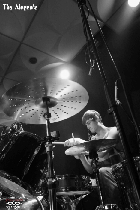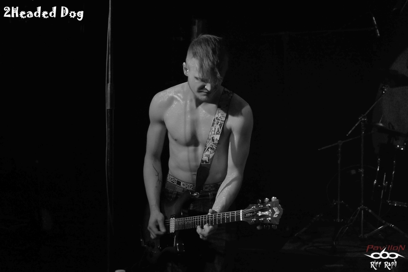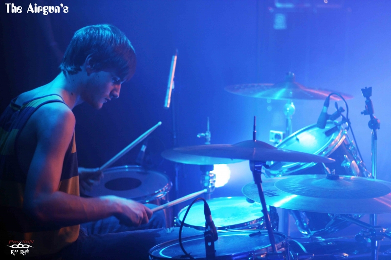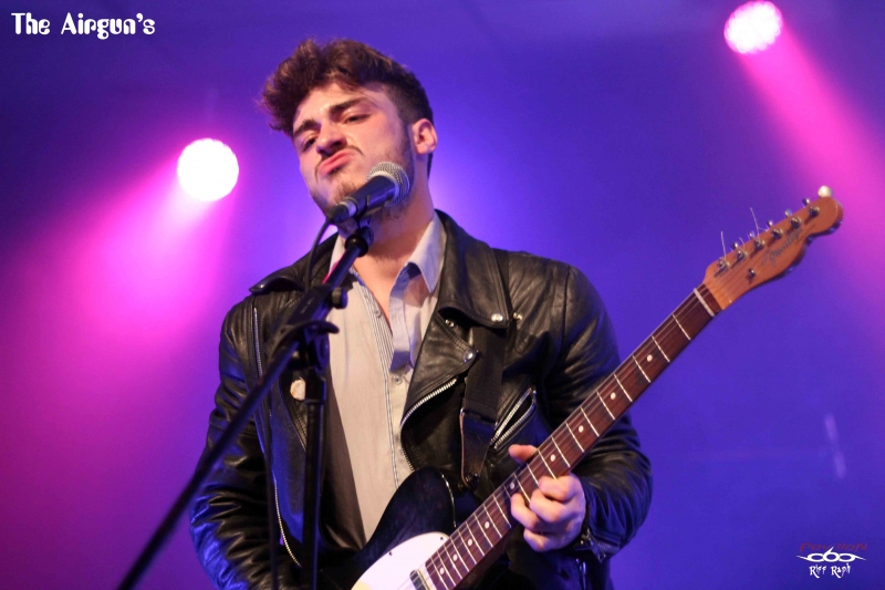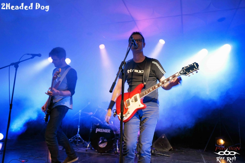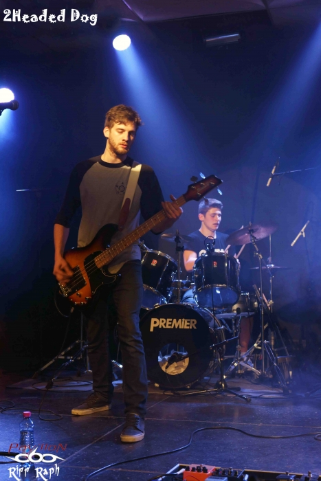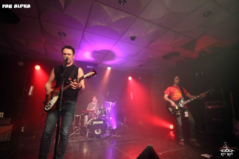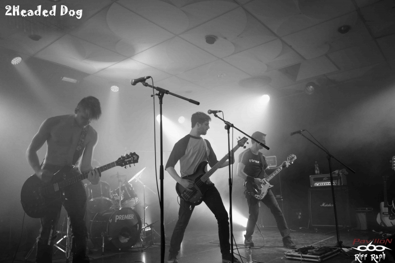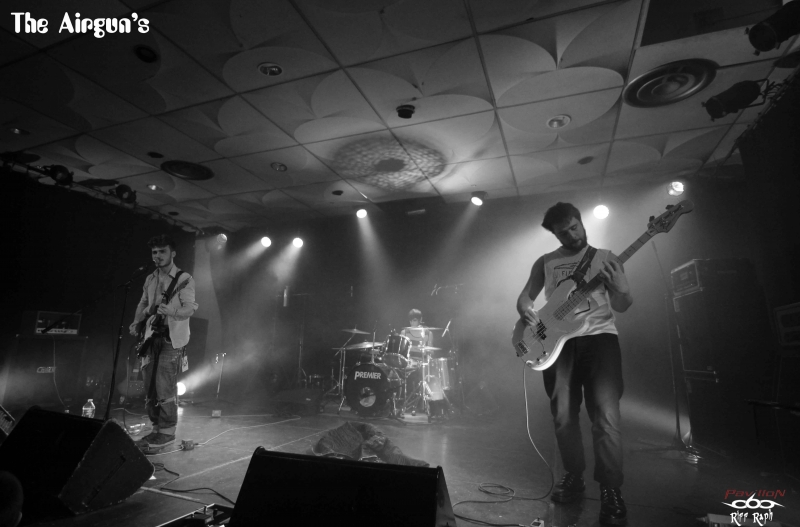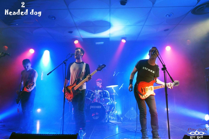 FAB ALPHA : Trio fondé en 2011, ils ont récemment gagné un tremplin régional. Composé d’Emerick à la basse et aux chœurs, de Michael à la batterie et de Fabien chanteur-guitariste, le groupe va nous délivrer ce soir un set rock progressif, parfois un peu pop/rock mais qui lorgne aussi sur des influences seventies. Les paroles en français bien travaillées sont plutôt acerbes, teintées d’humour noir et désinvoltes sur des riffs et des lignes de basse groovy. La voix de Fabien colle bien au son légèrement saturé de sa rickenbacker, appuyé par les chœurs d’Emerick. Un démarrage en douceur et introspectif pour commencer cette soirée que le public semble avoir apprécié malgré une salle pas encore tout à fait remplie. 2 HEADED DOG : Après un bref changement de matériel et de mise en place, nous passons à présent à un quartet né en 2015. Bien que récent, le groupe est bien en place sur scène avec Allan derrière les fûts, Djessy et Olivier aux guitares et Vox à la basse font aussi les vocalises. Un trio chanteur qui donne de la pêche aux chœurs qui sont très présents sur les compositions. Le combo délivre avec intelligence des influences Punk/rock noisy avec des riffs de guitare et des soli percutants sur une rythmique basse/batterie efficace. La présence scénique est énergique déclenchant quelques pogos sur certains titres. Un bon concert underground à l’ancienne. THE AIRGUN’S Pour terminer, le deuxième trio de la soirée avec Renart à la Guitare et au chant, Jeffrey à la basse et Bobo derrière la batterie. Sans doute le plus jeune groupe en moyenne d’âge et d’existence scénique (moins de dix concerts à leur actif). Et pourtant cela ne se remarque vraiment pas trop en concert. Certes quelques soucis par moments de mise en place et de justesse mais si on en juge par la prestation on peut se dire qu’il y a du potentiel. Avec de bons titres pêchus qui mélangent subtilement, le rock et le hard seventies à grand coup de soli aidés de la pédale wah-wah. Le chant est puissant, éraillé avec une basse groovy et un batteur qui ménage pas sa peine. Autant dire que ça bouge bien dans foule qui semble s’éclater. Sur scène aussi puisque Renart terminera avec une jolie plaie bien saignante due au choc malencontreux de la basse de Jeffrey avec le front de notre guitariste/chanteur. Une fin bien rock’n’roll donc pour un set qui aura clôturé de manière sympathique cette soirée. Pour terminer mes remerciements à l’association Zombi Riot et ses membres pour leur accueil chaleureux, leur gentillesse coutumière et l’invitation bien sûr ! |