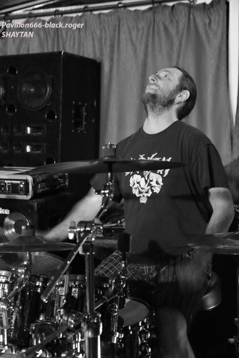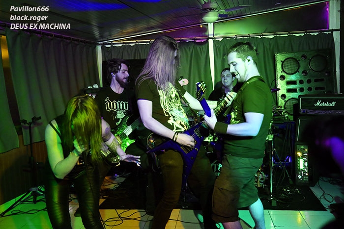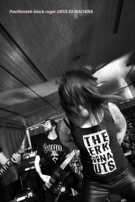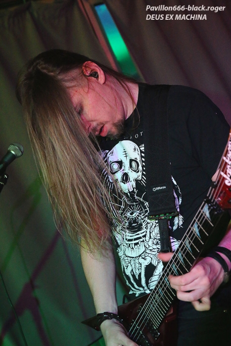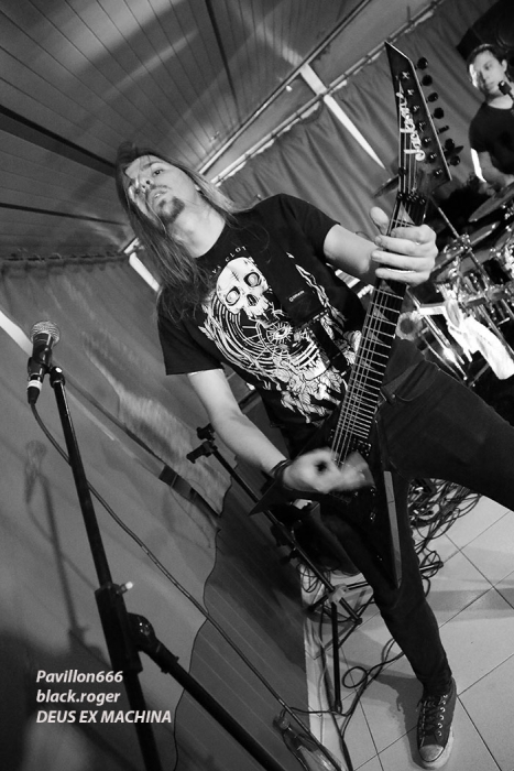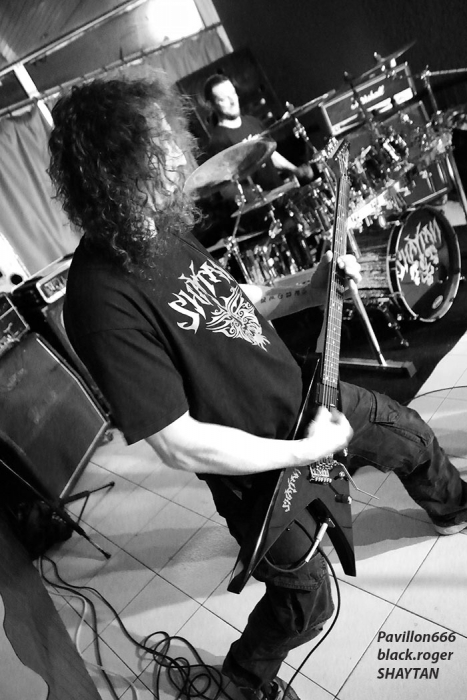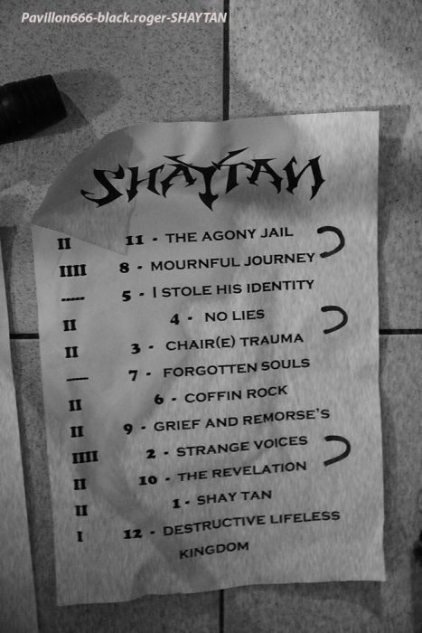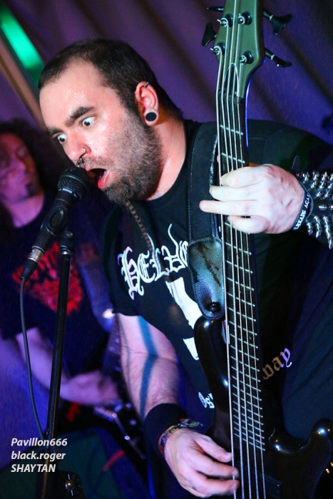 Razorback productions nous offrait donc une belle affiche comprenant nos voisins Suisses de NEAR DEATH CONDITION et DEUS EX MACHINA, mais aussi les Savoyards locaux de SHAYTAN. Et ces trois formations ont assuré sans faiblir devant une assistance concernée qui a su instaurer l’ambiance durant toute la soirée. Bar garni, accueillant et sympathique, son appréciable, que demander de plus ? Si, un peu plus de light aurait contenté les photographes présents, mais bon cette soirée était à prendre comme un « tout » bien positif je crois. Ce sont les genevois de DEUS EX MACHINA qui ouvrent le petit bal du métal-de-la-mort-qui-tue ce soir au Double Deuce. En ce qui me concerne, j’avais eu l’occasion de découvrir ce groupe chez eux à Genève dans la mythique salle de l’Usine lors du fest Heimathome l’été dernier. J’avais vraiment apprécié leur prestation et donc ce soir à Hauteville j’étais impatient de revoir dans un autre lieu et d’autres conditions la bande à la charmante Stephany. Et je ne fus pas déçu du voyage avec leur death mélodique agrémenté de touches électro et samples qui nous fut proposé. Stéphany nous a envoyé ses « growls » à la figure sur fond de lourdeurs parfois pachydermiques accompagnée de musiciens mélangeant allègrement groove et technicité pour un rendu original et varié. Du coup nous nous réjouissons à l’avance de la sortie d’un premier album studio en cours d’enregistrement. Nous souhaitons bonne chance à ce groupe très, très prometteur cela va sans dire, qui nous a montré l’étendue de son talent ce soir avec brio et énergie bien sympathique, on aime ! Set-list en photo. Rentrons maintenant dans le domaine du death-thrash qui arrache avec les locaux de SHAYTAN qui ne font pas dans la dentelle cela va de soi. Ce soir, l’ambiance, le lieu, tout semble leur convenir à merveille et cela va se ressentir durant leur set. L’énergie est au rendez-vous et la puissance de feu au taquet avec un son à décorner un bouc en rut. Le public chaud comme la braise va donc adhérer pleinement à leur prestation, une prestation qui a lieu « at home » pourrait-on dire. Alors leurs titres classiques « the agony jail », « forgotten souls », « the revelation » et bien sûr « shaytan » vont nous percuter de plein fouet empreints de lourdeurs et de vélocités abrasives qui nous détruisent ce qu’il reste de nos neurones, amen ! Set-list en photo Il faudra un certain temps aux Valaisans de NEAR DEATH CONDITION pour se mettre en place, mais le résultat va être sans appel avec un son apparenté à celui du tarmac de l’aéroport de Cointrin-Genève. Je connaissais de réputation ces musiciens du Valais mais n’avais pas encore eu l’occasion de les apprécier en live. Et ce fût pour moi une bonne surprise car ces fils spirituels de Morbid Angel n’ont rien lâché ce soir en terme de présence, de musicalité et de technicité, aargh ! Il est vrai que cette formation a déjà de la « bouteille » avec ses 15 années de présence scénique et discographique (trois albums au compteur). Ici nous sommes donc en plein brutal death, mais pas n’importe lequel on va dire. Leurs envois nous coupent le souffle sans problème avec des riffs de tueurs bien qu’étant travaillés jusqu’aux soli, ces soli qui nous permettent de, mourir tranquillement avec une certaine mélodie malsaine sous-jacente. Ces Helvètes possèdent une puissance de feu incroyable même en ralentissant le tempo. Voici donc du death technique de malade comme on aimerait en voir (et écouter) plus souvent. Ici le temps défile à une vitesse folle, ici on nous malmène non-stop l’esprit dans des profondeurs morbides (sic), ici on ne fait pas semblant, ici on nous colle au plafond et ce pratiquement sans temps mort (sic), c’est effroyable. Effroyable de maitrise avec des guitaristes incroyables et un duo basse-batterie apocalyptique. Non vraiment, rien à jeter pour ces Valaisans qui nous servent un death d’anthologie entre Origin, Hate Eternal et bien sûr Morbid Angel, on aime ! Set-list en photo Pour conclure, on va dire que pour ma première visite à un concert au Double Deuce ce fût une réussite. Alors merci aux organisateurs Razorback productions, merci aux trois formations qui ont animé la soirée, merci au public pour l’ambiance et bien entendu merci aux « patrons » des lieux pour leur accueil. |