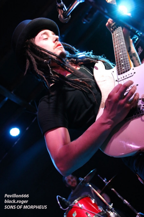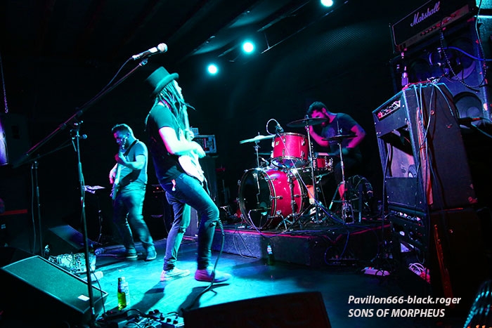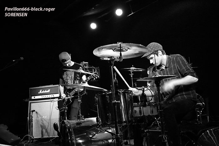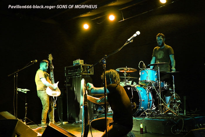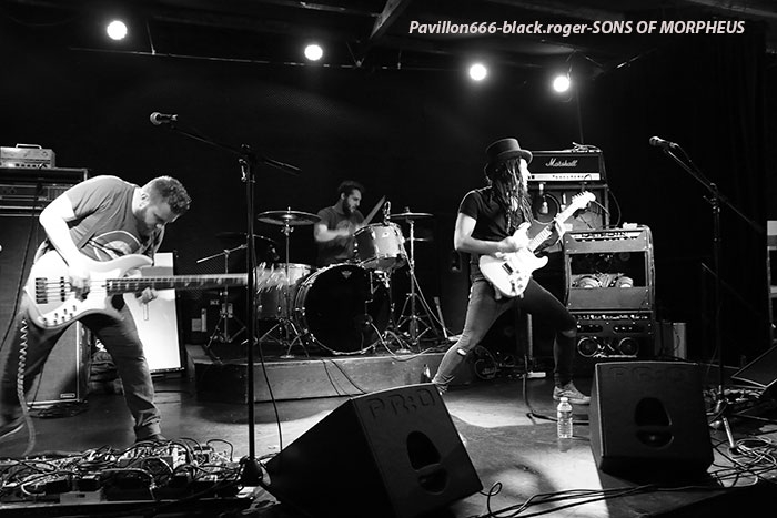 L’œil de Néron, organisateur de ces festivités dominicales nous propose donc une affiche bien rock n’roll, bien plombée, mais pas que ! Et l’on commence la soirée avec un timing bousculé car le duo lyonnais SORENSEN a eu des ennuis de pot d’échappement sur la route. Mais bon, Arthur et Martin, aidés du staff de l’orga s’installent rapidos sur les planches du warmaudio et ouvrent le feu dès 20heures15, ouf ! Mais que nous proposent donc ce duo nourri au tablier de sapeur, andouillette et autres spécialités des bouchons du coin ? Et bien nous avons devant nous un guitariste bon branleur de manche et un maître des fûts gratiné. Et ça envoie le pâté bien comme il faut dans une veine stoner de charpentier avec des dérapages sludge pour pimenter le tout. Avec un premier EP 3 titres paru l’an dernier et des live un peu partout dans l’hexagone, Sorensen fait connaitre son rock instrumental de bon aloi, et ça marche. On aime donc et malgré 20 petites minutes de démonstration scénique on adhère pleinement, bonne chance les gars. SONS OF MORPHEUS, trio Suisse, prend la suite sur les planches du Warmaudio. Et ce trio va nous emmener loin, très loin dans les méandres du rock psyché des seventies, dans les couloirs du temps des 60’s, mais toujours avec un billet de retour dans notre époque 2016. Si par moment le guitariste prend un malin plaisir à se prendre pour Rory Gallagher et autre Jimi Hendrix, il nous propose une démonstration bien personnelle et aventureuse de son style, si style il y a évidemment. Du chant parfois, de l’instrumental souvent, du blues de temps en temps, des déviances à la Jon Spencer blues explosion, Sons Of Morpheus c’est un peu tout ça à la fois. Avec son look « chapeauté » et « dreadlocké », le guitariste improvise à qui mieux mieux sur des tempi allégés ou dans des envolées binaires bien plombées de par un batteur inspiré. Mais le bassiste joue bien sûr son rôle et racle parfois la scène avec son instrument nous proposant même un solo de basse apprécié. Alors le public interloqué par cette prestation originale en soi boit comme du petit lait les riffs et tricotages guitaristiques de l’homme au chapeau. Ce musicien littéralement possédé par son instrument lâchera donc en fin de set sa guitare au sol dans un laser étudié, pauvre guitare qui sera piétinée pour finir, quelle démonstration ! Groupe particulier donc qui nous a proposé un set fulgurant original en diable et au final flirtant avec une certaine excellence, amen ! Avec l’arrivée du trio virginien KARMA TO BURN (K2B pour les intimes) l’assistance va enfin se lâcher physiquement en bourrinages de toutes sortes et stage-diving évidemment. Il ne pouvait en être autrement avec ce trio Stoner de « désert rock » et « acid rock » que l’on ne présente plus dans sa capacité à vous mettre en transe avec ses envois musclés, sa puissance de feu avec un son incroyable où tous les « pôtets » sont dans le rouge, aargh ! La sortie de leur nouvel, et 7ème opus, « mountain czar » paru en Février dernier est l’occasion de tourner encore et encore et donc de venir ce soir nous ratatiner les neurones avec leurs riffs de bucherons, riffs variés cela va de soi avec ce trio qui envoie un stoner sale et crade (pléonasme ,) Ces riffs en fait bien recherchés avec des avalanches d’envois faisant mouche à chaque fois, mais comment font-ils ? Alors devant la scène, le public n’en peut plus et il reçoit tous ces titres numérotés (eh oui !) en pleine « poire », inutile de résister vous n’en sortirez pas indemnes c’est certain. Ce soir les titres « 61 » et « 62 » issus du nouvel enregistrement figureront sur la set-list ainsi que notamment le « 8 » du premier album de 1997, les « 20 » et « 28 » de « wild wonderful purgatory » de 1999 et « 55 » et « 57 » de « arch stanton » (2014). La tuerie stoner ne sera interrompue que vers la fin pour les deux derniers titres avec un William Mecum obligé de changer de guitare suite à un ennui de « jack ». Mais à part ce petit « incident », Karma To Burn nous a encore une fois collé au plafond, quelle puissance, quels envois plombés, quelle claque tout simplement, un régal ! Set-list en photo. Encore une très bonne soirée passée au Warmaudio. Merci à l’œil de Néron pour ce plateau de choix qui a satisfait le nombreux public présent ce soir dans une ambiance de ouf ! Et bien entendu merci aux trois formations pour leur prestation sans faille. |