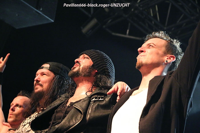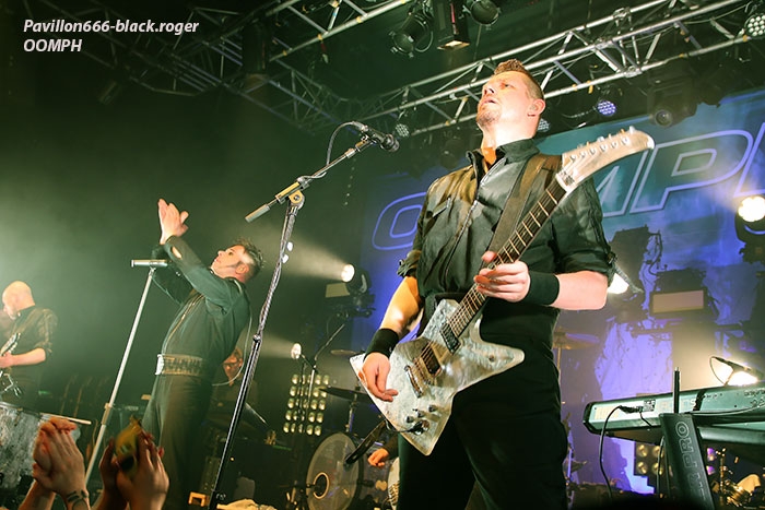 Base productions à eu la bonne idée d’organiser cette étpe lyonnaise qui touche un public particulier qui ne manquera donc pas ce rende-vous s’adressant également à tous métalleux au sens large du terme. Une fois à l’intérieur il faudra encore patienter jusqu’à 20heures pour le début du concert qui se fera avec les dark-rockers germains UNZUCHT qui effectuent cette tournée en compagnie de OOMPH afin de nous présenter notamment leur dernier single « kettenhund » paru en mars dernier. Alors, pour la première fois que le groupe de Hanovre se produit en France lors de cette tournée, ce sera une très bonne surprise en ce qui me concerne, et pour beaucoup ce soir dans l’assistance à voir les réactions positives manifestées durant leur set. En sept ans et 3 albums (sans compter les EPs et singles) ce quatuor naviguant dans les eaux sombres d’un rock/métal noir aux tendances gothiques, voire punk, a su se faire remarquer un peu partout en Europe. Et ici ce soir le public lyonnais leur réserve un accueil chaleureux. Il est vrai que sur scène le groupe sait faire preuve d’une certaine chorégraphie bien mouvementée et intéressante surtout avec un frontman charismatique au look particulier qui ira jusqu’à slammer dans le public ravi. Mais n’oublions pas les compositions variées de la formation, bien accrocheuses, qui mettent en valeur la prestation d’un excellent guitariste et d’un duo basse/batterie martial le plus souvent. Alors au final nous avons apprécié à sa juste valeur ce quatuor peu connu de par chez nous qui a ouvert de façon magistrale la soirée, on aime tout simplement. Set-list en photo. Et puis, il ne faudra pas attendre bien longtemps l’arrivée du tant attendu trio Germanique de Basse-Saxe OOMPF composé de Dero, Crap et Flux, fidèles au poste depuis 1989, qui seront accompagnés sur scène de musiciens live. Bien entendu la sortie de leur nouvel opus « XXV » a motivé le groupe pour effectuer encore une fois une nouvelle tournée qui passe par Lyon ce soir. Bien entendu je ne vous ferais pas l’affront de présenter ce groupe de métal-indus-électro qui existe depuis 25 ans déjà et qui a inspiré leurs compatriotes Rammstein entre autres. Bien entendu le show va être assez spectaculaire avec de superbes lights et jets de fumée entre autres. Bien entendu Dero va mener la « danse » en accentuant le côté martial bien souvent à l’aide de percussions complémentaires devant lui. Bien entendu tout sera joué au taquet avec une rare précision. Leur mélange EBM électro gothique et métal fait toujours mouche et le public passe des sauts en l’air bien rythmés aux démonstrations de vagues mélodiques le moment venu. Mais, car il y a bien souvent un « mais », j’ai, divisé en trois parties leur prestation. Tout d’abord une première partie bien enlevée, assez puissante. Puis une seconde partie un peu molle et monotone. Et enfin une troisième partie où le groupe remonte au créneau d’un métal indus plus enjoué, plus décapant dirons-nous. N’oublions pas non plus le côté humoristique de OOMPH qui nous a proposé notamment le très connu « ça plane pour moi » tube de Plastic Bertand (1978), j’en souris encore ! Au final, OOMPH nous a gratifié d’un show assez remarquable et bien remarqué, il est vrai que nous n’avons pas l’occasion de voir cette formation dans l’hexagone, alors nous en avons profité largement, les fans ultime encore plus ! Set-list : Alles aus Liebe, Labyrinth, Träumst Du, Mein Schatz, Der neue Gott, Unzerstörbar, Als Wärs das letzte Mal, Wunschkind, Jede Reise hat eine Ende, Bis der Spiegel Zebricht, Jetst oder nie, Niemand, Mitten ins Herz, Unter diesem Mond, Auf Kurs, Sandmann, Gekrenzigt, Augen auf !, klein stadtboy, Gott ist ein Popstar, Dankeschön. Que dire de plus ? merci tout simplement. Merci à Base Productions organisateur de concerts émérite, merci au Ninkasi Kao et merci aux musiciens des deux groupes qui ont su contenter un public venu en nombre les applaudir. Pour des raisons de confidentialité YouTube a besoin de votre autorisation pour charger. Pour plus de détails, veuillez consulter nos Politique de confidentialité. |
