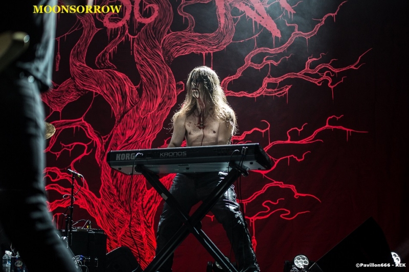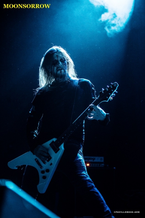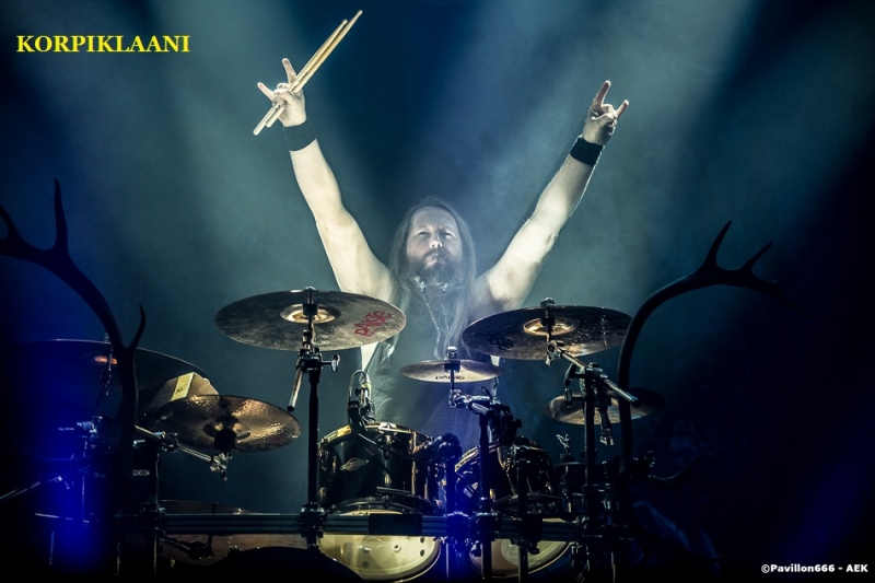 BELENOS, les locaux de la soirée, ouvrent les hostilités avec son celtic black métal. Influencée par la scène Black norvégienne, la musique des bretons est un savant mélange de Black et de Pagan Metal. L'univers de BELENOS est comme un voyage solitaire à travers les landes sombres et sauvages et les anciennes traditions celtiques. 2016 sera marqué par le 20e Anniversaire du groupe et la sortie du nouvel album « Kornôg ». Un set de 45 minutes qui a bien préchauffé le public. Aprés une pause fraicheur, changement d'ambiance et place à MOONSORROW. Ces Croisés du Pagan Epic Metal ont su créer un métal alliant la chaleur et les ambiances des instruments folkloriques avec des textes évoquant les sombres heures guerrières des légendes finlandaises. MOONSORROW a sorti son 7e album, "Jumalten Aika", le 1er avril 2016. Un set parfaitement maîtrisé salué par un public déjà bien chaud ! Encore une pause binouze avant la tête d'affiche de la soirée : KORPIKLAANI. Fondé en 2003, le combo Finlandais a réussi le pari de fédérer les Métaleux du monde entier autour d'un heavy thrash Métal mâtiné de musique folk traditionnelle et basé sur des textes des mythologies celtes et nordiques . Avec pas moins de 9 albums au compteur, des tournées aux quatre coins du globe, "le Clan des contrées Sauvages" nous emportent dans leur univers chaleureux où vapeurs d'alcool et contes traditionnels font bon ménage! Un set d'une heure 30 de folie furieuse où les grands classiques ont été repris en choeur par un public ravi de sa soirée Pagan made in Finistère ! Merci à la Carène et Valérie de Nuclear Blast France pour l'accréditation et le pass photo. Merci également à Laurent du label Finisterian Dead End. Crédit photo Anne Ker. |
