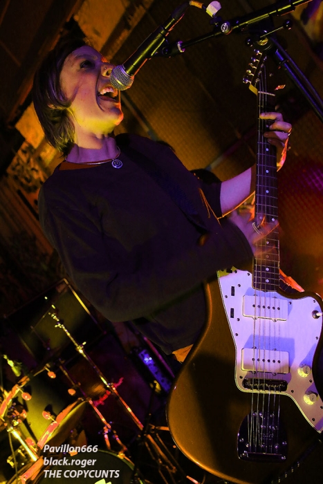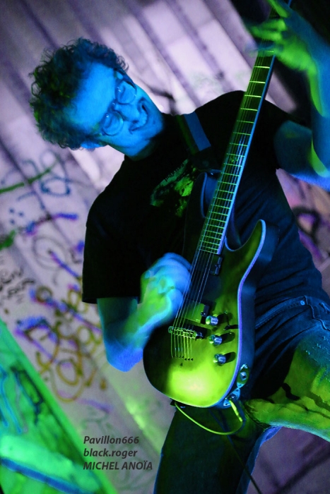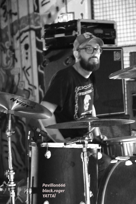 Tout s’annonce bien, seul petit bémol en ce qui me concerne, et pour diverses raisons d’horaire entre autres, je n’ai pu assister qu’aux sets des 3 premiers groupes, le concert ayant débuté à 22heures et des poussières... Alors, vous trouverez ci-dessous ma chronique et mes photos pour THE COPYCUNTS, MICHEL ANOÏA et YATTAÏ. Sorry pour FAXE et PLEVRE, une autre fois sûrement ! THE COPYCUNTS donc débute la nuit avec son garage-rock couillu, le groupe étant emmené par une chanteuse/brailleuse/guitariste, un autre guitariste à ses côtés et un bassiste/rickenbacker, sans oublier le Romain de Ta Gueule derrière les fûts transpirants. Ce quatuor punk navigue également dans les eaux crades d’un certain grunge énervé, c’est carré, plombé, dirty aussi. Bref, les envois son costauds et variés., On nous propose des titres de leur album sorti en mars dernier intitulé « thirsday » mais aussi du nouveau à savourer sans modération. Bref on aime leur spontanéité, leur rock efficace et violent en même temps même si parfois en fond d’écran se profile de vicieuses mélodies abrasives. Merci donc pour cette découverte perso ! Puis ensuite, c’est MICHEL ANOÏA qui s’y colle. Le quatuor évolue dans un grind-death claquant que l’on pourrait classer entre Napalm Death et the Dillinger Escape Plan. Mais ce créneau est trop réducteur à mon avis. Car ici les riffs sont divergents et convergents avec de la noise sous roche et des dérapages jazzy en fusion et non en confusion. Inutile de suivre des yeux le chanteur dans l’assistance vous en perdriez la vue risquant l’ophtalmie. Miche Anoïa ce n’est que de l’amour avec une technicité éprouvée, d’ailleurs le frontman nous dira entre deux bourrasques décoiffantes « mangez du fromage, faites l’amour » ! Si vous n’avez pas compris ce n’est pas grave, vous retrouverez ce groupe particulier prochainement car une fois en action ce quartet ne peut vous laisser indifférents. Quel blizzard, quelle tourmente maitrisée, on aime tout simplement. A voir et revoir en action sans modération cela va de soi ! C’est maintenant YATTAÏ, trio de grind tornado venu d’Angoulême qui va s’éclater sur la scène des lieux devant nos yeux médusés. En effet ici ça blaste à tous les étages, leur grindcore est goûteux, rapide, sans concession, comme l’on aime quoi ! On aime donc ce côté punk dans l’urgence, ce côté crust, ce côté power-violence qui vous colle contre les murs avec des titres courts ne dépassant que rarement la minute, « get a grip » ! Accrochez-vous donc à l’estrade, au enceintes, à votre voisin ou voisine car ça déménage un max, pas le temps de respirer quoi ! Alors bravo à Will, Thib et Goat pour ce déluge sonore implacable qu’ils nous proposent depuis plus de 10 ans déjà, on ne s’en lasse pas. Yattaï nous sert donc son mélange improbable de death-grind flirtant même avec un certain post-core, vous voyez le tableau, Non, et bien vous auriez dû venir ce vendredi quelque part dans Lyon pour vous faire ramoner les conduits auditifs de belle façon par ces rois des split Cds et Eps, peace ! Pas vu donc PLEVRE et FAXE, mais ce n’est que, partie remise je pense. Merci à D7C pour cette soirée hors du temps et de notre « belle » société, amen ! |