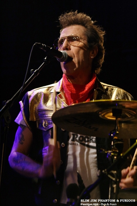 Les Stray Cats étant un groupe toujours plus ou moins en standby, Slim Jim a joué dans de nombreuses formations dont une particulièrement excellente qui s’appelait les « Head Cat » et qui a malheureusement pris fin avec le décès tragique de son ami Ian Fraser Kilmister que nous connaissons tous sous le pseudo de Lemmy et que nous regrettons beaucoup.