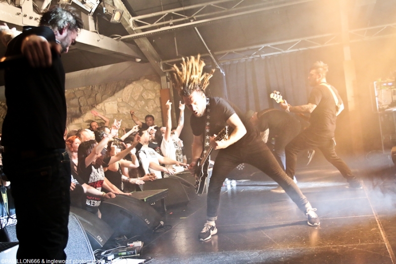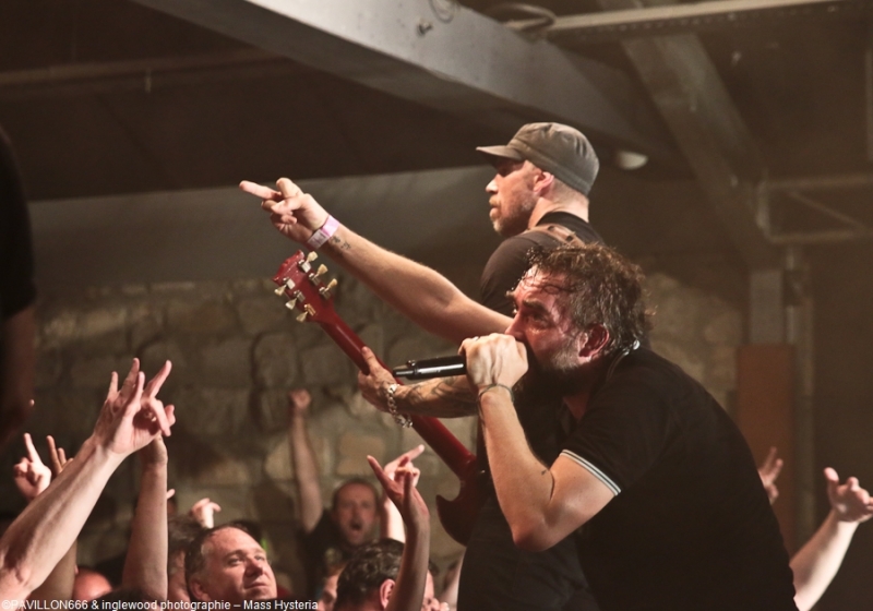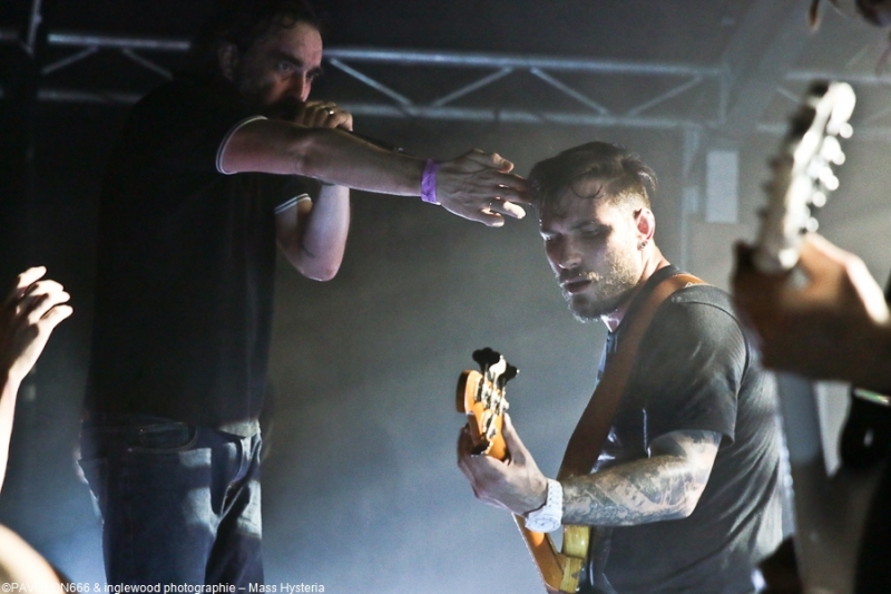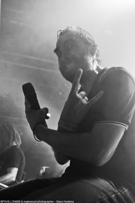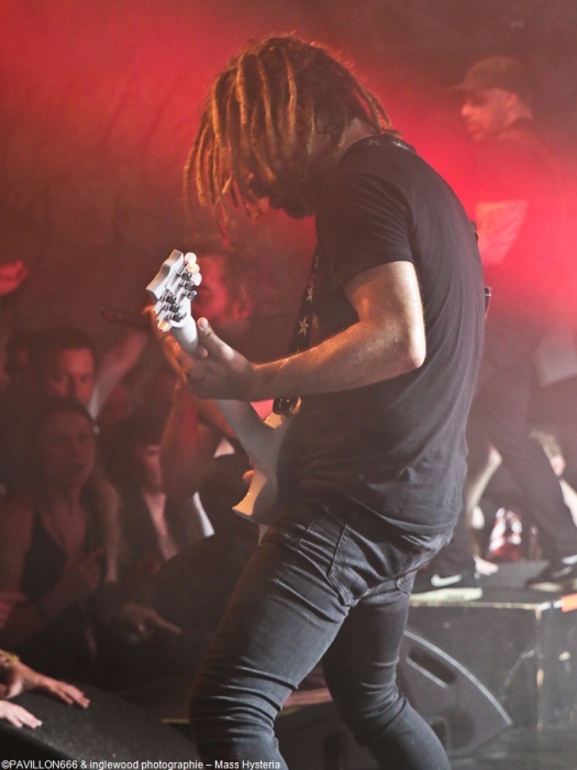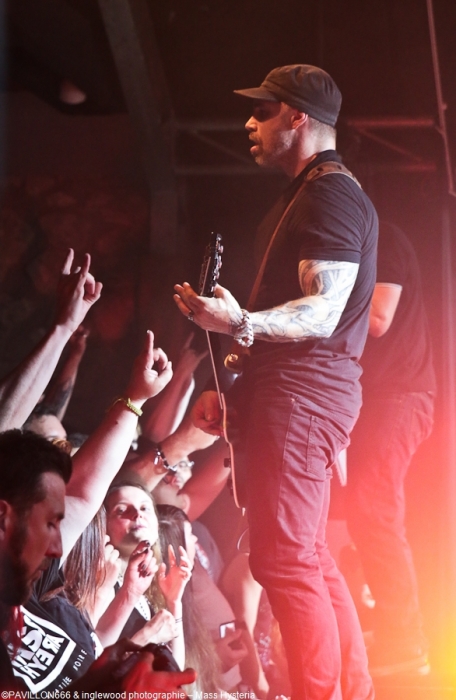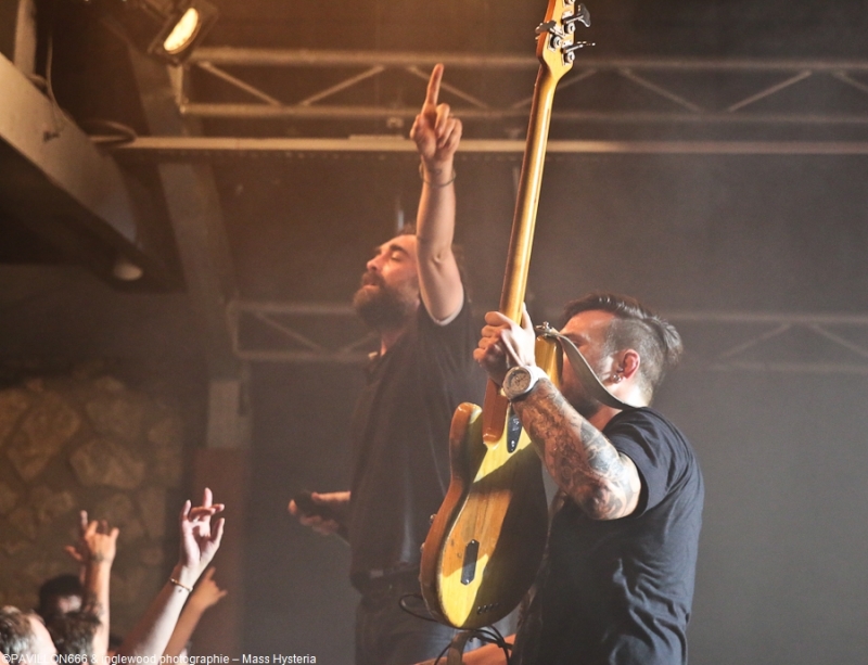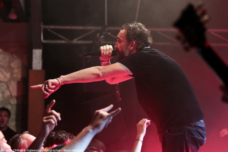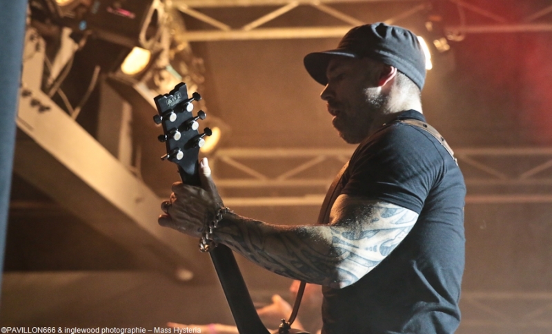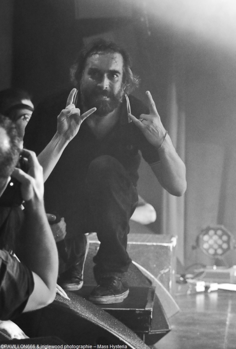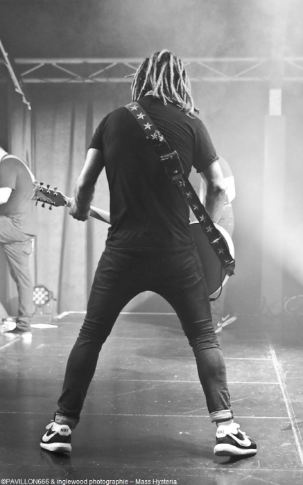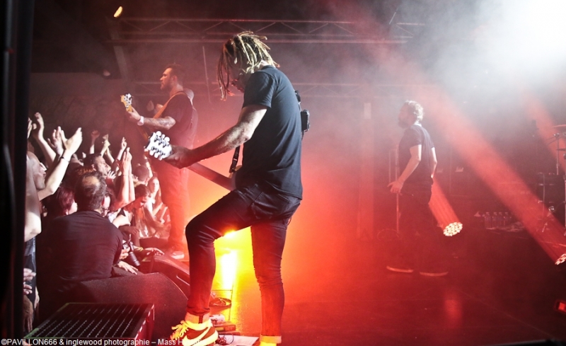 Un concert de dingue par un groupe fort expérimenté et généreux. Cette petite commune marnaise plutôt morne et peu sexy abrite en ses murs une salle de concerts comme on les aime : l'Orange Bleue. À taille humaine et permettant une proximité avec le public c'est un lieu parfait pour tout concert de rock. À un détail près, on va en reparler plus tard, la CHALEUR !!, on va être clair, tout le monde, spectateurs de la fosse, du fond, du bar ou d'ailleurs, musiciens sur scènes etc.. on a tous été complètement trempés tellement la chaleur dans l'Orange Bleue est intense. C'est ce qu'on cherche, en fait ! En amuse-bouche, les locaux de We are Shadows. Pratiquant un metal/ rock bien puissant en formule trio avec une jolie demoiselle au chant, les Carolomacériens (de Charleville-Mézières, donc) pratiquent un son teinté 2000, on entend du Deftones, du Paramore et peut être un semblant de chant hurlé un poil hardcore. Pas facile à décrire mais bien agréable à entendre et à voir, We are Shadows se démarque clairement par le chant de Marylor. Elle n'a pas ménagé sa peine pour emmener avec elle une salle impatiente et déjà bien en sueur. Un groupe bien carré à découvrir et suivre qui m'a fait patienter avec plaisir, mélangeant le charme et la violence, tout ce qu'on aime en quelque sorte. Fédérateur ! Définir l'ambiance d'un concert de Mass Hysteria par un mot, c'est fait. Je développe ? Je rajoute chaud (un truc de dingue), groovy, engagé, bien puissant, super en place et foutrement efficace. Il est 22h00 quand résonnent les premières notes de « Chiens de la casse », une manière de mettre les points sur les « i » dès le départ. Titre phare du dernier effort des Mass: Matière Noire, il permet à l'Orange Bleue, jusque-là assez paisible, de se mettre dans un sale état, la fosse s'anime et il est temps d'échanger nos sueurs. Deux heures de show pendant lesquelles, nous, les furieux et furieuses ont été comblés par un groupe visiblement super à l'aise (qui en doutait), terriblement généreux et en contact permanent avec son public. Une scénographie simple mais efficace, à base de lumière blanche et de strombos renforce la puissance brute des titres joués ce soir. Je ne ferai pas l'affront de décrire le répertoire ou encore l'aisance du groupe en live, pratiquement tous les metalleux de France ont au moins une fois croisé le chemin de Mass Hysteria, que ce soit dans un petit rade miteux perdu ou sur la scène du HellFest. Les mecs sont Positifs à bloc mais également révoltés et fédérateurs. L'Orange Bleue a tout donné et s'est mise minable pour tenter de rendre ne serait-ce qu'un 10e de l'énergie reçue. Mass Hysteria c'est la fête metal à l'état pur, c'est prenant et fatiguant, mais c'est bon !! À ne louper sous aucun prétexte s'ils décident de construire leur tanière près de chez vous. Intro : ACDC - Get It Hot Set-List : Chiens de la casse Vae Soli Vector equilibrium World on Fire Tout doit disparaître Babylone Une somme de détails P4 L'Enfer des Dieux Notre complot Failles L'Archipel des pensées L'Espérance et le refus Tout est poison Pulsion Positif à bloc Rappels: Contraddiction Donnez-vous la peine Enter Sandman (Metallica cover) (extrait) Respect to the Dance Floor Plus que du métal Furia Outro Michael Jackson's Beat It Ne me reste qu'à remercier l'orga Bords 2 Scènes pour le pass accordé à Pavillon666 et bien sûr l'Orange Bleue pour l'accueil. |