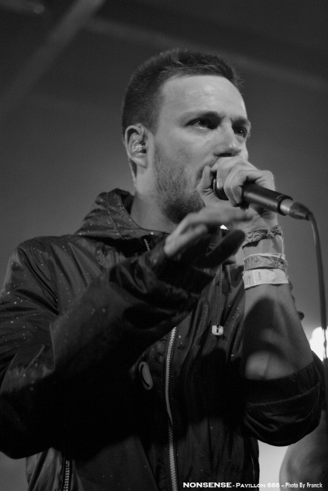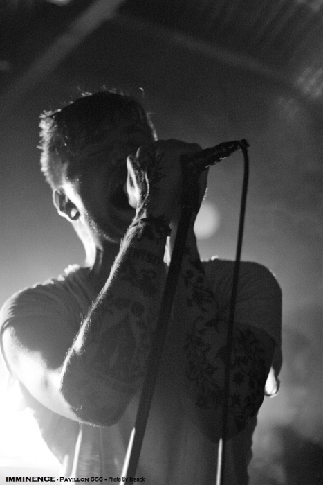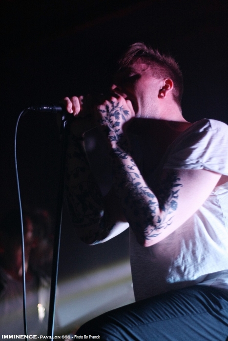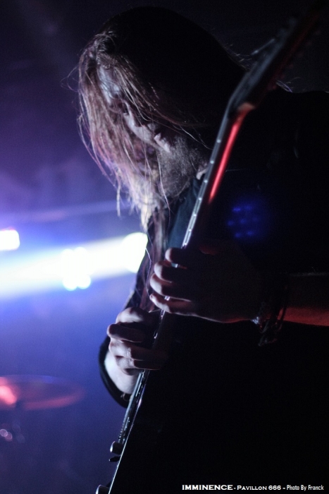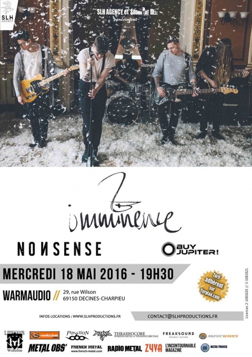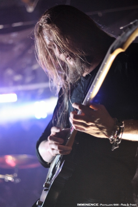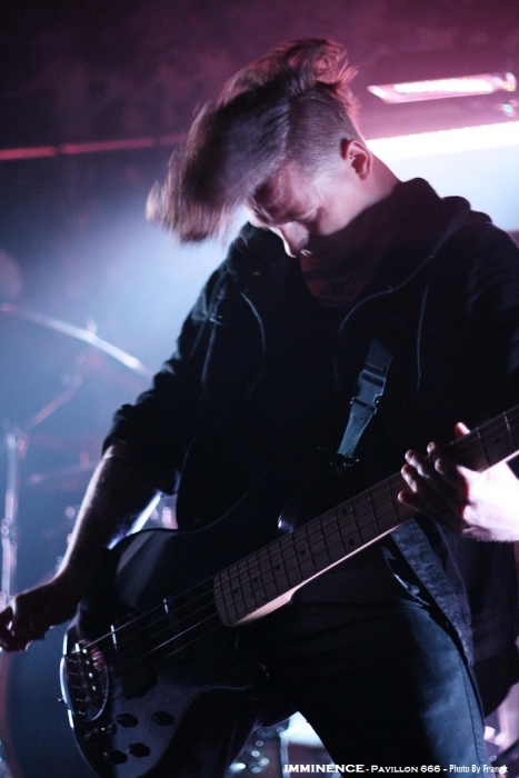 Pour accompagner les suédois d’Imminence qui sont la tête d’affriche, deux très bons groupes lyonnais ont été choisis puisque c’est Buy Jupiter et Nonsense qui lanceront le début des festivités. C’est par conséquent Buy Jupiter qui va ouvrir le bal sur la scène du Warmaudio et qui va faire à mon goût, une prestation particulièrement excellente. Très certainement inspirés par la nouvelle d’Isaac Asimov, d’où le nom du groupe, les lyonnais de Buy Jupiter pratiquent un metal moderne particulièrement incisif qui se trouve être à la croisée de tout ce que l’on peut faire dans le plus sombre et le plus sauvage. Le son du groupe est absolument énorme et vous enveloppe totalement tel un épais brouillard qui vous colle à la peau. Pi au chant est chez lui sur les planches et occupe largement toute la scène. Sans cesse en mouvement, il assure à lui seul tout le show faisant mesurer au public toute l’intensité dramatique des différents titres rien que par son jeu de scène. Il n’hésite pas un instant à aller chanter au milieu du public en continuant au milieu de la fosse à électriser le public venu assister à cette prestation très forte émotionnellement. On sent bien que Pi est le centre nerveux de Buy Jupiter et qu’en bon frontman, il emmène avec lui les quatre autres membres de son groupe. Mais attention, il faut tout de même se montrer impartial car derrière lui, ça joue particulièrement bien. Même si j’ai beaucoup apprécié la prestation des deux guitaristes qui ont fait preuve d’une technique et d’une régularité à toute épreuve, j’ai été assez impressionné par le jeu de scène et de basse de Fred qui est totalement énergique et se combine parfaitement avec Lucas qui derrière ses futs donne le rythme cardiaque digne d’un marathonien à Buy Jupiter. Le set m’a semblé trop court et leur show reste pour moi l’un des meilleurs moments de la soirée. Entre gros son metal débridé, ambiance obscure et désenchantée, je pense que je ne suis pas le seul à avoir complètement été conquis. Je vous invite à découvrir d’urgence leur Ep « Departure » via leur Bandcamp, ainsi que leur page facebook qui leur fait office de site officiel. Vous trouverez les deux liens ci-dessous. https://buy-jupiter.bandcamp.com/ https://www.facebook.com/buyjupiter/ Dans un style cette fois-ci totalement différent, voici venir les autres lyonnais avec le groupe Nonsense. A la base, n’étant pas vraiment fan de metal progressif et de djent à la Meshuggah ou autre Animals as Leaders, je commence à me dire que ça risque de coincer un peu, mais en fait non. J’ai trouvé la prestation de Nonsense particulièrement bonne avec des choses très variées. Ils ont un show résolument énergique et accrocheur, surtout en la présence d’Olivier Sicaud au chant. Ce gars possède une voix magnifique capable de s’immiscer dans plusieurs répertoires que ce soit en voix claire ou dans un registre plutôt hurlé. Coté instrumental, on peut largement dire qu’il n’y a rien à jeter. Sebastien Biola et Raphael De Stefano aux guitares m’ont sacrément impressionné. Ces gars déploient un jeu monstre avec une technique d’une redoutable efficacité. Ca joue vraiment bien et l’on peut aisément respirer chaque note de chaque morceau. Dans leur set, pas de place pour le brouillon et encore moins pour la bouillie sonore. Ils sont vraiment carrés, réglés au poil et il n’y a rien qui déborde. J’aime beaucoup les cassures de rythmes au sein de leur musique, ainsi que cette alternance permanente entre le chant clair et le chant littéralement hurlé. Autant sur de longues plages musicales on flirte avec la légèreté, mais c’est toujours le calme avant la tempête et Olivier au chant est là pour nous le rappeler. C’est soudainement un véritable déluge de rage et de gros son qui frise le metalcore, tandis que l’ouragan Nonsense emporte tout sur son passage. Romain Regal à la basse fait lui aussi preuve d’une technique irréfutable. Avec Simon Digonnet à la batterie, ils sont les deux poumons du groupe. Nonsense est très loin de nous délivrer un show tout mou et plan plan. Pour du metal progressif, on peut dire que ça remue sévère sur les planches du Warmaudio. Les fauves sont lâchés et Olivier Sicaud fout résolument ses tripes à nu sur la scène. Bien loin de s’ennuyer, nous assistons à un set de qualité qui dégage une énergie complètement dingue. Ca tabasse vraiment et niveau son c’est impeccable. Le public en redemanderait bien encore, mais l’heure tourne et Nonsense doit céder la place à Imminence qui trépigne en coulisses. Je vous encourage à découvrir leur Ep « On Earth » via leur page facebook en lien ci-dessous. https://www.facebook.com/nonsenseonearth Très franchement, au vu des qualités musicales et des prestations scéniques de ce groupe, je ne devrai même plus avoir à vous présenter les suédois d’Imminence. Tête d’affiche de cette soirée au Warmaudio, Imminence n’a pas fait le voyage pour rien et va encore frapper très fort. Echauffés de la vieille où ils ont fait parait-il, un show acoustique absolument monumental au Ninkasi de Saint Romain en Gal, les voici donc ce soir sur la scène du Warmaudio pour un concert électrique et musclé. Pourtant aujourd’hui, l’histoire avait mal commencée puisqu’un des guitaristes d’Imminence a trouvé le moyen de s’entailler profondément un doigt de la main gauche, autrement dit celle avec laquelle il joue. Cela lui a valu une petite ballade aux urgences avec des points de suture à la clef. Il tenu absolument à jouer et franchement pour ma part je n’ai pas vu la différence, il était au top. Les gars d’Imminence ont également eu la bonne idée d’amener leurs propres lights. Sauf que la bonne idée s’est vite transformée en cauchemar car toutes les lumières se trouvaient en fond de scène et éclairaient s