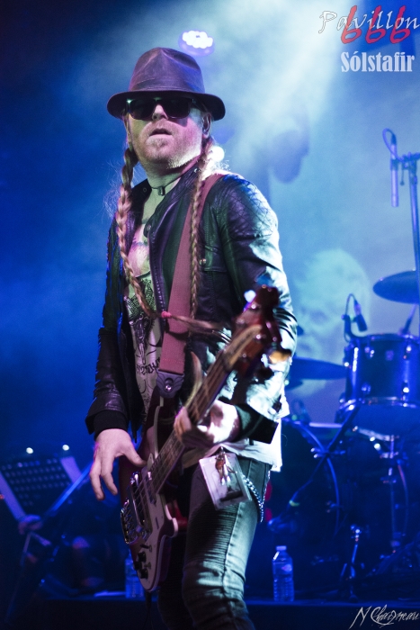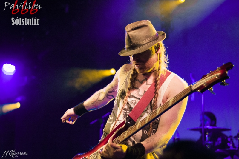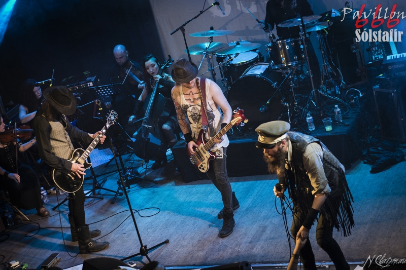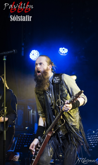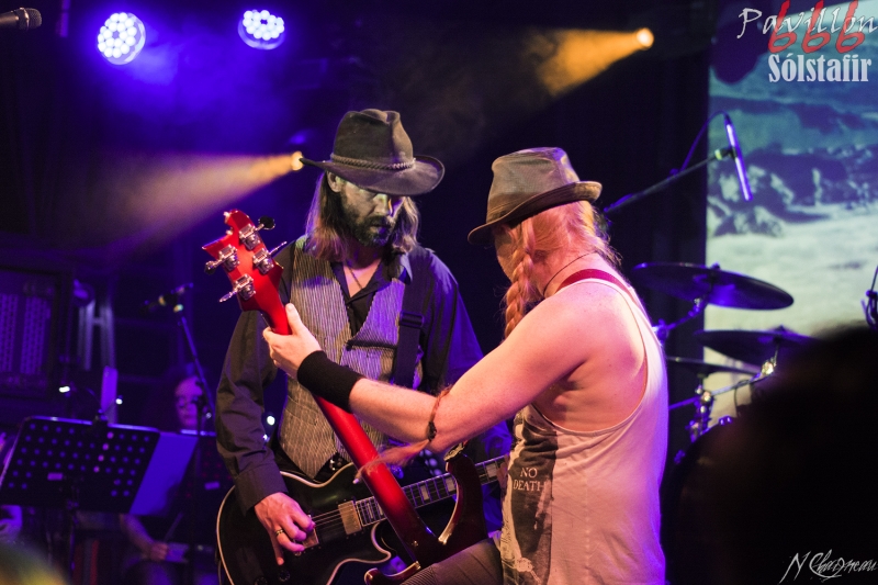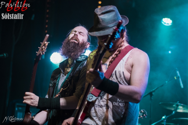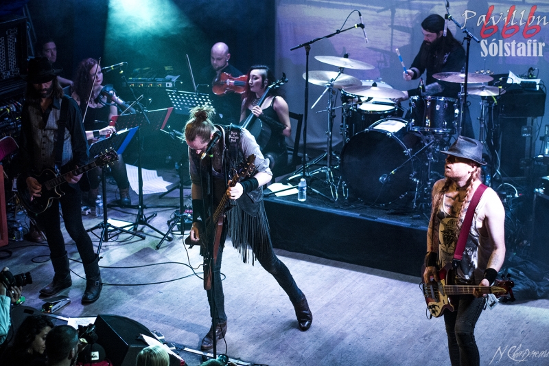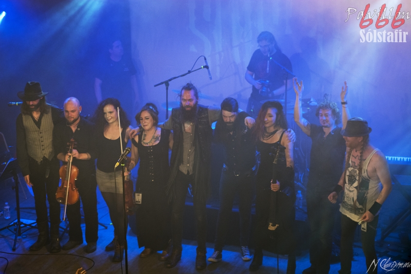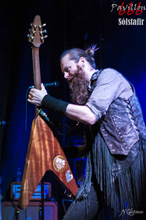 Avant que le concert ne commence, on sent l’assemblée fébrile, pressée d’assister à ce concert annoncé comme exceptionnel. Dans l’ambiance feutrée du divan du Monde s’installent trois violonistes, un violoncelliste, un pianiste et le batteur, bientôt suivis par Sæþór Maríus "Pjúddi" Sæþórsson le guitariste au chapeau, Svavar "Svabbi" Austmann le bassiste aux longues tresses… et enfin Aðalbjörn "Addi" Tryggvason, le chanteur au charisme indéniable. Lentement, très lentement, les premiers sons de Dagmál s’élèvent… et c’est parti ! Aðalbjörn laisse passer une intro plus longue que dans la version album et semble profiter de la musique autant que s’il était dans le public. Sa voix emplit ensuite le Divan de sa tonalité déchirée si particulière. Et puis tombé de rideau. Quasiment plus de lumière, plus un son. Le public retient son souffle et on ne distingue plus que les silhouettes des membres du groupe alors qu’un son de violon qui semble lointain s’impose et monopolise l’espace physique et sonore. Le «Ótta» Show nous amène directement son titre éponyme pour le plus grand bonheur de chacun ici. Le morceau à la fois planant et déchirant est exécuté à la perfection et nous prend aux tripes au point qu’on en oublie parfois de respirer. La performance d’Aðalbjörn est impressionnante de puissance et d’expressivité. Sur un écran en fond de scène défilent des images des côtes déchirées d’Islande. Sólstafir nous fait véritablement voyager. Au bout des dix minutes du morceau on se demande un peu où on est. Le piano nous le rappelle, accompagné par un quasi murmure d’Addi bientôt rejoint par les violons. C’est Lágnætti qui continue le voyage. Mais avec ce morceau le concert devient également beaucoup plus péchu : la batterie s’emballe, la guitare gagne en puissance, Aðalbjörn danse tel un serpent sur scène et les longues tresses rousses de Svavar ne semblent plus pouvoir se poser. Côté public, on assiste à une sorte d’étrange frénésie immobile : si on est transportés et dynamisés par ce concert l’ambiance n’est pas non plus au pogo et la place manque pour danser comme le chanteur. La puissance transmise par le groupe est donc contenue en chacun. Avec Rismál on a une retombée brutale dans un morceau plus lourd et mélancolique mais Miðdegi et Nόn renouent avec un peu plus de dynamisme sans pour autant être exempts des émotions que Sólstafir nous transmet. Aðalbjörn est impressionnant d’expressions faciales, il met tout de lui-même dans ce concert et chaque émotion transmise par son chant est visiblement extrêmement profonde. Le groupe semble avoir décidé d’alterner entre les types de morceaux puisque le rythme redescend de nouveau sur Midaftann. Nattmál nous offre ensuite une remontée en dents de scie de plus de dix minutes entre accélérations instrumentales et moments de calmes sur la voix d’Addi. Nombreux sont les membres de l’assemblée qu’on voit les yeux fermés, à simplement profiter du son et des vibrations transmises par les Islandais. Le groupe quitte alors la scène et un écran descend alors du plafond en avant-scène. Un extrait du film « When the Raven flies » de 1984, film culte pour les nordiques, est projeté pendant une vingtaine de minutes. Au retour des membres de Sólstafir sans leurs musiciens sur scène on quitte l’album Ótta pour Djákninn issue de Svartir Sandar. Le groupe exprime ensuite une fibre plus punk sur She Destroys et Necrologue venus de Köld. La salle accueille extrêmement bien cette déferlante pleine de punch qui offre un contraste avec la première partie du concert. On apprécie de voir Aðalbjörn et Svavar se défouler. Avec Svartir Sandar issue de l’album éponyme le concert garde cette veine plus hard mais Aðalbjörn offre une performance vocale à la frontière entre les morceaux précédents et sa façon plus profonde de chanter sur Ótta. Silence dans la salle. Chuchotements de batterie. Quelques accords s’y ajoutent. On a reconnu Fjara et on sent l’excitation dans le public sans pour autant que l’assemblée ne perturbe par le moindre son le démarrage de la chanson. Lorsqu’Addi chante on ne sait pas vraiment si on a envie que le morceau stagne à ce passage ou si on est pressé qu’il ne s’envole… puis la montée en pression s’effectue et on sent des vagues de frissons parcourir l’assemblée. On assiste alors à une scène impressionnante : la totalité de l’assemblée reprend en chœur l’air de la chanson. Ce n’est plus un concert, c’est une communion. Aðalbjörn se remet à danser sur scène, à mi-chemin entre le serpent et le félin. Malgré que le morceau soit considérablement rallongé il est beaucoup trop court à mon goût et doit malheureusement finir. Sólstafir quitte finalement la scène sous des applaudissements nourris qui nous donnent l’impression que la salle est bien plus remplie que sa capacité. Mais ce concert ne peut pas se finir sans rappel : Le groupe revient le temps de jouer Goddess qui finalement fait très bien la synthèse de tout le set. On y retrouve les passages mélancoliques, les montées en pression et les éclats de voix d’Aðalbjörn. Ce dernier s’offre un bain de foule. Cette fois c’est bel et bien fini, après plus de deux heures plus qu’intenses les membres de Sólstafir et leurs musiciens posent leurs instruments et viennent saluer le public. Je sors personnellement retourné de ce concert et c’est le cas de beaucoup ici. Sólstafir nous a offert un moment extraordinaire avec une très grande proximité. Le son était impeccable et la performance elle-même à la hauteur de ce qu’on attendait. Je tiens à noter une petite anecdote qui démontre l’attention qu’ont eue les membres du groupe pour le public : lorsqu’une jeune fille a fait un malaise dans la fosse, Svavar l’a immédiatement remarquée et Aðalbjörn a arrê
