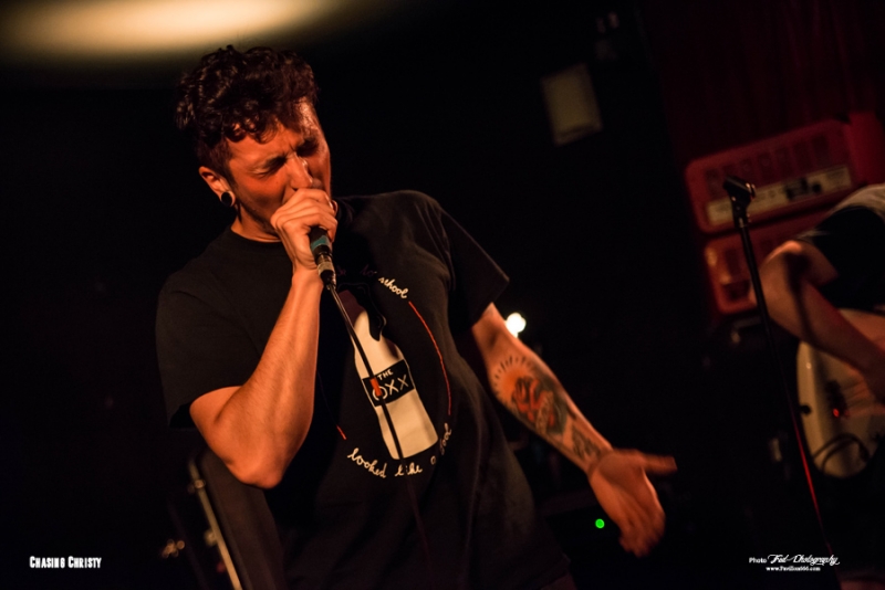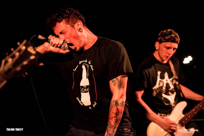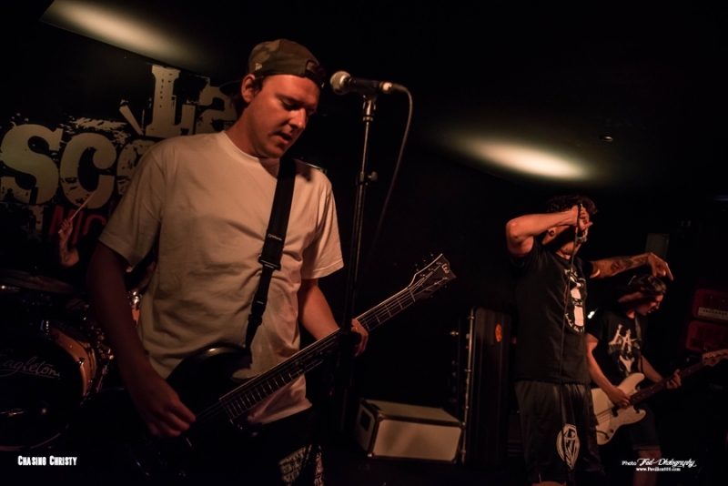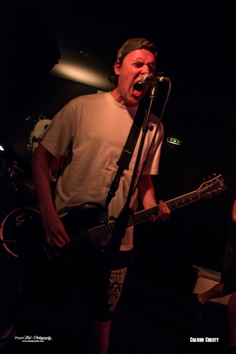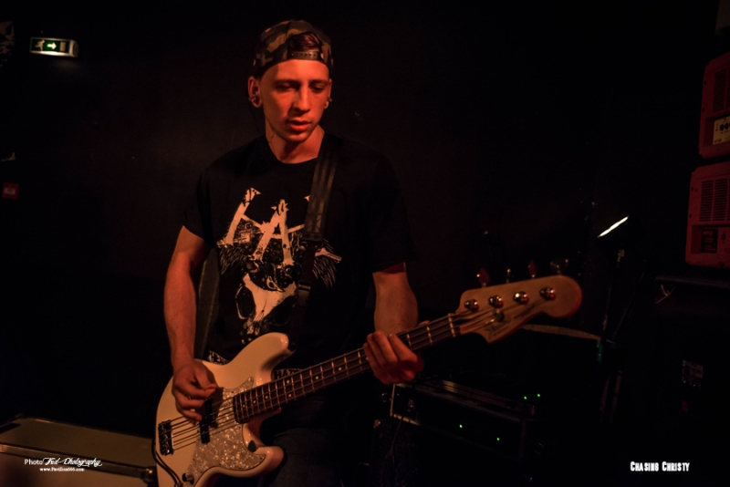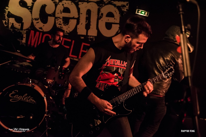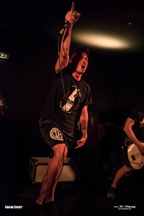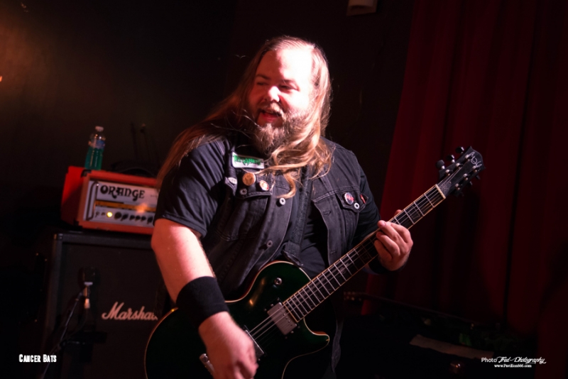 Mais ils ne reviennent pas seul puisqu’ils ramènent dans leurs valises 2 groupes qui auront la lourde tâche d’ouvrir la soirée et de mettre en jambe les nantais en manque de gros son (Pourtant avec le Hellfest qui arrive, ils devraient prendre leur dose). Il s’agit donc des tchèques de Chasing Christy et des petits français de Raptor King. Venu donc tout droit de Tchéquie pour présenter leur groupe au français, Chasing Christy se situe dans la mouvance hardcore, très influencé par la scène américaine, Sick of It All et Madball en tête. Ce qu’ils font est plutôt carré et on sent que les garçons maîtrisent leur fondamentaux, mais auront beaucoup de mal à convaincre le public de début de soirée, pour l’instant peu nombreux, peut-être un peu refroidis par les quelques moshers ayant monopolisé le pit et ayant repoussé tous le monde sur les bords de la salle. Une ambiance difficile donc, le set s’arrêtant d’ailleurs plus tôt que prévu puisque le dernier morceau sera « We’re not alone » et pas « Light up » come prévu sur la setlist. Découverte de la soirée pour moi, Chasing Christy ne m’aura que moyennement convaincu, trouvant le set efficace, certes, mais tout de même un brin trop traditionnel à mon goût et pas la grosse folie, comme le sera la suite. Setlist Chasing Christy Only One Best enemy Sarah Graveyard Libra We’re Not alone Le temps d’une petite Chouffe au bar et on remonte direct pour Raptor V et ses acolytes. L’entame du concert se fait sur le thème, bien choisi, de Jurassic park et sur une salle quasiment vide, il faut bien le temps de finir son verre, mais il ne faudra que quelques minutes pour que tous les amateurs de dinosaures et de gros son rappliquent en vitesse. J’avais déjà eu l’occasion de chroniquer l’Ep des parisiens pur Pavillon666 et celui m’avait donné plutôt bonne impression, celle-ci confirmée par leur prestations tout en riffs et en écailles de ce soir. Un Ep joué en entier avec 2 nouveaux titres dont » witch », très influencé par le black metal, qui annonce un deuxième Ep différent et dont on devrait avoir des nouvelles d’ici peu. En prédateur féroce, Raptor V n’aura fait qu’une bouchée du public Nantais en finissant son set avec le titre « In your Face » couché sur un matelas gonflable (et instable) porté par quelques courageux spectateurs. Un show dantesque qui aura mis tous le monde d’accord, Raptor V président !. Setlist Raptor King Da fuck where I just land Campaign Dinocalypse Witch Acolyte Fight’n roll In your Face Et voila! Enfin, il est l’heure pour Cancer Bats de monter sur scène, et les Nantais sont plus que chaud pour retourner la salle. Il faisait frais en arrivant, ce qui est assez étonnant à Michelet, mais l’atmosphère a eu le temps de se réchauffer de quelques degrés. Cela n’empêche pas Liam Cormier d’être débordant d’énergie. Les petits gars de Toronto nous offrent une prestation des plus primaire, chargée de testostérone et entonnant les différents titres qui ont jalonnée leur carrière, d’un bon « Hail destroyer « des familles au plus récent « Sattelites ». Les Cancer Bats sont heureux d’être de retour à Nantes et le font savoir, Liam démontrant aussi qu’il maîtrise bien la langue de Molière et blague sur leur prochaine installation en ville. Très peu de temps mort et ça s’enchaîne à vitesse grand V, « Beelzebub », « Road sick », on passe d’un album à l’autre avec un rythme endiablé. L’éclairage n’était pas trop mauvais, mais un peu bas et pas forcément agréable pour ceux sur scène, Lia finira par les tourner rendant impossible la prise de photo supplémentaire, Tant pis, on n’est pas là que pour ça ! La tension est tellement à son comble en fin de set que les plombs finissent par sauter pendant « Old blood » ou "True zero », plongeant la salle dans le noir complet pendant quelques secondes. On pourra dire que c’est une petite coupure avant le rappel et cela n’empêche pas les Cancer de reprendre de plus belle pour finir le set en sueur. Mais ne pas finir trempé en sortant de la scène Michelet se révèle apparemment de l’impossible. N’ayant pas eu l’occasion de les voir lors de leur précédent passage, je ne savais pas trop à quoi m’attendre et je n’ai pas été déçu par la prestation offerte par les canadiens. Un concert punchy à souhait où on en prend plein les oreilles. Les garçons sont aussi sympathiques et disponibles, on pourra les retrouver au merch pour échanger ou signer d’éventuels albums (Non disponible sur le stand puisque déjà tous écoulés pendant la tournée). Superbe soirée et un grand merci à la scène Michelet et à Alternative Live pour avoir fait venir tout ce beau monde à Nantes. Setlist Cancer bats: Children of the grave Hail destroyer Sabotage Lucifer rocking chair Beelzebub Road sick Arsenic in the year of snake Black metal bicycle R.A.T.S. Shillelagh Sorceress Sattelites Scared to death True zero Old blood Cursed with a conscience Pneumonia Hawk Death March All hail Bricks & Mortar |