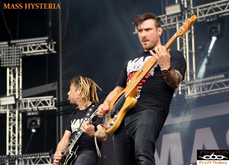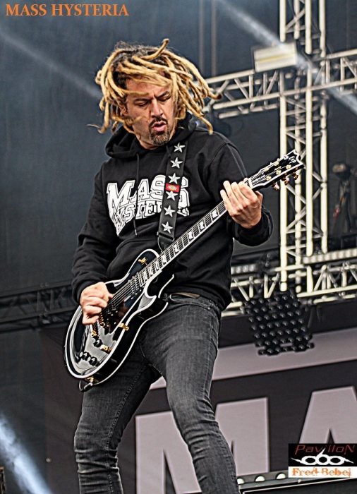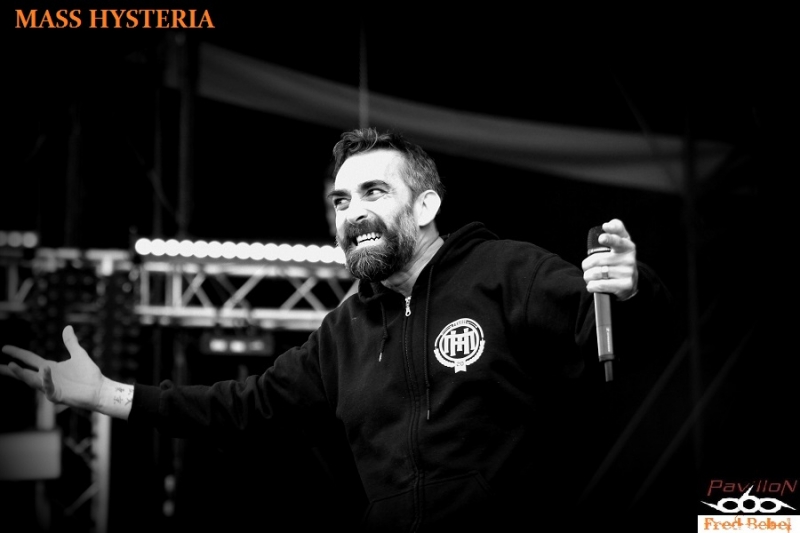 Nous nous retrouvons pour la furia devant la stage 2 pour le set de MASS HYSTERIA, programmé à 15h00, horaire bien trop tôt selon Mouss qui ne se prive pas de le faire savoir, on connaît son franc-parler, nous en aurons d'ailleurs la confirmation en interview un peu plus tard (à voir sur ce live report). En pleine tournée pour « Matière noire » leur dernier album, ils entament des festivals d'été dans toute la France, partageant même l'affiche avec des groupes mainstream, ça va faire bizarre aux bourgeois qui étaient venus « s'éclater » sur du Christophe MAE ou du Louanne !!! Greffe de tympans à prévoir !!! Un set d'une heure avec bain de foule et mosh pit, bref, du très bon MASS ! Le public venu en masse malgré cet horaire inadapté ne s'y est pas trompé et c'est tant mieux !!! (Raphaël et Frédéric)