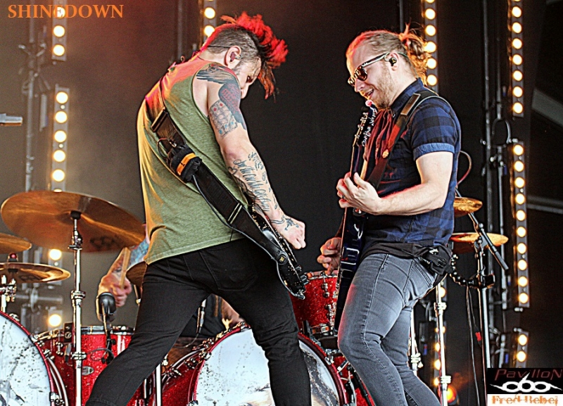 Arrivée sur site vers 14h, je ne veux absolument pas manquer la prestation de SHINEDOWN, le groupe préféré de ma chère et tendre qui ouvre sue la scène 3. Je les ai vus à Londres alors qu'ils partageaient l'affiche avec BLACK STONE CHERRY en février et j'avais été très impressionné par la présence scénique du charismatique frontman Brent Smith. Il n'a pas failli à sa réputation en délivrant une prestation certe courte pour une formation hélas mal connue dans l'hexagone mais d'une qualité impressionnante avec en prime un bain de foule improvisé pour la plus grande joie des fans déjà nombreux sous la tente à cette heure. Nous aurons la chance d'interviewer Zach, le guitariste dans le tour bus du groupe pour discuter de l'avenir hexagonal du groupe. Une fois de plus la France est à la traîne, là où le groupe rempli des stades dans les pays anglo-saxon, les américains jouent sur la stage 3 pour ouvrir le bal...Grossière erreur vue la prestation du groupe, c'est bien dommage...(Frédéric)