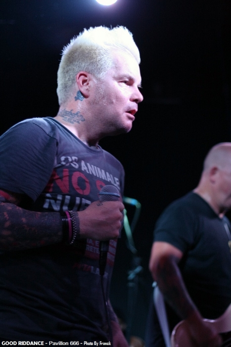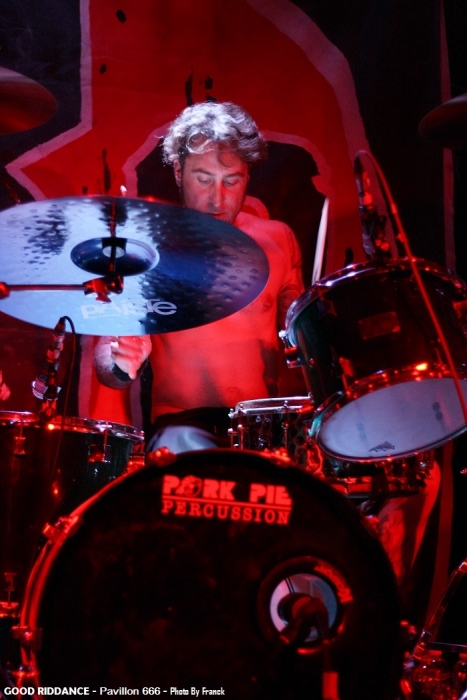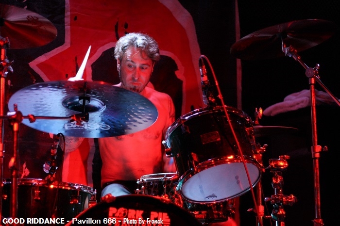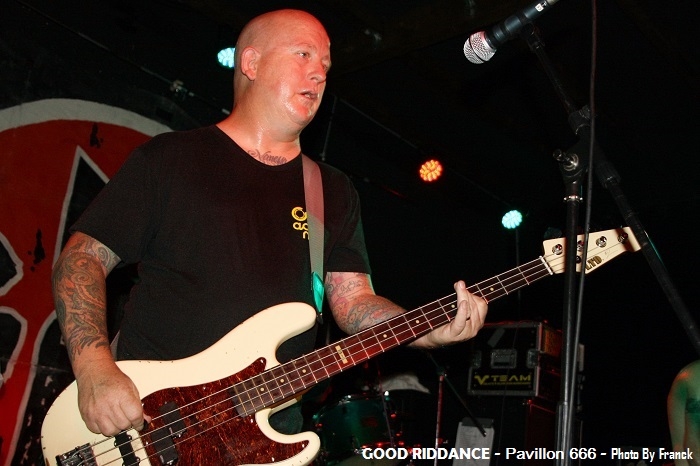 Un évènement tel que celui-ci se fête obligatoirement. Dans le cadre de cet anniversaire on peut admirer l’exposition de magnifiques photos de concerts qui ont eu lieu dans cette même salle et qui tentent un peu de retracer l’aventure musicale de ce lieu qui a connu bien des remaniements esthétiques. Pour fêter ces 10 ans, il y a aussi de la musique et pas n’importe laquelle puisque l’énorme affiche de ce soir en est une des illustrations. Une fois de plus, nos amis de Riot Show ont fait dans le costaud avec rien de moins que les californiens de Good Riddance comme tête d’affiche, accompagnés sur le même plateau par nos énergiques lyonnais de Raincheck et les résolument énormes catalans de Blowfuse qui vont nous faire un show « mucho caliente ». C’est donc parti pour une soirée de folie dans un Warmaudio bien rempli. Cela fait vraiment plaisir de voir que le public s’est déplacé et croyez moi, il n’a pas fait le voyage pour rien. Moi non plus d’ailleurs, mais c’est une autre histoire que je vous conterai durant ce live report. Les premiers à monter à l’assaut sont nos lyonnais de Raincheck et leur punk rock hyper speed. Sans plus attendre, les cinq garçons démarrent pied au plancher pour une avalanche de titres dont la plupart sont issus du Ep qu’ils viennent d’enregistrer. De toute façon, avec les pseudos de scènes qu’ils se trimbalent comme Jimmy Cliff Anger, Stevie Ray Vegan, Manu Catchy, Paul Macramé et Eddie Van Halal, on ne peut s’attendre qu’à une musique complètement décomplexée qui défouraille à mort jusqu’à vous vriller les tympans. Durant ce set, Raincheck a rempli toutes ses promesses. Un vrai punk rock sans concession avec des riffs résolument incisifs et un chant un poil sauvage. De plus chez les Raincheck il est important de préciser que ça joue particulièrement bien avec de surcroît un excellent jeu de scène et qu’en plus au sein de ce combo on est polyvalent. En effet, à la fin du set c’est le turn over puisque le chanteur va passer à la basse et le bassiste au chant pour une excellente reprise dédiée à toute l’équipe du Warmaudio en l’honneur de ce dixième anniversaire. Par conséquent le choix d’entamer cette soirée avec les Raincheck et la tonicité de leur musique était vraiment un choix judicieux. Le ton de l’ambiance placée sous le signe de la festivité et de la bonne humeur était donc donné par nos cinq lyonnais que je vous encourage à suivre ou à découvrir via leur page facebook en lien ci-dessous. https://www.facebook.com/raincheckcool/ On peut dire que ce soir j’ai fait une sacrée découverte et ce n’est pas le moindre mot en la présence des Catalans de Blowfuse qui viennent de prendre d’assaut la scène du Warmaudio. C’est vrai que dix piges ça se fête, mais je ne pensais sincèrement pas que c’est nous qui allions avoir droit à des cadeaux. Sans conteste Blowfuse sera et de loin le meilleur set de la soirée, c’est vous dire si le niveau était haut. Armés d’un punk rock typé hardcore, ils vont littéralement foutre le feu à la scène du Warmaudio. Leur musique bénéficie vraiment d’une patte personnelle, ils ont réellement un son à eux. Ils débordent également d’une énergie totalement positive, ce qui les rend immédiatement sympathiques dès les premières minutes de jeu. Aucuns de leurs titres ne sont brouillons et ils savent sonner avec une musicalité vraiment exceptionnelle. Alors je ne sais pas si ça vient de Simon qui était au son ou encore de leur manière de jouer, ou bien peut-être un peu des deux, mais je peux vous assurer qu’à l’écoute c’est un pur plaisir pour les oreilles. Ce qui prouve bien que l’on peut jouer un rock des plus incisifs sans toutefois faire un boucan d’enfer. En plus d’être sympathiques, ces quatre gars sont plein d’humour, ce qui les rend encore plus attachant et proches du public. Ils ont parfaitement réussi l’opération de débrider le public qui avait encore un petit peu de mal à bouger, jusqu’à foutre un vrai bordel dans la salle car je vous assure que devant la scène c’était la guerre. Pour preuve, Oscar, le chanteur et guitariste du groupe m’a même laissé un cadeau pour les dix ans du Warm, l’empreinte de sa basket droite que j’ai ramassée en plein dans la poire lorsqu’il s’est balancé de la scène dans le public. Ca à été un peu 2001 odyssée de l’espace pendant quelques minutes durant lesquelles j’ai visité plusieurs constellations… Leur set est une totale réussite non seulement musicale, mais aussi en tant que show car on ne peut pas dire qu’ils soient du genre plan plan, ça bouge vraiment dans tous les sens. Chez les Blowfuse il n’y a pas de star et tout le monde y va de son truc pour faire le show. Victor, le bassiste, est littéralement déjanté et assure le spectacle dans un style particulièrement agité. Le chanteur qui est également un excellent guitariste est un frontman imposant qui échange un maximum avec le public, tandis que Sergi à l’autre guitare y va aussi de son petit mot entre les morceaux. Derrière les fûts, c’est Ricard et sa coupe de cheveux d’enfer qui envoie le tempo. Il ne ménage pas sa peine car chaque titre est expédié à un rythme effréné. Personnellement c’est pour moi une magnifique découverte que ces quatre catalans aussi sympathiques qu’efficaces avec leur punk rock totalement expéditif et très musical qui ont fait l’effet d’une grande gifle au Warmaudio ce soir. Je vous laisse leur page facebook et leur Bandcamp en lien ci-dessous. Si vous êtes un véritable amateur de punk rock mélodique et redoutable alors je vous invite à découvrir d’urgence ce groupe hors norme. https://www.facebook.com/blowfuse https://blowfuse.bandcamp.com/ C’est la dernière étape de la soirée avec du puissant et du lourd. Voici venir la grosse affiche de ce plateau avec les californiens