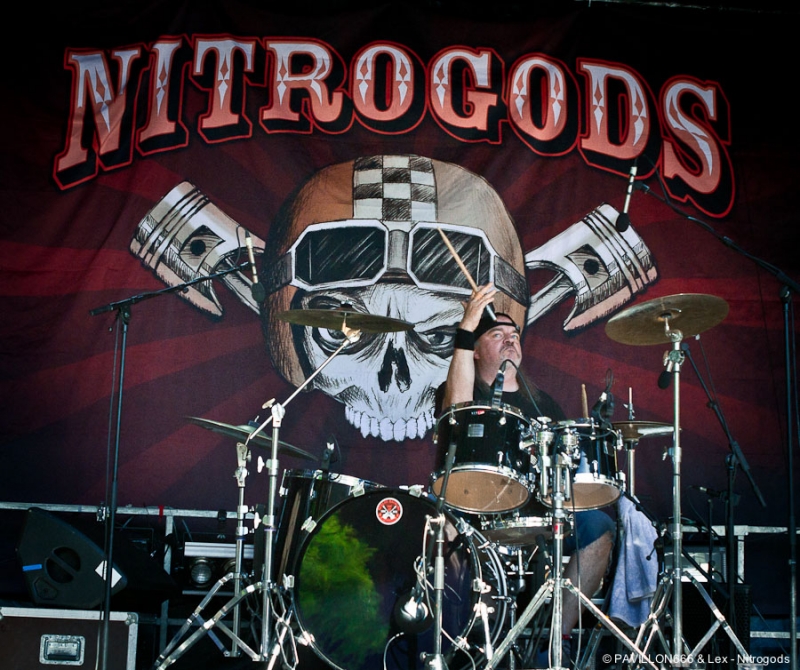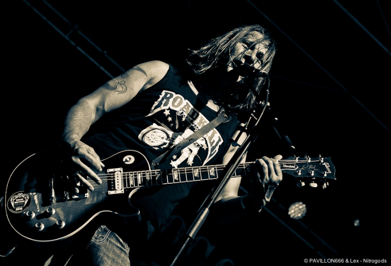 On change tout à fait de style avec Nitrogods, ce groupe allemand de hard rock n’ roll qui s’inspire de Motorhead. Quand ils commencent à jouer, on cherche les motos…tant leur musique respire de pots d’échappement et de cheveux dans le vent. Du ‘No bullshit Rock ‘n roll’ comme ils le définissent eux-mêmes.