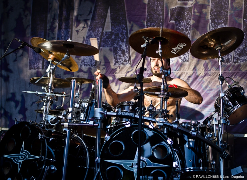 Lorsque The Inspector Cluzo quitte la scène, la foule est chaude et fin prête pour le charisme et l’énergie de Dagoba. Le groupe n’est plus à présenter et sa popularité ne fait aucun doute aux vues de l’enthousiasme du public. Tout le monde se réveille, circle pit et pogos, et la sécurité s’affole. Mais c’est bon enfant, et comme le reste du festival, que du bonheur. Depuis le mois de juin, la formation du groupe a changé et les deux nouveaux membres s’y intègrent parfaitement. Le show est bien rôdé et professionnel et Shawter a une relation très complice avec son public.