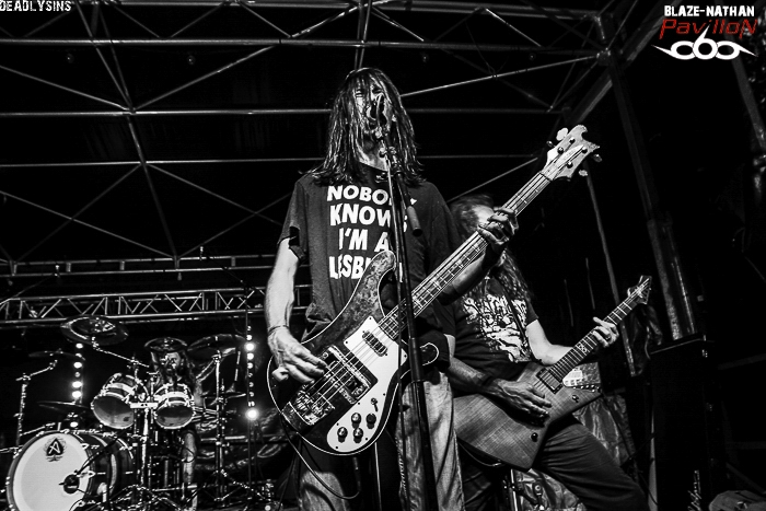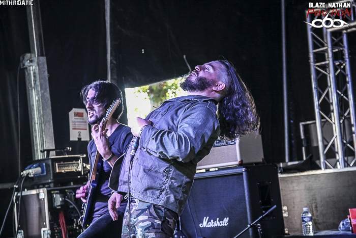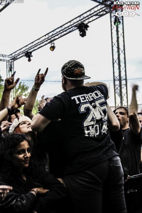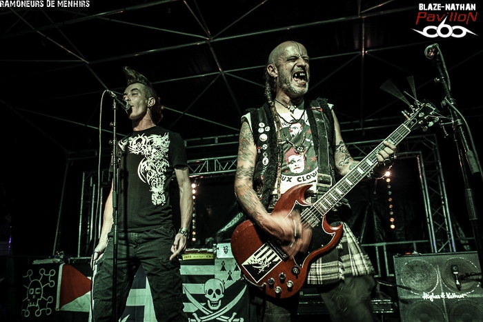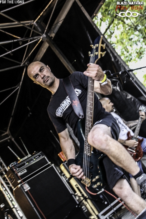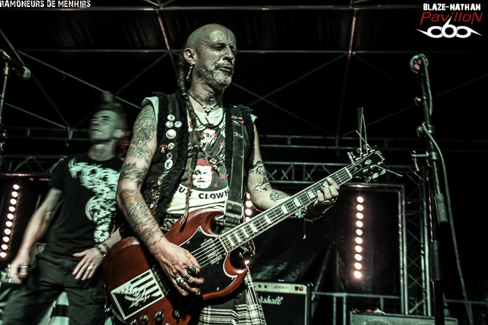 Alors, pourquoi cet engouement qui fait monter d’année en année la fréquentation de ce petit festival rock/metal aux abords de Lyon ? Pas de secret, une organisation au top avec des bénévoles motivés, une affiche de plus en plus alléchante et bien pensée, un cadre champêtre sympathique, une sécurité bienveillante mais efficace et une ambiance bon enfant, voire familiale qui représente un plus évidemment, sans compter avec le temps toujours favorable depuis les débuts du fest ! Alors, cette édition 2016 va débuter le vendredi soir avec le célèbre « warm-up » bain mousse à côté d’une scène spéciale où des groupes surtout locaux vont « chauffer » un public venu déjà en nombre afin de se mettre dans l’ambiance SYLAK. Car oui, maintenant ce fest possède « son » ambiance particulière nous en reparlerons tout au long de ce week-end qui s’annonce déjà mouvementé et riche en shows de tous genre dans la mouvance rock/metal, c’est parti ! Pour pavillon666, ce sera blaze-nathan aux photos et black.roger aux chroniques, mais désolé pour SLAUGHTERERS qui a débuté la soirée ce vendredi à 18heures, nous étions coincés dans la file d’attente à l’entrée afin de pouvoir récupérer nos pass, sorry les gars. Alors, ce sera donc MITHRIDATIC qui sera photographié et chroniqué en premier ce soir à 19heures sur la petite scène en face de la structure du bain mousse. Neuf ans déjà que les Stéphanois nous abreuvent de black-death brutal mâtiné de sludge crasseux comme il se doit avec à leur actif deux démos marquantes « dawn of bitterness » et « guillotine supremacy », sans oublier l’album « Miserable Miracle » paru cette année. Mithridatic et son leader charismatique Guitou qui opère dans plusieurs registres vocaux, nous emmène dans un univers glauque et malsain, dans des atmosphères décalées et dans des envois monstrueusement agressifs, suicidaires et sans concession. Et tout ça avec des musiciens hors pairs, des « gratteux » qui nous cisèlent les neurones et un duo basse-batterie remarquable, puissant comme un tsunami, écrasant comme un char d’assaut. Alors ce soir l’accueil des « Sylakiens » fut à la hauteur de leur prestation, on aime, que dis-je on adore ! Une heure plus tard, nous allons apprécier un show spécial d’une certaine crème du hardcore lyonnais avec FOR THE LIONS. Boris (Pit Disorder), Arno (Eight Sins), Mike (Swine Punch), Vince (Dissident Solutions) et Bij (Pit Disorder) représentent une certaine « mafia » d’un style et se gavent de « covers » avec le diable au « core ». Ce soir ils ont invités plusieurs « guests » sur scène et l’ambiance shorts et casquettes est remarquable et remarquée pendant que la mousse commence à baigner un public en nage (sic). Ambiance mouvementée donc dans le pit (mais où est passée ma godasse ?), on n’en attendais pas moins de cette prestation unique et originale qui a mis tout le monde d’accord. Puis, à 21heures et des poussières, les thrashers fous de Lyon, DEADLYSINS, vont monter au créneau du Sylak avec leurs riffs tranchants et leurs envois speed-thrash qui vous prennent à la gorge, aargh ! Mat et sa cartouchière, les deux Laurent et leurs 6 cordes, Lambert est sa grosse basse, Xavier barberousse aux fûts, vont nous percuter de plein fouet avec les compositions anciennes et plus récentes issues de « old school », « dementia » et « Anticlockwise » qui ne font pas dans la dentelle vous l’aurez compris. Deadlysins en 16 ans d’existence a joué en ouverture de Death Angel, The Haunted, Darkane, etc… Ce ne sont donc pas des apprentis métalleux, la scène ils connaissent, ils ne sont pas nés de la dernière pluie thrash, alors forcément en live ça « déboite » sévère et leurs envois violents et speed dans la tradition du style sont sans appel et vous n’en sortirez pas indemnes. Si, afin de profiter de la mousse (laquelle ?) qui coule à flot maintenant. Petite anecdote : entre deux groupes j’ai eu l’occasion de rencontrer LORAN des Ramoneurs, ex-Bérus et cela m’a fait plaisir de le revoir et discuter un peu avant le tourbillon punk-breton des RAMONEUS DE MENHIRS qui allait débiter à 22heures 30. Toujours aussi engagé le Loran ! Alors vous dire que l’accueil du public fut incroyablement vivant serait un peu sous-estimé. L’accueil fut donc énorme tout simplement. Ce groupe breton de punk-celtique va plus loin qu’une démarche musicale ponctuée de gavotes et autres « biniouseries ». Loran, sa gratte et ses discours engagés de soutien aux peuples en lutte pour leur culture nous interpelle sur fond de punk énergique et dynamique. Les ramoneurs de Menhirs sont donc sur la route sans arrêt préchant la « bonne » parole aux 4 coins de l’Hexagone mais aussi en Europe. Et puis le groupe ne se contente pas d’un répertoire étriqué, alors au menu des reprises aussi tels par exemple le fameux hymne keupon « If the guys are united » de Sham 69, « O bella ciiao » chant des partisans italiens, « La blanche hermine » de Gilles Servat et « vive le feu » des Bérus, normal. Bref, les Ramoneurs de Menhirs ont animé de façon incroyable ce « warm-up » du vendredi soir et les organisateurs du Sylak ne se sont pas trompés en les plaçant en tête d’affiche, bravo ! |