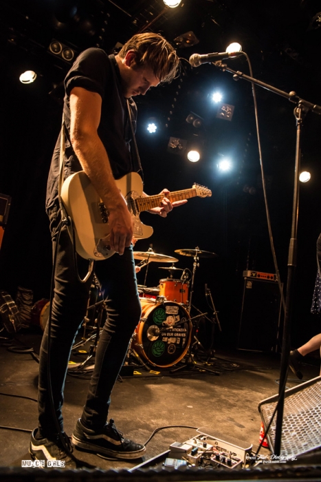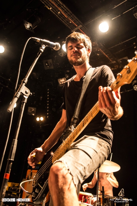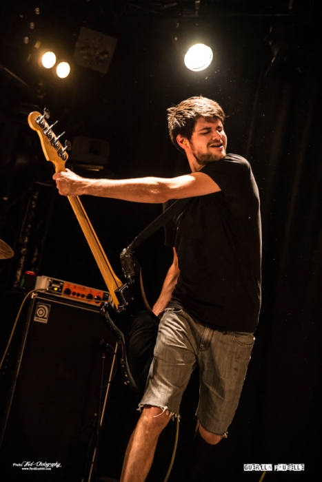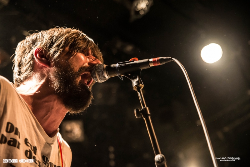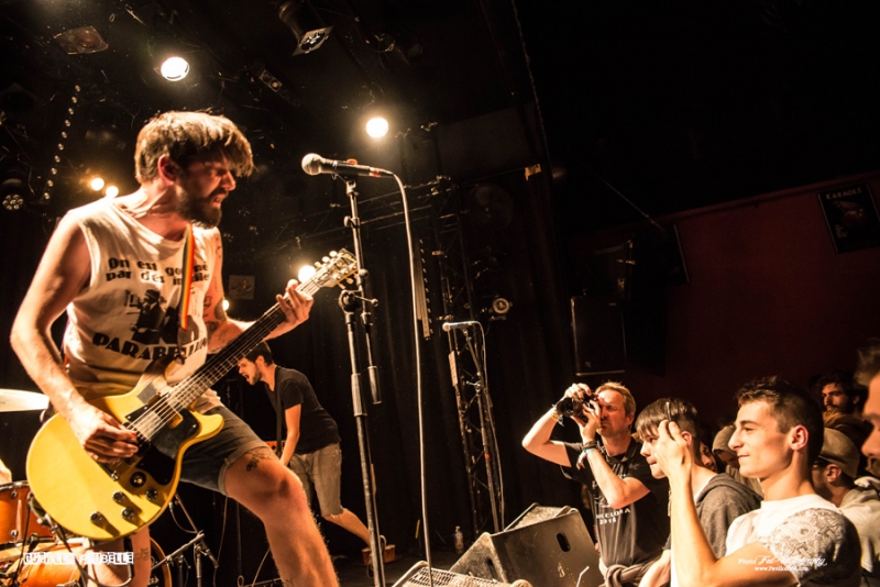 Il fait beau et chaud ce soir, sur les quais du hangar à banane à Nantes. Cela n’empêche pas, amour du gros son oblige, d’aller s’enfermer, en ce jeudi soir, dans une bonne salle de concert bien imprégnée de sueur et d’odeur de bière. Et ce n’est pas parce que l’on a troqué les docks martens et le blouson pour un short et des tongs qu’on a pas le droit de se faire une bonne petite soirée punk. Avec au programme du soir les vitréens de The konbinis, les anglais de Muncie girls et surtout les parisiens de Guérilla poubelle. Eh oui, 13 ans au compteur mais toujours présent, Guérilla poubelle est, ce soir, à Nantes pour retourner le ferrailleur qui sera bien rempli pour l’occasion. C’est assez surprenant de voir autant de monde pour la période, mais ils sont prêts à danser et à se remuer sur les sons déglingués de ces 3 groupes.