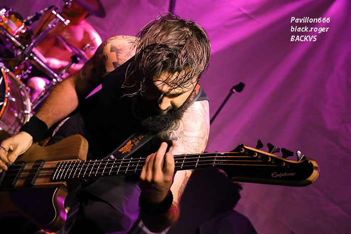 Et l’on démarre pied au plancher à 20heures tout pile avec les Viennois de BACKVS qui vont nous déverser sur scène une barrique de rock/metal rouge de tannins qui va nous ennivrer durant un set énergique qui décoiffe tout simplement. Pas de classement téléphoné dans un style précis, Backvs c’est un peu le batard issu d’un accouplement improbable le soir d’une beuverie entre par exemple Clutch et Lamb of God, vous voyez ? Les Viennois (pas les viennoiseries) nous offrent du lourd, du plombé sans oublier un brin de mélodie sous-jacente. Avec à la base, guitare, basse, batterie et chant écorché, le rock, le vrai est de sortie et flirte souvent avec le metal. Vous ne voyez toujours pas ? Et bien il fallait être là ce jeudi soir dans l’enfer du Warmaudio. Backvs vient de sortir son premier EP ces jours-ci et compte bien aller encore plus loin, bonne chance les gars vous le méritez, on aime et on se surprend à être supris comme ce soir. Set-list en photos. Du rock/metal au metal tout court il n’y a qu’un pas que nous allons franchir allègrement avec la venue sur scène de LUGH, quintette lyonnais nous offrant une diversion dans un registre plutôt prog/metal, mais pas que ! Lambert, chanteur/conteur/growleur à l’occasion nous emmène dans les chemins de traverse d’un metal sortant des forges du dieu Lug. Textes en français ou en anglais, le groupe ne se fixe aucune limite. Deux guitaristes, Sebastien et Guillaume se font remarquer par leurs tricotages aventureux. Manon fait vibrer les grosses cordes de sa basse et Cyril enfonce le clou derrière ses fûts. Tout à tour leur métal se fait donc aventureux, incisif ou plein de hargne, vengeur en somme. Et du coup nous dégustons dans tous les sens du terme au travers du particularisme des compositions de cette formation atypique qui sait vous charmer par moments ou vous faire sortir de vos gonds à d’autres. Belle découverte en ce qui me concerne et je suis sûr que vous avez apprécié aussi cette différence, bravo ! Set-list en photos. Vu en Novembre 2012 à Chambéry (Savoie), BLAZING WAR MACHINE se présentait à nous pour la première fois avec Irina, chanteuse Russe incroyable dans ses voix et sa présence au sein de la formation. Depuis, les marseillais ont continué leur route, peut-être pas dans une continuité assidue, mais là ce soir ils sont bien là devant nous arrivant sur une intro style « messe noire post-apocalyptique » et la magie va opérer tout de suite avec un son qui leur est favorable, une présence géniale (comme dirait certains dans la salle). Franky maintenant « libéré » des contraintes Dagoba semble se lâcher tout comme Irina et son chant tour à tour black et death. Mais nous remarquons aussi la prestation efficace d’Izakar, celle de Fab, celle d’Adam, mais aussi celle de Phil soutenant le métal extrême du groupe à l’aide de ses nappes de clavier. Un nouvel album est en vue qui sait, mais pour l’instant BWM nous propose des singles comme la vidéo officielle pour le titre « Polarity » qui nous avait mis l’eau à la bouche l’an dernier. Reconnaissons actuellement que le point fort des marseillais reste leurs prestations scéniques où se mêlent bien sûr, black, indus, death et symphonies malsaines d’un monde au futur post-atomique à la Simon du Fleuve (BD des 70’s) ou encore à la Mad Max. Bref, ce soir le public présent au Warmaudio fut en phase avec le groupe en appréciant ses envois puissants et mythiques d’une rare intensité. Alors BWM le grand retour ? Oui assurément et si tout se passe bien nous allons entendre parler d’eux de plus en plus, ils le méritent également, la claque comme l’on dit communément ou coup de cœur si vous voulez, les deux pourquoi pas ! Set-list en photo. Après ce concert d’anthologie nous pouvons dire que la saison des concerts en terres Lyonnaises est bien lancée. Merci donc aux trois formations de l’affiche de ce soir. Merci aux organisateurs, en l’occurrence BWM, et bien entendu un grand merci à toute l’équipe du Warmaudio. |