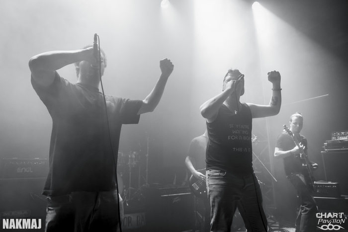 Ce sont les locaux de NAKMAJ qui ouvrent la fête dans un épais brouillard et des lumières dignes d'une cave. On ne voit pas grand chose dans cette salle durant ce premier set. C'est la dure loi des groupes de première partie. Au niveau musical le groupe se situe du côté du hardcore mais on sent encore un léger manque d'expérience pour ce groupe qui peine un peu à s'imposer ce soir. Le public semble totalement amorphe durant ce set. Dommage, les idées sont pourtant là et l'attitude des deux chanteurs est plutôt cool. Bon, ce n'est pas très grave et je suis persuadé qu'avec le temps ce groupe arrivera à trouver de bons repères afin de gravir les échelons. Changement radical d'ambiance avec les russes de SEVERNY FLOT. Pour une découverte, il s'agit bien d'une vraie découverte. Je ne pense pas être le seul à n'avoir jamais entendu parler de ce groupe avant leur passage à Lyon et cette tournée. Et bien, il y a là un bon groupe à découvrir. Le style est puissant, proche du rock avec une pointe de hardcore et de punk. Le résultat est fort intéressant et l'énergie mise dans cette musique colle parfaitement à cette affiche. Le public semble cette fois se réveiller et commence à réellement entrer dans l'ambiance électrique de cette soirée. Ce set passe à toute vitesse et on en profite au maximum. S'il y a un groupe qui mérite un peu plus de visibilité, c'est bien celui-ci car sa musique mérite d'être découverte rapidement par un plus large auditoire. Il semblerait que les efforts fournis par SIDILARSEN en termes de communication commencent à porter leurs fruits dans la région lyonnaise. J'ai toutefois un peu de mal à comprendre pourquoi ce groupe ne touche pas un plus large public dans notre région. En effet, quand on voit ce qu'il se passe quand ce groupe joue un peu plus au sud c'est à se demander s'il existe une frontière nord/sud et dont Lyon serait la limite. Quand on voit les qualités musicales de SIDILARSEN et la créativité aussi bien visuelle que musicale, on ne peut que se poser des questions sur ce qui fait que ce groupe soit cantonné au Marché Gare et ce pourquoi il n'est pas programmé dans une salle plus grande comme le Ninkasi Kao. Mais il vaut mieux une petite salle bien remplie qu'une grosse à moitié vide. En effet, ce soir, l'ambiance est au rendez-vous, rien à voir avec les deux autres concerts que j'ai pu faire de ce groupe. L'électricité est là. Et ce grâce à titres bien choisis comme l'ouverture « Retourner la France », suivi du très puissant « Back To Basics ». Si avec ça vous n'avez pas compris à qui vous avez à faire ! Et ce n'est pas fini car voici qu'arrive « Spread It » issus de « Dancefloor Bastards ». On continue comme ça avec des titres que ne peuvent que bien fonctionner en live et le résultat est clair, cela ne fait aucun doute. Malgré une petite faiblesse en fin de show due à un coup de fatigue du guitariste chanteur, (et oui, tourner ça use même les plus endurcis!) SIDILARSEN revient avec un rappel écourté d'un titre mais tout de même, nous avons droit à l'incontournable « Des Milliards » que le public commençait déjà à chanter avant que le groupe ne revienne sur scène. On aura eu droit à du très bon ce soir avec des titres énormes, « Le Meilleur est à Venir », « Walls of Shame », « Go Fast », « Dancefloor Bastards », « Frapper La Terre »... servis par un SIDILARSEN en pleine forme malgré des voix fatiguées par les concerts à répétition. J'espère que le prochain passage du groupe sera encore plus énorme que celui-ci. Je m'adresse directement à ceux qui ont vu le groupe jouer ce soir-là. Expliquez à vos amis comment était votre soirée et convainquez les de venir la prochaine fois. SIDILARSEN mérite de passer au stade supérieur, sincèrement et pour ça, il faut convaincre les gens de venir un peu plus en masse à leurs concerts. En tout cas, merci à Base Productions pour son accueil et son organisation. |