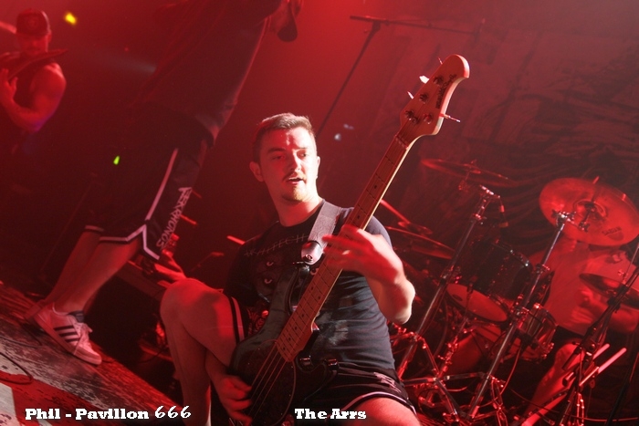 Lorsque Nakht investi les planches, le public est déjà consistant et paré de nombreux tee-shirts à l'image du groupe. Sans complexes, le quintette distribue des titres imposants sans économies. Le paysage musical de la formation évolue dans un univers deathcore teinté de metal progressif et d'horizons orientaux. Les musiciens qui ont la lourde tâche d'ouverture les assauts s'en donnent à coeurs joies. L'entrain est tel que la fosse ne reste pas en reste et s'adonne à diverses danses metalliques. Le set est relativement court mais riche en densité et en intensité. Il permet de faire monter l'adrénaline avec brio. T.A.N.K. fait son chemin sans faire de bruit, la formation est redoutable quelque soit la scène ou le lieu. Les musiciens ne sont jamais là pour faire de la figuration, ils viennent sur les planches pour y mettre le feu, pour y dégainer des fûts de dynamite. Permettant de retrouver Clément à la batterie et de découvrir Quentin Godet (guitare), le set envoie du lourd dès les premiers accords. Raf (chant) est rapidement en action et fait participer pleinement le public, il ne tarde pas à faire monter un spectateur sur scène pour le nommé capitaine de soirée et d'en profiter pour le masqué. Ce dernier porté par le public fera quelques tours de slam. Olivier (basse) et Nils (guitare) se déchainent sans faiblir, sans laisser de coté Quentin. En qualité de guitare de session, le musicien est à son aise tant dans son attitude que dans son interprétation. L'ensemble est uni et homogène laissant le sentiment d'un show rodé. Musicalement, la formation visite l'ensemble de sa discographie, profitant de distiller ses standards et passages obligatoires. A nouveau, le set semble court, moins de dix titres, mais il transpire d'intensité et de rage. Captivant et entrainant, la salle ne reste pas inactive face à ce spectacle énergique. Etant de la région, The Arrs semble originaire de Savigny le temple tant la formation met le public dans sa poche avant d'engager les débats. Seule la venue des musiciens sur les planches pour démarrer ce show entraine la réponse de la fosse. Point de fioritures, le set est engagé et énergique dès les premières mesures. Nico (chant) sautille de toutes parts, vient aux contacts des premiers rangs et anime la prestation par ses propos entre les morceaux. Les musiciens quant à eux sont tout autant appliqués et dispensent des rythmiques, des riffs puissants et solides. Tous sont agités et pratiquent une prestation sans retenue, remplie de fun et de plaisir. Tout comme les deux premières formations, la fosse ne tient pas en place, s'époumonent en reprenant les parties vocales, vient sur les planches pour prendre part à la fête. Celle-ci est donc sur et devant la scène. La quinzaine de titres met toute l'Empreinte du même avis, fait mettre tout le long sous le même diapason. The Arrs fait perdurer l'ambiance sans la faire retomber une seconde, le groupe par ses assauts met l'assistance sur les genoux pour le plus grand plaisir de chacun. Quelque soit l'affiche, l'Empreinte sait se faire redoutable et captivante. Cette soirée menée par des sonorités death metal et hardcore a mis toute l'assistance sous les ordres des trois formations. Félicitons les musiciens pour leurs prestations ainsi que l'organisation qui a une nouvelle fois mis en scène un plateau de qualité. |