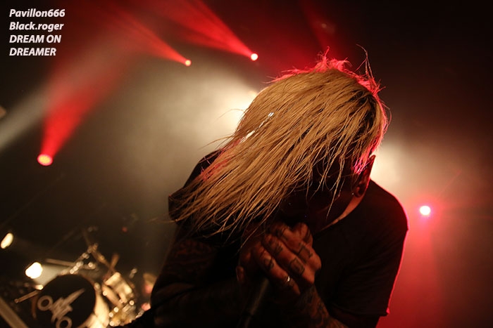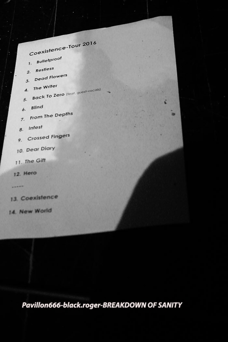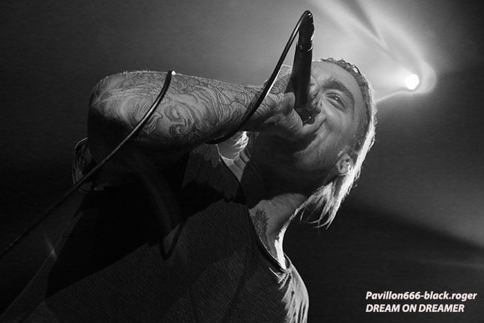 Il est 20 heures à l’horloge du jack Jack lorsque les frenchies de NOVELISTS envoient le son. Petite prestation de 30 minutes pour ce groupe qui mélange ambiant, prog, djent, mais qui n’arrive pas à cacher ses dérapages bien emocore. Pas de gros rebondissements dans leurs compositions ce qui leur confère une démonstration assez linéaire à la longue dans une certaine tristesse palpable dans l’attitude. Des fans du premier rang ont apprécié outre mesure quant aux autres ils se sont contenté de joyeux sautillements dans les parties plus enlevées, le tout dans un style qu’ils qualifient de post-hardcore dans une veine de Periphery ou autres Volumes. Et la suite va s’avérer un peu plus « musclée » avec les Australiens de DREAM ON DREAMER. Plus de chorégraphie scénique, plus d’envois puissants, plus de tout en fait, nous passons donc au cran supérieur de la soirée. Et même si le guitariste au chant clair donne la répartie cela passe très bien, car avouons-le généralement le chant clair en metalcore est trop souvent « à grimper, aux rideaux ». Nous sentons d’emblée que ces musiciens ont déjà une certaine expérience de la scène qu’ils tiennent à merveille avec un frontman insaisissable qui monte au créneau régulièrement. Bref, cela commence à devenir très intéressant pour un public en mal de défoulement, et il va être donc servi par l’efficacité et le charisme de ceux de Melbourne en live. Set rondement mené et remarqué, on aime. Place maintenant au combo Suisse de metalcore BREAKDOWN OF SANITY qui tourne actuellement en Europe donc afin de promouvoir qon nouvel opus intitulé « coexistence ». Les bernois ont choisi le tiroir modern’metal pour guider tous ceux qui désirent les écouter et les suivre. Mais en fait leur musique est plus complexe que ce classement un peu trop réducteur. En effet, dès les premiers titres un certain effet « bulldozer » met la salle en ébullition avec au menu slams, walls of death et autres « joyeuseries » agitées dans un compromis metal et bien sûr hardcore. Avec déjà quatre albums au compteur depuis 2009, ce groupe se fait remarquer par des prestations implacables de maitrise qui retournent toutes les salles où ils sont programmés. Et ce soir, c’est la même, la même énergie, la même puissance de feu avec un duo basse batterie au top niveau et des parties guitares bien travaillées, riffs et mélodies remarquables étant au rendez-vous pour le pire ou le meilleur, le meilleur assurément ce soir dans un Jack Jack acquit à leur cause tout simplement, la cause d’un metalcore nouveau et dépoussiéré. Comme quoi nous pouvons encore être surpris par ce style dans de nouvelles atmosphères. Leur prestation fut donc excellente et nul doute qu’un avenir prometteur leur est grand ouvert ! Set-list en photo. Soirée un peu à trois vitesse, mais soirée globalement intéressante. Alors merci à Erika pour le pass accordé à pavillon666 pour ce concert découverte d’un autre metalcore avec ces trois formations à l’engagement différent certes, mais bien assumé. Pour des raisons de confidentialité YouTube a besoin de votre autorisation pour charger. Pour plus de détails, veuillez consulter nos Politique de confidentialité. |