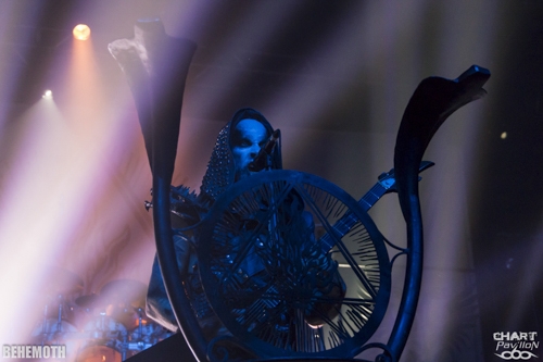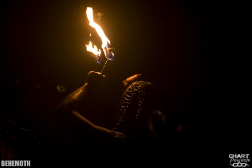 Visiblement le black metal n'est plus aussi underground qu'il a pu l'être à ses débuts. En effet, le concert de ce soir a été programmé dans la salle du Transbordeur. Le dernier passage de BEHEMOTH avait été programmé au CCO. Mais justement, il s'agit d'un concert de BEHEMOTH et ce groupe n'a fait que prendre de l'ampleur depuis la sortie de « Evangelion » en 2009. Il faut dire que cet album a marqué un véritable tournant dans la carrière du groupe et l'a propulsé là où il devait se retrouver. La bande à Nergal était prête à gravir cette ascension, le public aussi puisque aujourd'hui BEHEMOTH n'a aucun mal à remplir cette salle du Transbordeur.