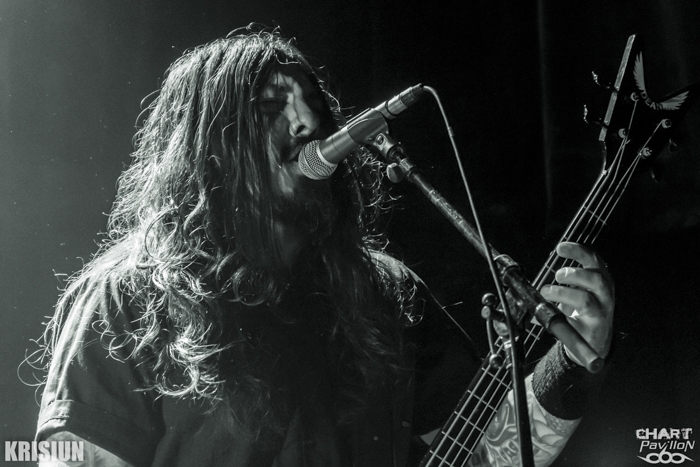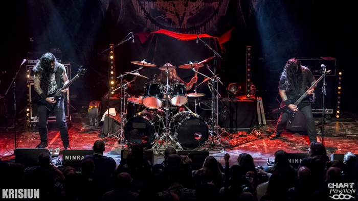 KRISIUN ouvre les hostilités aux alentours de 20h. Ces trois frères brésiliens œuvrent dans un death metal technique des plus appréciables. Le niveau technique est au rendez-vous. Le groupe sévissant sous forme de trio, il se doit d'être propre et parfaitement à l'aise. C'est bien entendu le cas car la musique de KRISIUN est clairement de qualité. La brutalité est là aussi car c'est un ingrédient majeur de ce style. Mais, on retrouve tout de même certaines influences que l'on retrouve chez pas mal de groupes venus de ce pays. Il y a ces racines thrash qui rendent les groupes brésiliens un peu particulier, uniques en leur genre. Cela rend un ensemble chez KRISIUN plutôt nuancé où les riffs viennent s'emboîter les uns avec les autres avec pas mal de changements de tempo et parfois d'ambiance. Cela n'enlève rien à la puissance majestueuse de ce groupe qui apporte au death metal un souffle nouveau. L'énergie est telle que malgré le fait que l'on soit dimanche, on se laisse très vite emporter par ce flot de notes. KRISIUN est incontestablement un très grand groupe dans son genre et il aurait été dommage de s'en priver. Comme il aurait dommage de se priver de l'hommage rendu à Lemmy avec une très bonne reprise de « Ace of Spades ».
