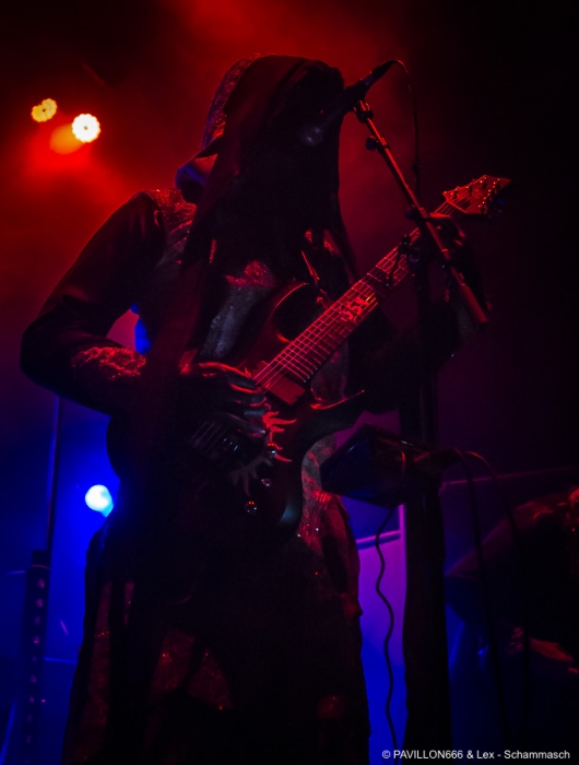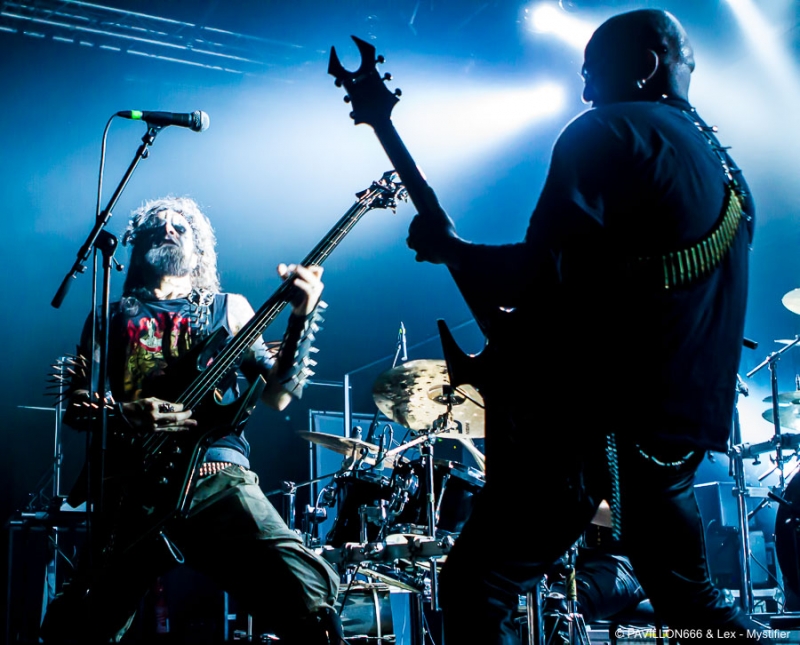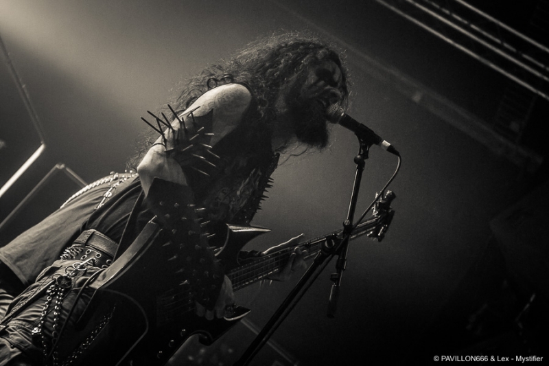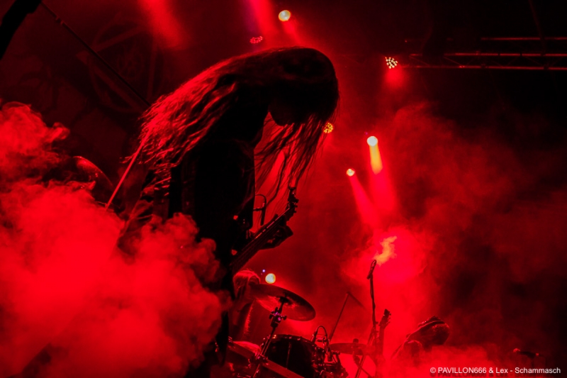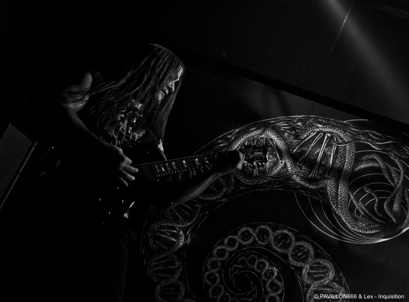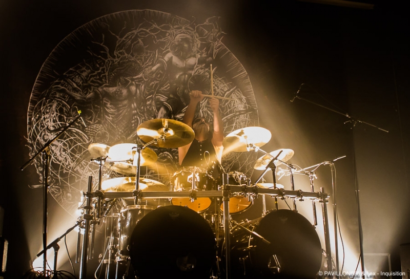 Devant un public encore clairsemé, SCHAMMASCH ouvre les hostilités dans une ambiance des plus maléfiques… Epaisse fumée, éclairage d’un rouge intense (panique totale chez les photographes). Les Suisses nous délivrent un Dark/Black occulte d’une telle richesse qu’il en est difficile de les cataloguer à un style particulier, et ce n’est pas pour déplaire au public qui commence doucement à envahir les abîmes. Nous ne pouvons qu’être transportés par ce groupe tout simplement magique et cela pendant près de 45 minutes. Jetez vous sur leur nouvel album « Triangle », vous ne serez pas déçu du voyage… Arrive le tour des vétérans brésiliens de MYSTIFIER qui nous renvoient à la fin des 80’S. Tout y est (cartouchières, pentacles, clous…), pour nous délivrer un « Black-Death » direct sans la moindre fioritures mais des plus délicieux , les quadras ayant vécu les sorties « Wicca et Goëtia » y retrouvent leur compte. Quant aux plus jeunes ne connaissant pas, la claque prise, a due être sévère… Un set « true » et « evil » avec des poses typiques (merci pour moi !) dans la plus pure tradition du genre, toujours affectionnés par bon nombre de groupes sud-américains. La Kufa se remplit de plus en plus pour accueillir les grecs de ROTTING CHRIST venus nous présenter leur sublime dernier album « Rituals », sans oublier les classiques des frères Tolis et les inévitables et cultissimes «The Sign Of Evil Existence» et «Non Serviam». Un set magistral, carré de pur Dark/Black sans oublier leurs fidèles éléments tribaux comme ils nous en donnent l’habitude, aussi bien sur album qu’en live. Les ayant vus 4 fois en 20 ans, leur charisme scénique et leur puissance musicale n’ont pas bougé d’un poil. ROTTING CHRIST, souvent relayé au second plan (je ne comprendrais définitivement jamais pourquoi !), a pourtant, encore une fois de plus, su nous clouer littéralement sur place. Arrive le moment du rouleau compresseur americano-colombien INQUISITION, venu défendre leur dernier opus «Bloodshed Across the Empyrean Altar Beyond the Celestial Zenith». Dagon et Incubus ne sont pas venu pour plaisanter et ne vont pas nous laisser une seule seconde de répit. Les titres s’enchainent dans un rythme effréné semant un chaos du plus bel effet. Une voix gutturale reconnaissable entre mille, des riffs incisifs, Dagon et son charisme des plus impressionnants, nous prouve une fois de plus sa capacité à occuper une scène à lui seul tandis qu’Incubus martèle ses fûts d’une manière frénétique mais fantastiquement propre et carré. Une telle rage après plus de 25 ans de carrière me laisse sans voix. Je rejoins le fond de la salle pour savourer l’ensemble de cette prestation et ne peux que constater l’apocalypse déferlant sur la Kufa. Un grand merci pour tout à Céline, Romuald et toute l’équipe de la Kultufabrik. |