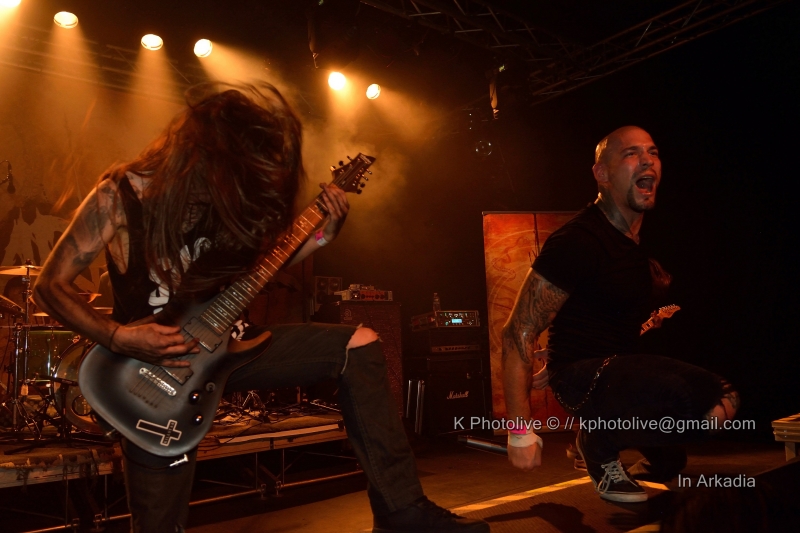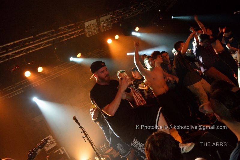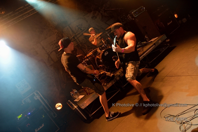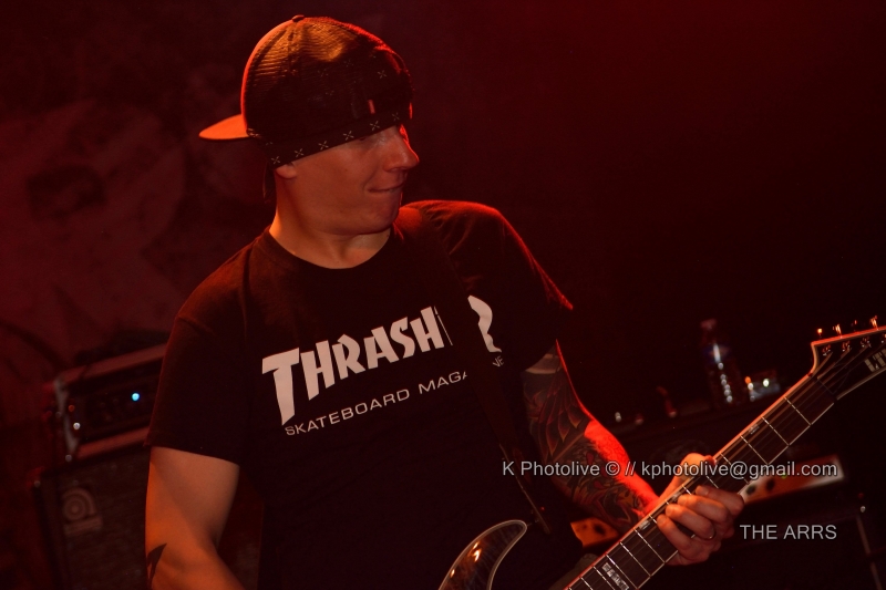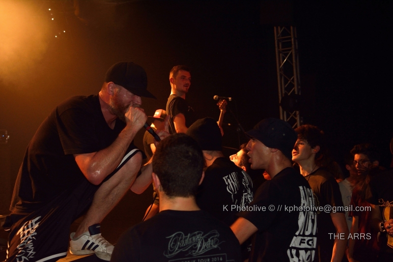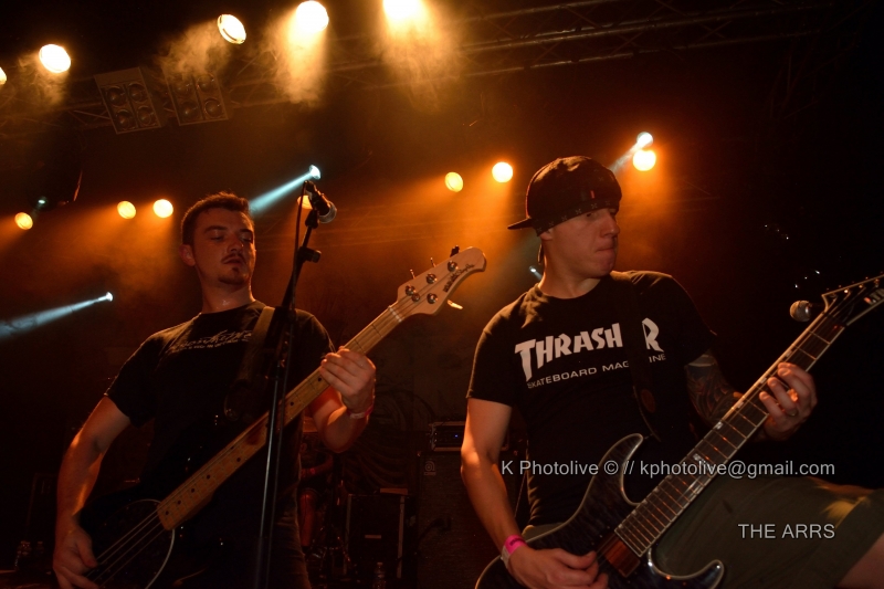 THE ARRS, formation parisienne majeure – dans les deux sens du mot – de metalcore mobilisera ce soir, en compagnie des Lyonnais d' IN ARKADIA, quelques dizaines de passionnés, notamment de très jeunes gens, des adolescents, lycéens, voire collégiens, venant de Bourg-en-Bresse, mais aussi des départements voisins. Quelques « anciens », tous bien décidés à se défouler dans la fosse de la grande salle de La Tannerie, côtoient sans la moindre hésitation la jeune génération. A 21 heures, heure prévue pour le début du concert, il n'y a pas foule dans la salle. Progressivement, une petite centaine d'adeptes ou de curieux, viennent combler l'espace devant la scène, d'autres restent en retrait au fond de la salle. Ils assisteront ou participeront au spectacle pendant deux heures et demie environ. IN ARKADIA, nos voisins lyonnais, s'installent sur scène et sans perdre un instant, ils déclarent la séance ouverte. Manifestement, les six musiciens spécialistes du deathcore soignent l'aspect visuel , visage dissimulé, tenue vestimentaire peu conventionnelle...Après quelques années de death metal mélodique assez classique, jusqu'en 2010-11, c'est un IN ARKADIA nouveau qui voit le jour en 2011, avec un line-up remanié et rajeuni, qui pratique désormais un genre qui a le vent en poupe, à savoir le « deathcore ». Ils sont maintenant une demi-douzaine en action, puisqu'un deuxième chanteur, l'imposant Mickaël (Mike) venu du groupe ami ICFB (Lyon), a rejoint IN ARKADIA voici quelques mois et partage le chant avec Alix, tous deux étant parfaitement complémentaires. Ils ne sont pas venus dans l'Ain pour faire de la figuration. En effet, dès les premiers riffs et les premières notes sous la houlette de Flo, batteur emblématique du groupe, la salle s'enflamme, circles-pit et slams s'enchaînent pendant toute la durée de leur set. D'aucuns craignaient des voix trop aiguës, il n'en est rien, l'ensemble est parfaitement harmonieux, bien rodé, efficace, il a trouvé son identité sans peine entre la puissance du metal et l'énergie du hardcore. Il n'est pas nécessaire de stimuler outre mesure le public acquis à la cause des Lyonnais, l'enthousiasme et la fougue de tous ces jeunes – la relève ! - font plaisir à voir. Le Bisontin Alix, frontman au charisme naturel, se contente de lancer « Tournez ! » avant d'annoncer par ailleurs la sortie d'un album courant 2017. Qu'il s 'agisse des voix (Alix et Mike), des guitares (Benjamin et Mirfin), de la basse (Thibault ou Boti), ou de la batterie (Florent), IN ARKADIA est avant tout une formation à voir et à apprécier sur scène. Bien entendu, ils ont plusieurs CD et EP, de nombreux concerts en France et à l'étranger à leur actif. Leur prestation de ce soir comptant une douzaine de titres (voir photo de la set-list) s'achève au bout de 40 minutes sous les applaudissements de leurs fans, anciens et nouveaux. Il est déjà 22 h 15 lorsque le quintette francilien THE ARRS (acronyme dont le sens est facilement trouvable) lance les hostilités devant des grappes de jeunes déchaînés, collés contre le rebord de la grande scène. Le chanteur, Nico, dissimule sa tête sous une capuche bien vite remplacée par une casquette. Avec Pierre, guitariste, il est le plus ancien dans le groupe fondé en 1998 et qui, depuis cette date, a subi plusieurs modifications de line-up parallèlement à son évolution dans le style. Outre ces deux artistes, on reconnaît Philippe, le bassiste, Vincent (Toki), le batteur, et l'autre guitariste, Mike, qui a récemment intégré le groupe. Rappelons d'emblée qu'avec THE ARRS on a affaire à un groupe de metalcore (deathcore) qui s'apparente à des formations dont la notoriété n'est plus à faire, telles que BLACK BOMB A, MASS HYSTERIA, L'ESPRIT DU CLAN etc. THE ARRS ont laissé un souvenir particulier de leur prestation à la Warzone du Hellfest 2016, mais on peut aussi retrouver leurs traces dans notre région, à Lyon (avec AMON AMARTH en 2009), Oullins, Rillieux, Lons-le-Saunier et Bourg-en-Bresse (!). Et demain, le samedi 19, ils seront à Chambéry. Leurs textes empreints d'humanisme et d'esprit positif traitent avec hargne ou indignation et un sens marqué de la communication de sujets d'actualité ou de sujets de société, la condition humaine, les questions sociales, le temps qui passe, la foi (« Du Ciel et de la Terre »). Les chansons sont volontiers reprises par le public. Ce soir, à La Tannerie de Bourg-en-Bresse, nous aurons droit à des titres issus du dernier album « Khronos » et de « Soleil Noir » (2012) notamment. (Pas de set-list disponible). A peine ont-ils entamé la première chanson que la fosse entre en ébullition, circle-pit, mosh-pit, wall of death se succèdent à l'envi dans ce qu'il faut bien nommer un champ de bataille. Il convient de souligner cette sorte d'interactivité qui s'établit entre une partie du public et le groupe et son frontman, Nico. Une dizaine de jeunes survoltés, en sueur, n'hésitent pas à monter sur scène, puis c'est Mike d'IA qui en fait autant pour chanter un titre, avant que le jeune Gabin fasse sur scène une démonstration de ses talents précoces. Quelle ambiance ! Et l'on continue ainsi, dans ce climat festif et passionné, jusqu'à plus de 23h 15. Un rappel, bien sûr ! Tout le monde sur scène...Photo de groupe ! Point final. « C'était THE ARRS ! » Un seul bémol à cette soirée : une affluence insuffisante. Il convient de dire merci aux 100 personnes qui se sont déplacées ce soir, les deux groupes et leurs équipes, et La Tannerie pour son accueil et les accréditations accordées à notre webzine. Il reste à souhaiter – mais est-ce possible ?- que les concerts de metal, hardrock, hardcore et autres musiques extrêmes soient plus équitablement répartis, dans l'espace et dans le temps, afin d'éviter les choix cornéliens (exemple, 3 ou 4 concerts le même soir dans la même ville). |