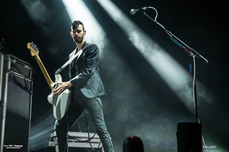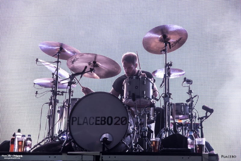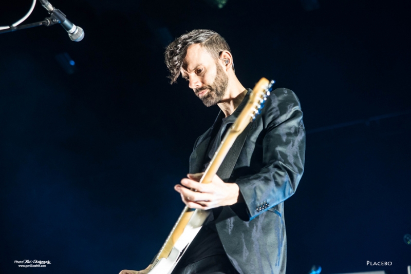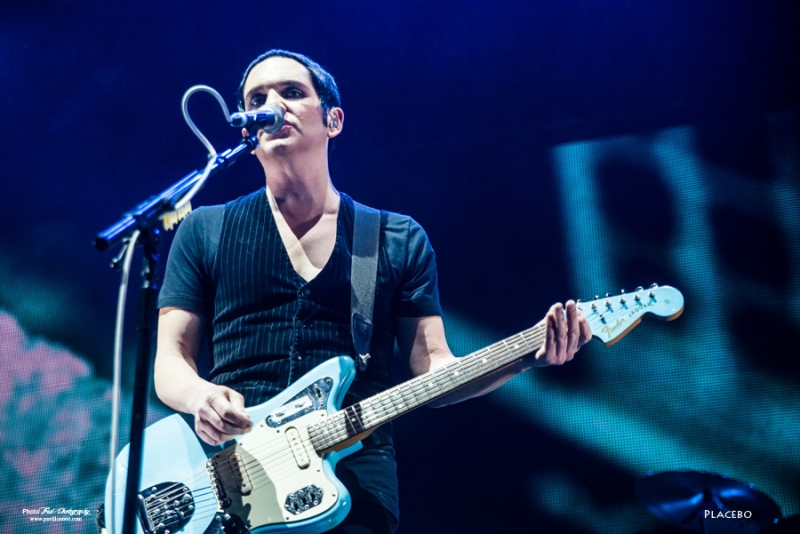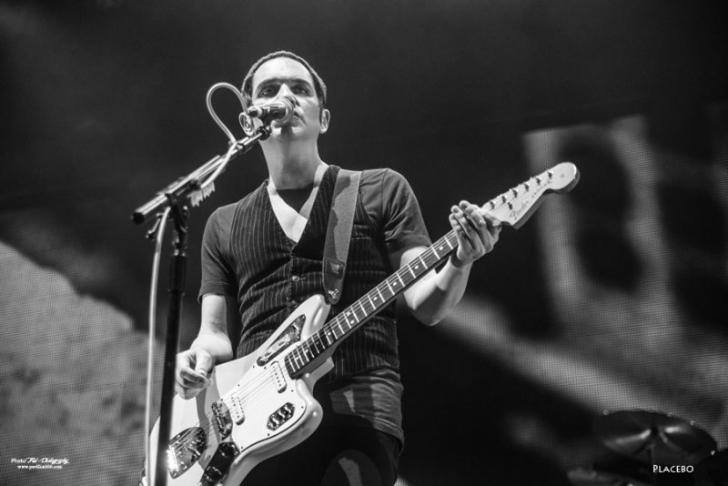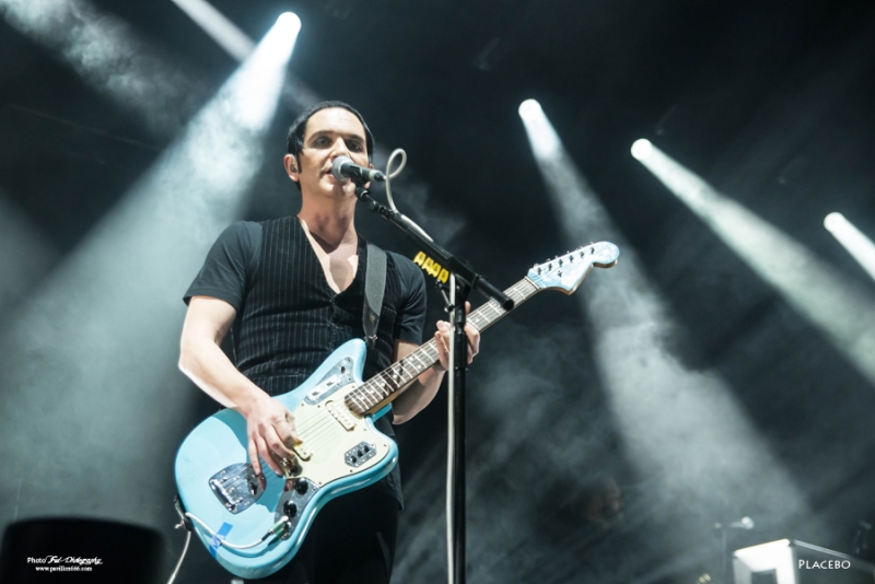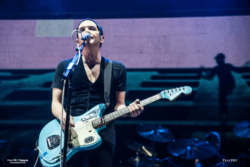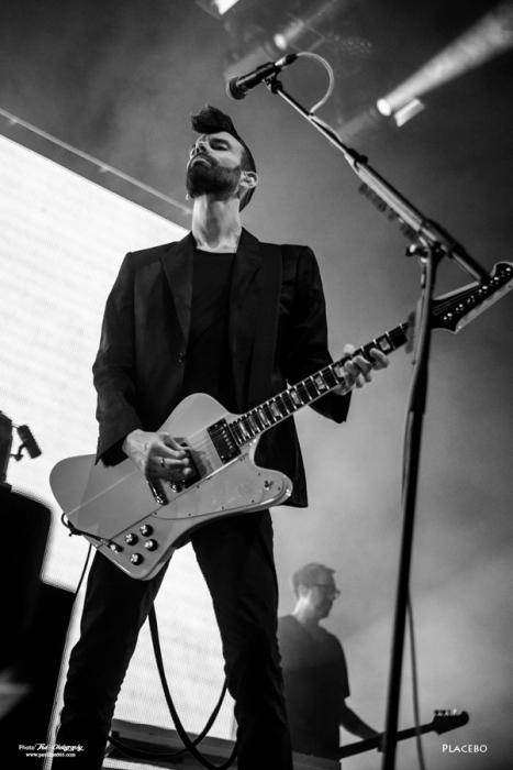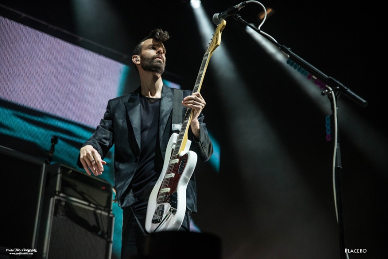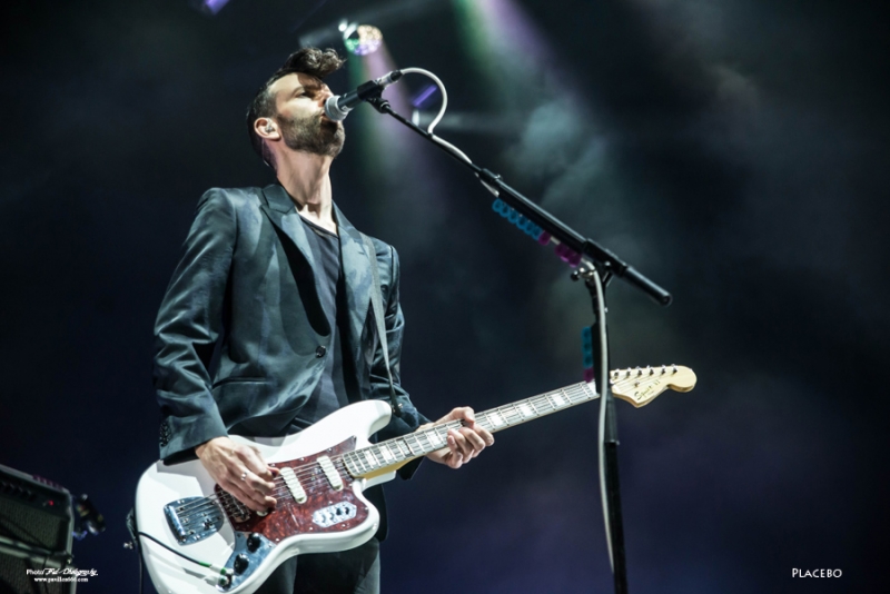 Présent en 2006 et plutôt déçu par le groupe, en particulier par le manque total de communication avec le public et donnant plutôt l’impression de voir des fonctionnaires faisant leur heures, sans grande passion, ni envie, j’attendais beaucoup de ce Placebo 2016, surtout à l’occasion de leur tournée anniversaire. Et pour le coup, on peut dire que cette fois-ci, ils ont vraiment mis les petits plats dans les grands. Une set list au top, déjà, passant des vieux classiques aux morceaux plus récents. Avec surtout, une belle place donnée au premier album, Placebo en jouera quelques titres dont « Teenage angst », »36 degrees » qu’ils ne font plus ou rarement depuis quelques années. On pourra peut-être regretter le choix de faire les versions lentes de certain de ces standards, qui pour le coup perdent en percussion et en puissance, mais ce n’est pas trop gênant. Et sur la communication, c’est beaucoup mieux, pas l’exubérance non plus, mais cela ne correspondrait pas trop à l’idée que l’on peu se faire du groupe.