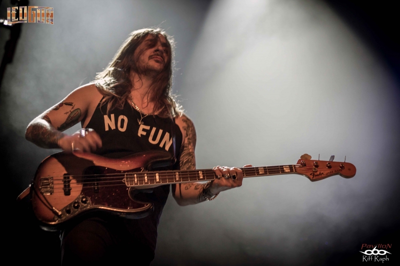 Avant cela un guest à l'annonce tardive ouvrait les hostilités. Les Anglais de Leogun avaient la lourde tâche d'ouvrir le bal avec un mélange rock/blues teinté par moments de stoner et de soul. Un choix un peu spécial pour commencer une soirée. Non pas que le groupe soit mauvais mais il aurait mérité sans doute une audience plus réceptive. Certes les musiciens n'ont pas ménagé leur peine mais ils n'auront pas réussi à allumer un début d'incendie dans une fosse plutôt sage. Un public respectueux qui applaudira néanmoins avec retenue le combo Londonien. A voir sans doute dans d'autres conditions et avec des formations dans la même veine. Après une pause houblon, il est temps d'investir le « pit » des photographes et d'entrée de jeu, en voyant la setlist scotchée sur scène, je suis étonné par le peu de titres qui seront joués ce soir. Déjà je sais que je ne vais pas rentrer tard à la maison. 12 morceaux, aller cela va taper dans 65/70 minutes. Autant dire qu'il va falloir savourer... Bon ensuite, je ne vais pas vous faire la réclame sur Airbourne, on sait comment cela fonctionne. Même si John a calmé ses ascensions intempestives sur les structures des scènes, il est toujours aussi fougueux dans ses déplacements. Sur un décor minimaliste et des effets réduits on comprend bien que nous sommes là pour la puissance des riffs à l'état brut. Jeans, Basket, T-shirt et basta. Ici on va à l'essentiel. Dans la fosse c'est le bordel. Comme des vagues, le public ondule d'un endroit à l'autre de la scène, il y aura du circle pit, du slam et John fera le tour de la salle porté par le public. Notre frontman emblématique se fera aussi un plaisir en distribuant de la 1664, les fans par la même occasion auront le droit donc à un shampoing gratuit à la bière... Mais le temps passera trop vite et au prix du billet je suis sur que les metalheads auraient bien aimé une petite rallonge sur une setlist qui ressemblait plus à celle d'un festival qu'à un véritable concert. Le show sera clôturé sur les célèbres « Live It Up » et « Runnin' Wild » histoire de terminer en puissance. En dépit d'une courte soirée ce concert aura été efficace, joyeux et bien burné. Bref, c'est du Airbourne et ça fait du bien par où ça passe... Mes remerciements à Julie Lanet de Live Nation et Olivier Garnier de Replica Promotion pour l'accréditation, le pass photo et cette excellente soirée Setlist : 01.Ready to Rock 02.Too Much, Too Young, Too Fast 03.Chewin' the Fat 04.Rivalry 05.Girls in Black 06.It's All For Rock N' Roll 07.Down on You 08.Breakin' Outta Hell 09.No Way but the Hard Way 10.Stand Up for Rock 'n' Roll Rappel : 11.Live It Up 12.Runnin' Wild Pour des raisons de confidentialité YouTube a besoin de votre autorisation pour charger. Pour plus de détails, veuillez consulter nos Politique de confidentialité. |