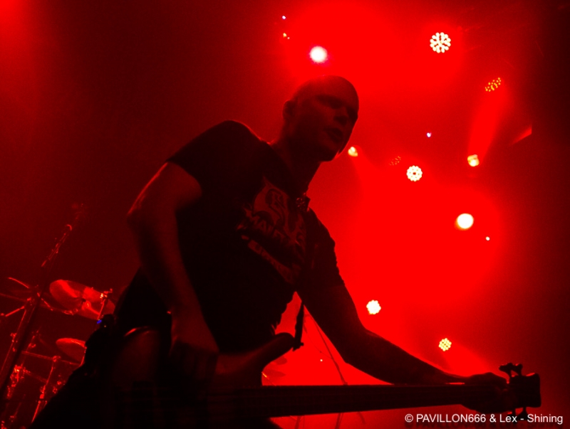 Shining nous offrira donc un spectacle, énorme, sombre, rageur, hypnotique, des ambiances plus douces et mélodiques dues non seulement aux capacités vocales de Niklas mais également grâce à la virtuosité de ses 2 guitaristes.