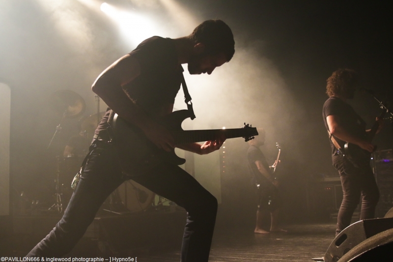 Place aux Montpelliérains d'Hypno5e . J'ai découvert ce groupe, comme beaucoup, en 2013 lors de leur tournée en compagnie de Gojira et j'en suis grand fan depuis. Ces gars sont des provocateurs d 'émotions diverses et profondes, chaque titre est ciselé et d'un niveau technique rare.
