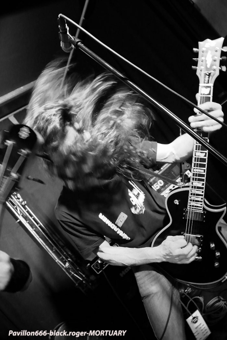 Nouveau venu sur la scène metal Lyonnaise, voici NAKMAJ qui a sorti sa première démo trois jours avant le concert. Alors en live, ça donne quoi ? Cela va bien, très bien même car n’oublions pas que certains membres ont déjà sorti du son auparavant. Nakmaj utilise la formule d’un hydre bicéphale avec deux grogneurs/aboyeurs faisant pencher la balancer vers le metal/hardcore « couillu ». Et derrière, ça tabasse sec, sans fioritures , sans faux semblants. Bravo les mecs on vous souhaite bonne chance pour la suite après avoir lancé cet après-midi à St-Etienne le premier son d’ouverture du Winter Blast. SHARKED emmené par l’Abbé Santa Maria a décidé de nous clouer au plafond avec son thrash/death brutal et plus si affinités. Ici on ne fait pas dans la porcelaine de limoges, on vous prend à la gorge et on ne vous lâche plus. « generalized death drive », titre de l’EP paru en juillet 2016 vous avait conduit sur les chemins du « cide » avec notamment « liberticide » et « suicide », et vous aviez adoré j’en suis sûr. Mais en live ça ne rigole plus, le set de Sharked va vous mettre un direct « in your face » comme on l’aime, saignant ou à point peu importe ! Du coup la chaleur dans la tanière à prit quelques degrés de plus et la sueur a fait son apparition dans les premiers rangs, on aime ! Après la tornade Sharked, voici l’ouragan BURN YOUR KARMA qui va faire un malheur avec un metal qui arrache, qui groove et qui détruit ce qu’il vous reste de neurones. Frontman qui s’envoie en l’air, musiciens arc-boutés sur leurs instruments, ça vous débouche les conduits auditifs de façon claire, nette et précise, sans bavure aucune, du boulot d’orfèvre sans la sphère métallique Et puis, scéniquement parlant le groupe rentre au contact du public, l’excite, lui rentre dedans. Alors je ne vous fais pas un dessin, les Stéphanois, jouant « at home » nous ont collé contre les murs, quel punch ! Petit détour en Suisse avec AM-PM de Vevey qui va défendre seul les couleurs helvètes, leurs compatriotes Genevois d’ELEVENTH n’ayant pu arriver jusqu’à St-Etienne ce Samedi comme dit plus haut, dommage. Le sang jeune du deathcore coule dans les veines de nos « petits suisses », mais méfiez-vous car dès le premier titre ils nous envoient du costaud. Leurs titres sont bien construits et donc imparable en live. Ici la lourdeur malsaine du death se marie bien à l’énergie du hardcore pour un résultat…bluffant ! Nos amis Suisses tirent donc leur épiingle du jeu dans ce monde bien remplit actuellement de deathcore/metalcore, alors on apprécie fatalement, groupe a voir et revoir sans modération. Les Annéciens de SHAYTAN nous proposent maintenant leur thrash/death brutal comme ils savent bien le cuisiner comme d’habitude. Comme d’habitude peut-être, mais pas ce soir. En effet, entre ennuis techniques et manque de cohésion, ce n’était pas leur soir on va dire. Mais nul doute qu’une prochaine date efficace effacera ce « mauvais » souvenir d’une prestation en demi-teinte. La Lorraine nous a envoyé ce soir deux représentants de la scène brutale death/grind avec DEPRAVED et MORTUARY DEPRAVED tout d‘abord qui n’est pas un nouveau venu dans le style du metal-de-la-mort qui tue… Et ceux de Nancy vont nous donner ce soir le plus pervers d’eux-même, le plus brutal, le plus malsain. C’est carré, net et sans faux plis. Amateurs de rriffs destructeurs, de « growls » meurtrier, la musique de Depraved est faite pour vous et ce soir visiblement vous avez apprécié il me semble leurs effluves qui depuis 20 année d’existence ont décidé de nous démolir le corps et l’esprit avec bien sûr les excès du grind en filigrane se rapprochant de ce que font Napalm Death ou encore Terrorizer. Set rageur et maitrisé, voilà ce que nous ont offert ceux de Depraved qui sont revenus en force après un « hiatus » de 7 ans (2044-2011). Bref, vous revenez quand vous voulez les gars ! Second groupe venu de l’est de la France, voici maintenant le fameux combo de brutal/death/thrash de Nancy MORTUARY, peut-être le plus ancien dans le style, si style il y a bien entendu (formé en 1989). Toujours sur la brèche le quintette nous offre un nouvel album en 2016 intitulé « nothingless than nothingness » après 27 ans de présence sur scène. Sur scène, parlons-en car ce soir Mortuary va tout casser dans la tanière avec un public acquit à sa cause qui se donne à fond sans fatigue nulle après avoir subi les assauts des 6 groupes précédents. Alors est-ce que l’on appelle ça la classe ? Peut-être, en tous cas Mortuary a convaincu encore une fois avec son death/thrash brutal certes, mais avec des passages mélodiques sous-jacents qui lui confèrent une certaine « patte » dans le genre. Alors leur set fut énorme tout simplement, qui osera prétendre le contraire après ce déluge métallique hivernal. En tous cas si vous allez au Hellfest cet été ne passez pas à côté de leur prestation, vous m’en direz des nouvelles ! Que dire de plus en conclusion ? Merci tout d’abord à l’organisation Bloody Noise et ses bénévoles qui ont organisé ce metalfest hivernal de main de maitre. Et puis merci aux groupes qui ont assuré sur les planches. Merci bien entendu a la Tanière pour l’accueil toujours convivial et puis merci au public qui a « blindé » les lieux et instauré une ambiance « ouf » du début à la fin. |