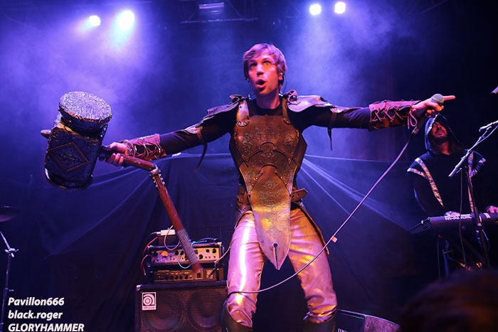 En effet nous avons passé un excellent moment avec ces chevaliers de l’espace qui nous ont invité à partager leurs délires « heroïc fantasy » intergalactiques. La surprise est au coin de chaque titre, les costumes sont innatendus, la tenue de scène est tout simplement hilarante même si le frontman casse à un moment son micro et pire, l’énorme marteau brandi en trophée. Alors, on aime ou pas ce groupe de power-metal engendré par Chris Bower d’Alestorm. Mais force est de constater que le côté « kitch », fort décrié par certains, passe très bien en live. Résultat un certain concept à découvrir sur scène si vous n’avez encore jamais vu Gloryhammer en action, vous ne le regretterez pas !