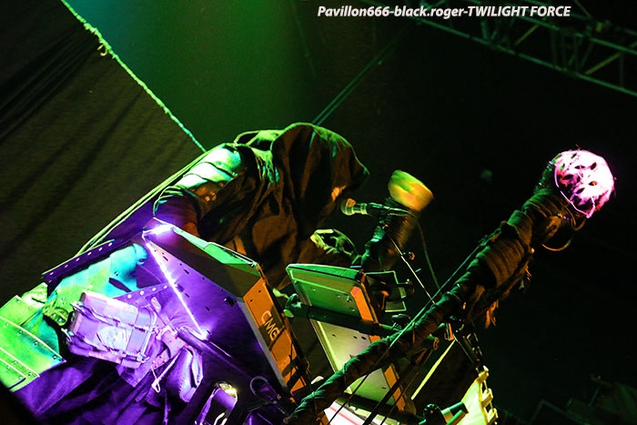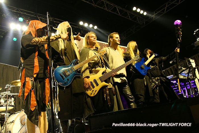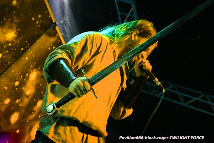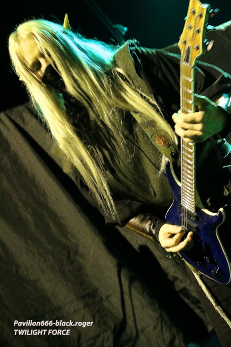 Lyon collectionne les « sold-out » en ce moment car après HAMMERFALL le lundi 23 Janvier au Ninkasi kao, voici que le lendemain Mardi 24 Janvier, c’est le Transbordeur qui affiche complet pour la venue de SABATON, ACCEPT et TWILIGHT FORCE. Cette date organisée par la SAS concerts avait en effet de quoi attirer la foule des grands soirs. Du coup la file d’a ttente pour rentrer dans les lieux faisait presque le tour de l’établissement, du rarement vu ici. Le problème c’est que les gens n’ont pu commencer à rentrer que vers 19 heures alors qu’à l’intérieur le premier groupe était sur scène à 19 heures 10…Résultat je suis arrivé dans le pit photo que pour prendre quelques clichés sur le dernier morceau de TWILIGHT FORCE. Alors ne pouvant chroniquer cette formation sur un seul titre je ne vous offrirais que quatre petites photos du groupe.
