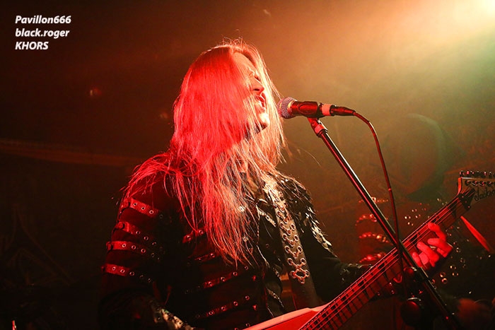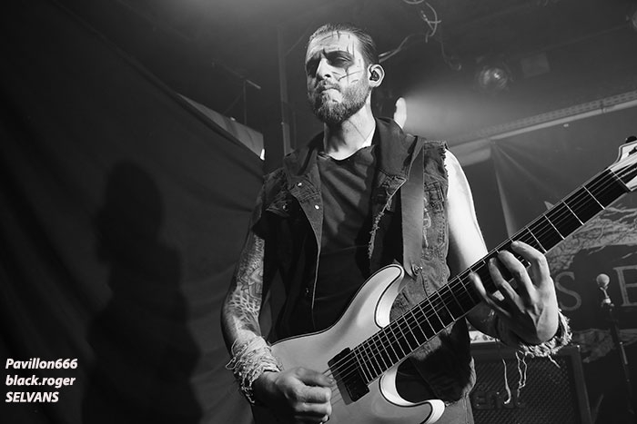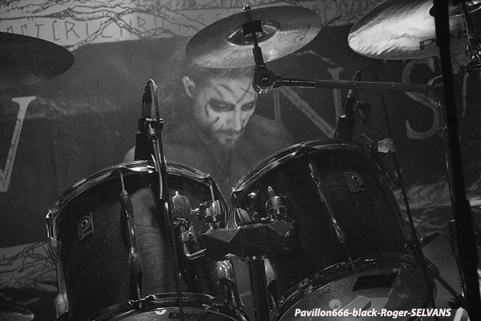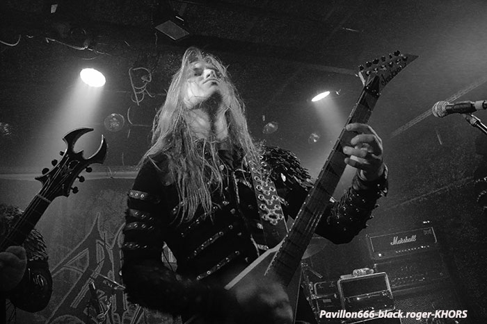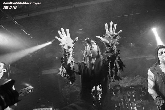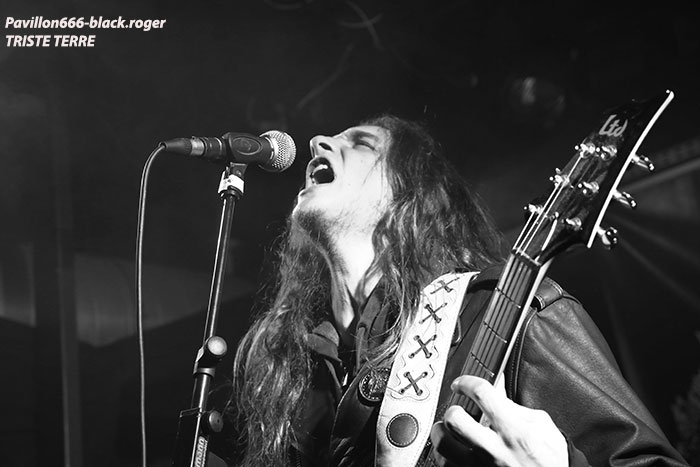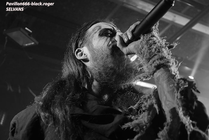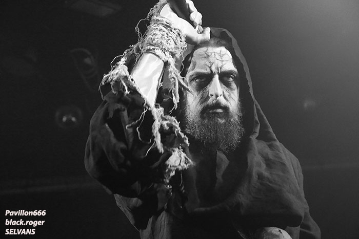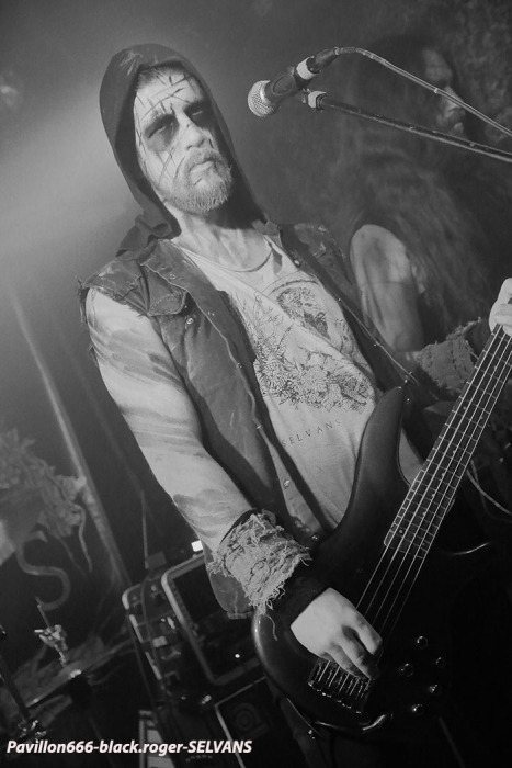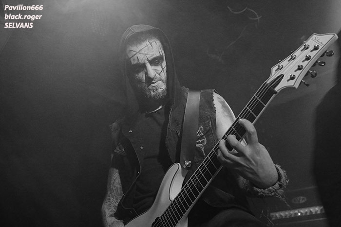 Après une discussion consacrée à l’approche du black-metal par certains membres des groupes, nous passons à la partie live avec en premier TRISTE TERRE. Second concert pour ce duo Lyonnais composé de deux guitaristes et d’une boite à rythme qui nous interpelle. Alors bien sur si on se réfère à leurs Eps de 2016, sur scène cela manque un peu de puissance, malgré les vocaux qui eux le sont. Le second guitariste dont le jeu est parfois approximatif n’est pas assez mis en valeur à mon humble avis. Mais laissons le temps au temps car leurs compositions sont intéressantes et la formation ne demande qu’à se développer notamment en live. Alors nous allons suivre leurs pérégrinations et peut-être que cette nouvelle chrysalide du black Lyonnais deviendra papillon. La suite va se révéler très très intéréssante avec SELVANS, « bonsoir Chambéry nous sommes vos cousins Italiens, nous sommes Selvans ». Et la bête est lâchée dès le premier titre avec une imagerie maléfique venant renforcer ce folk-metal issu du fin fond des forêts noires des Abruzzes. Les « lupi » Italiens nous proposent un black atmosphérique avec des touches folk bien senties et surtout bien placées au sein de leurs compositions. Et si par moments quelques sonorités rappelant les ritournelles transalpines se font jour ne vous étonnez pas. Selvans nous fait visiter sa région de prédilection avec un certain doigté. Et que dire de la chorégraphie scénique. Une chorégraphie riche en mouvements, en atmosphères et en tenues malsaines et « dépenaillées » qui vous font voyager immanquablement avec les esprits de la nature sauvage. Bref, Selvans est une formation atypique à voir et revoir sans modération vous m’aurez compris, je n’en reviens toujours pas de leur show de ce soir à Chambéry, enthousiaste oui, et même plus ! C’est au tour maintenant d’apprécier la venue des Ukrainiens de KHORS venant de Kharkov. Depuis une douzaine d’années et 6 albums nos amis de l’est de l’Europe nous proposent un black mélodique et profond flirtant bien souvent avec le doom. Le travail sur les guitares et la basse est assez soigné dans les parties les plus mélodiques, mais aussi dans les parties les plus violentes. Le voyage au travers des plaines froides d’Ukraine est garanti. Khors reste principalement sur des mid-tempos assez complexes instaurant par là même des ambiances mélancoliques et sûrement grandioses. Les Slaves nous offrent une musique sombre, prenante, relevée parfois par des soli inspirés ou par la rage des vocaux en ukrainien du frontman. Le groupe nous présente donc une musique miroir d’une certaine fierté faisant partie de l’âme Slave au travers de titres d’une sensibilité à fleur de peau, on aime tout simplement et l’on se dit que ce groupe est à revoir ici ou ailleurs avec un très grand intérêt. Merci aux organisateurs de cette soirée pas comme les autres qui a attiré un public motivé et conséquent. Merci aux trois formations pour leurs prestations intéressantes à plus d’un titre et merci à tous d’être venu dans la chaleur du Brin de Zinc en ce dernier Dimanche de Janvier. |