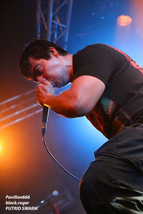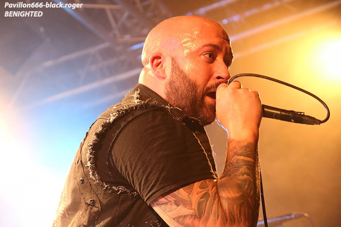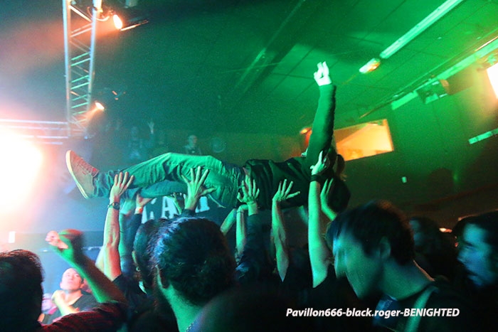 BENIGHTED débarque à l’Ampérage de Grenoble ce vendredi 10 Février. Nouvelle tournée, nouveau line-up, nouvel album, cette date est attendue avec impatience par un public venu en nombre s’éclater ou se faire éclater avec nos Stéphanois préférés qui sont bien décidés ce soir à déballer leur rayon boucherie on s’en serait douté. Mais auparavant, il convient d’apprécier les locaux de GRIM LANDSCAPE et de PUTRID SWARM, combos qui ne font pas dans la dentelle vous m’aurez compris.