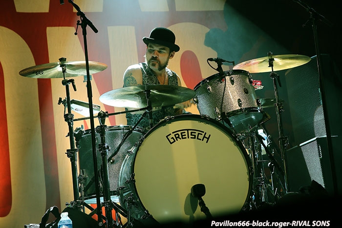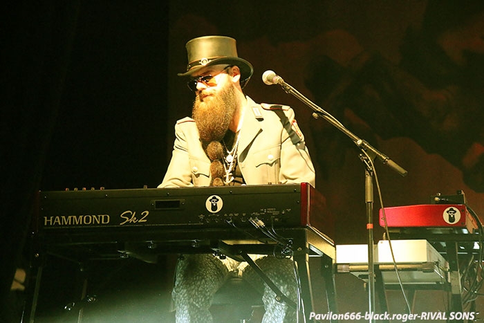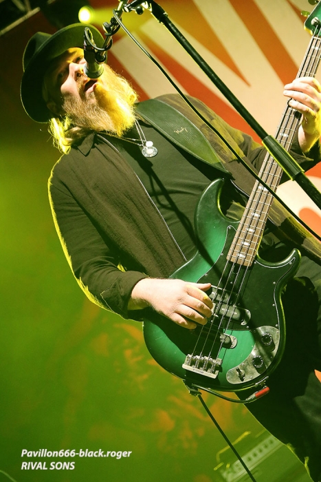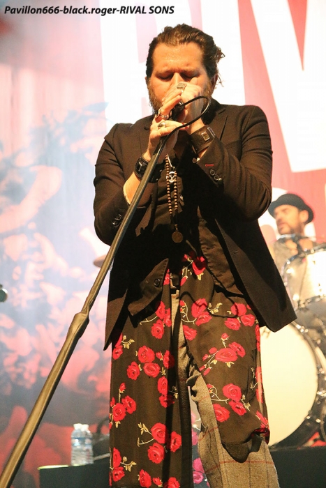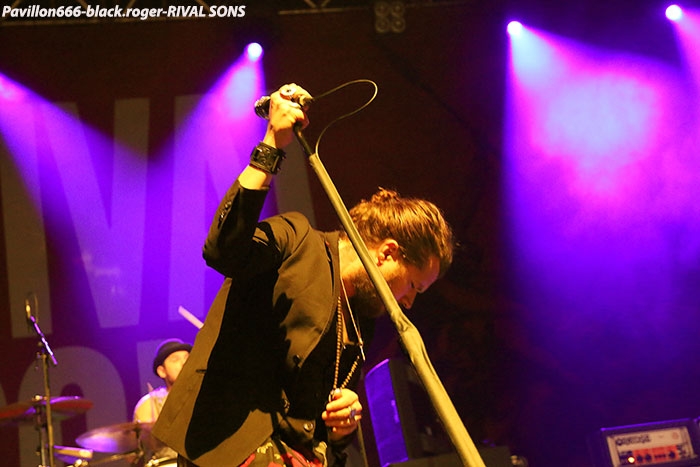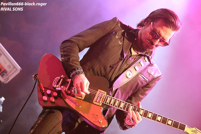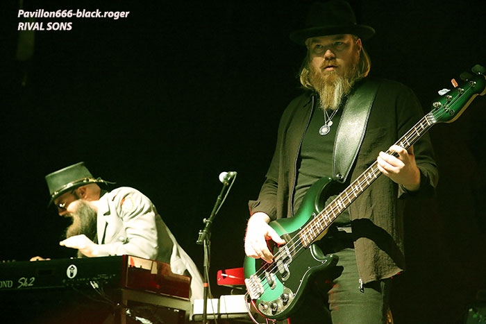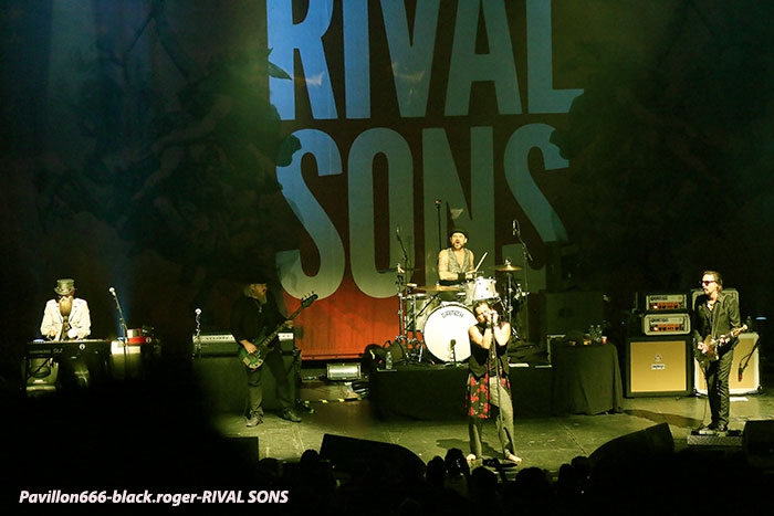 Durant une petite demi-heure, HOWIE PYRO ancien bassiste de Danzig et résident actuel de Intoxica Radio aux manettes va nous proposer sur deux écrans géants des films noir et blanc en adéquation avec des rocks vintages des 50 et 60’s, du rockabilly au r & b en passant par le psycho surf et le rock garage. Sympathique entrée en matière en l’occurrence. Quant à DERRICK C. BROWN présenté par Jay Buchanan, chanteur de RIVAL SONS, prend le relais. Ici place au poête qui, accompagné aux claviers ou avec des samples choisis, déclame ses textes devant un public qui ne comprend pas forcément la langue de Shakespeare, mais un public interpellé par la performance scénique du comédien. Et puis, et puis, le public semble s’impatienter avant la venue des californiens de RIVAL SONS. RIVAL SONS qui tourne actuellement afin notamment de nous présenter son nouvel opus intitulé « Hollow bones » Alors certains, me diront « boaf, encore un groupe de rock-blues revival des 70’s », et tourneront les talons. Mais allons plus loin, certes ils ne peuvent renier leurs influences Led Zeppelin, The Doors, ou encore Black Sabbath pour certaines rythmiques bien lourdes. Mais après s’être fait connaitre, non pas par leur deux premiers albums « before the fire » (2009) et « pressure & time » (2011), mais par des ouvertures de tournée en compagnie d’AC/DC, Alice Cooper ou encore Kid Rock et Judas Priest, ils ont bien avancé dans leur démarche. Ces rockers fans de blues un peu « hard » sur les bords travaillent dur afin de nous démontrer qu’ils savent composer des musiques plus personnelles, et ça marche ! Alors ce soir en live ils essaient de nous faire partager leur rock-blues teinté parfois de psyché. Le chanteur Jay Buchanan possède une voix phénoménale éraillée juste ce qu’il faut, et puis le guitariste Scott Holiday nous inonde de riffs bien placés, mais surtout se lance dans des soli sans fin qui vont ravir tous les guitaristes présents dans la salle. Mais, car il y a un mais, pour certains dont je fais partie, ballades et slows trainent en longueur et au bout d’un moment deviennent un peu trop répétitifs. Et à ce moment- là ne restent dans la tête que quelques titres qui font la différence et c’est un peu dommage. Trop de longueurs en live pour résumer la situation. Mais ne crachons pas dans la soupe du rock-blues fus-t-il « revival », RIVAL SONS fait son chemin à l’aide d’un chanteur charismatique et de musiciens hors-normes. Leur show vaut donc le détour pour l’instant à l’aide de compositions s’améliorant d’albums en albums. A suivre assurément pour tous les nostalgiques des 70’s et par tous ceux qui n’ont pas connu cette époque passée si riche musicalement parlant dans l’histoire du Rock. Set-list : hollow bones pt 1, tied up, thundering voices, electric man, secret, pressure and time, you want to, fade out, tell me something, face of light, torture, open my eyes, hollow bones pt 2, keep on swinging Merci aux organisateurs de la SAS Productions et merci au transbordeur pour l’accueil. |
