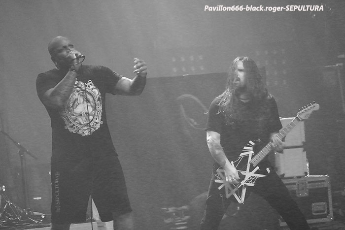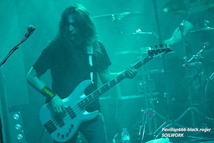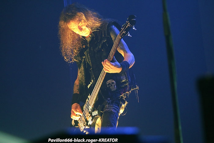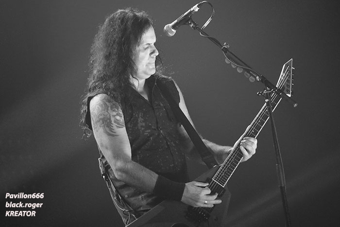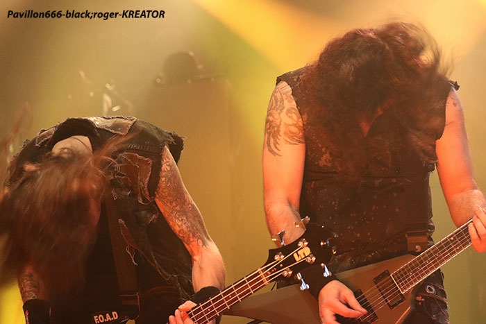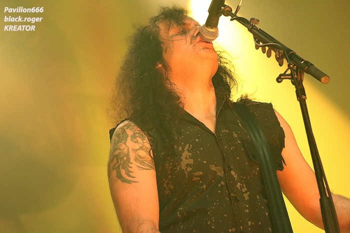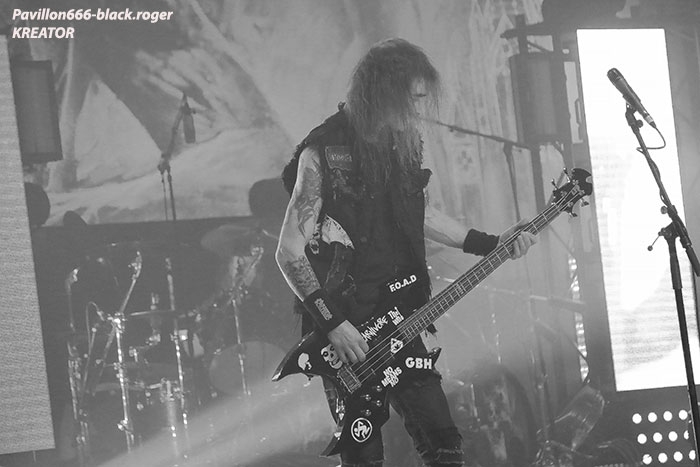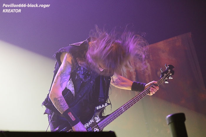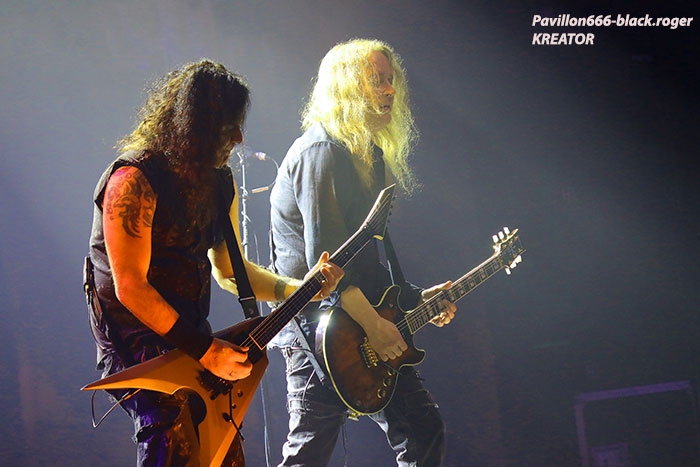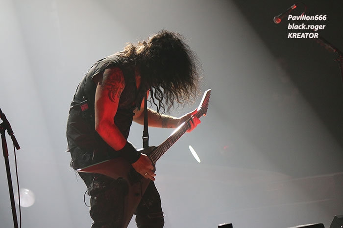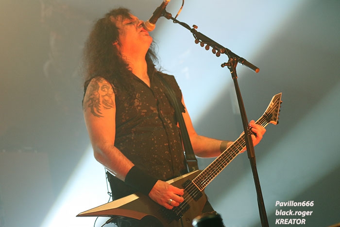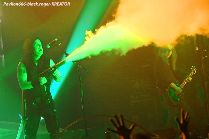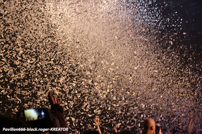 Mais avant il faudra attendre l’heure fatidique d’ouverture des portes à 17heures 45 afin de pouvoir pénétrer dans les lieux et vite se scotcher aux barrières de sécurité car à 18heures 10 le premier groupe d’ouverture, en l’occurrence ABORTED, va lancer le débat dans un brouillard rouge sang c’est le moins que l’on puisse dire pour ces afficionados Belges du brutal death/gore. Pas de « moules-frites » au menu mais de sombres cadavres sur scène en fond d’écran qui accueillent « Svencho » et sa bande. Aborted n’est pas venu ce soir à Grenoble pour enfiler des perles mais pour nous présenter à sa manière son nouveau « méfait » intitulé « retrogore ». Et si après un certain « adoucissement » au milieu d’une carrière de plus de vingt ans d’âge, nos bouchers belges favoris sont rentrés à nouveau dans leur « archaic abattoir » » et sur scène cela se sent, cela se ressent l’ayant déjà constaté pour ma part lors de leur prestation l’an dernier au Metaldays en Slovénie. Ce soir malgré un set assez court, Aborted ne va pas se contenter de « bourriner » avec du grind classique, mais nous faire profiter de compositions où les riffs et soli qui tuent sont techniquement éprouvés, alors nous avons dégusté dans tous les sens du terme, seul reproche les lights bien pauvres (ou leur absence) ce qui sera vrai pour le groupe suivant également. Set-list : divine impediment, cadaverous banquet, meticulous invagination, retrogore, coffin upon coffin, termination redux, bit by bit. Ce groupe qui prend la suite à 19heures n’est autre que SOILWORK de Suède avec une navigation dans les eaux troubles du death mélodique et du thrash, entre agressivité soudaine et voix claires mélancoliques. En vérité Soilwork même après une carrière assez longue et une discographie longue comme le bras se cherche toujours un peu, mais au final nous présente un certain metal reconnaissable entre mille qui a ses fans ultimes n’en déplaise à tous ceux (dont je fais partie) qui n’arrivent pas à adhérer pleinement à leur démarche. Mais rendons à César ce qui est à César, ce soir les Suédois nous ont offert un show très intéressant à tous points de vue, tenue de scène, technique des musiciens et set-list bien formulée, nous n’en demandions pas tant ! Set-list : the ride majestic, nerve, rise above the sentiment, bastard chain, the living infinite, the chainheart machine, two lives worth of reckoning, late for the kill- early for the slaughter, stabbing the drama. Et maintenant laydies & gentlemen voici SEPULTURA « do brasil » avec le géant Derrick, le guitariste Andreas (super amigos), le bassiste Paulo et le jeune prodige Eloy derrière les fûts. Un Sepultura que l’on ne présente plus et qui fait toujours (ou pas) l’unanimité même après le départ des frères Cavalera, max et Igor, mais nous pourrions en discuter durant des lustres. Tout ce que je vois et entends continue à être bon à prendre notamment avec les titres de leur dernier opus en date « machine messiah ». A condition bien entendu d’être ouvert d’esprit car Andreas Kisser a composé du différent, de l’original qu’il faudra peut-être « digérer » par la suite. Alors en attendant, comme ce soir, le soufflé prend (ou prend pas), la set-list nous propose du neuf, mais revient bien vite aux classiques que tout le monde connait et a envie d’écouter en live afin de se remémorer un certain passé disparu à jamais. Moi qui est toujours été un inconditionnel du groupe depuis ses débuts, je dois avouer que ce soir le cœur n’y était pas et j’ai trouvé la prestation de nos amis brésiliens un peu fade à part les effluves d’une batterie monstrueuse, est-ce grave docteur thrash ? Set-list : I am the enemy, phantom self, choke, desperate cry, alethea, sworn oath, inner self, resistant parasites, refuse/resist, arise, ratamahatta, roots bloody roots. Le moment attendu avec impatience semble-t-il par le public, c’est l’arrivée des vétérans du thrash Teuton KREATOR. Une arrivée qui se fait avec l’envoi dans la salle de milliers de rubans, il neige dans le Summum ce soir. Afin de nous présenter son nouvel album « gods of violence » sur scène, la bande à Mille Petrozza a mis les petits plats dans les grands afin de nous offrir durant une heure et trente minutes un show enflammé avec fumée, pyrothechnie à tous les étages, projections violentes en fond d’écran etc, etc… Si Kreator tiens toujours le « haut du pavé » dans le thrash Européen c’est qu’il a su nous cuisiner (sic, Mille) une recette faite de mélodies grinçantes et l’agressivité assumée de ses débuts. Et ça marche, preuve en est ce soir où le quatuor Allemand nous en a mis plein la vue (et les oreilles), la qualité étant toujours d’actualité, présence scénique en bonus, mais jusqu’où vont-il aller après plus de 30ans d’activité ? Pas de risque de monotonie ici, leur thrash passe comme une lettre à la poste, ici monsieur on sait varier les plaisirs, c’est le grand frisson. Du coup le temps a passé trop vite, leur show actuel est tout simplement immanquable, car même après avoir vu et revu ce combo depuis des lustres vous êtes à nouveau surpris dans le bon sens du terme. Je n’irai donc pas par « 4 chemins » en vous disant que ce soir Kreator a démonté le Summum de Grenoble avec une prestation d’anthologie, un régal mes amis métalleux vous ne pourrez pas dire le contraire ! Set-list : hordes of chaos, phobia, satan is real, gods of violence, people of the lie, total death, phantom antichrist, fallen brother, enemy of god, from flood into fire, world war now, hail to the hordes, extreme aggression, civilization collapse, violent revolution, flag of hate, under the guillotine, pleasure to kill. Après ce raz-de-marée métallique de Grenoble du 22 Février 2017, il ne me reste qu’à remercier Metallian Productions pou