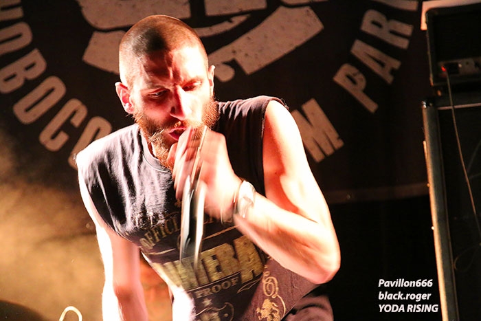 Il est 20heures 30 à l’horloge du Ninkasi Kafé lorsque les locaux de YODA RISING (prévenus seulement il y a une heure) montent sur scène et nous balancent en pleine poire leur hardcore musclé sans concession. Le quatuor constitué d’anciens membres de « coreux » lyonnais sait tenir la scène et envoyer la « purée » comme il faut avec ce soir un bon son qui favorisera le rendu de leur set. Ce set constitué de titres de leur premier EP de 2016 entre autres, mais pas que car de nouveaux titres sont en pré-prod actuellement. L’année 2017 est donc l’année de tous les dangers pour la formation, mais elle assure, notamment ce soir à Lyon pour ce concert imprévu mais qui a marqué les esprits, on aime !