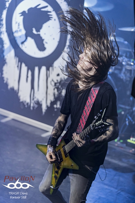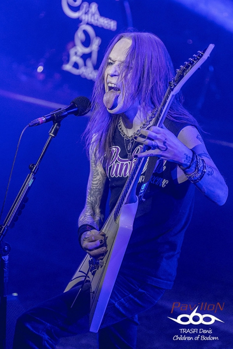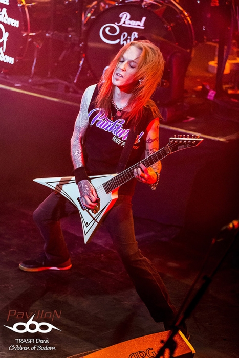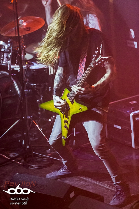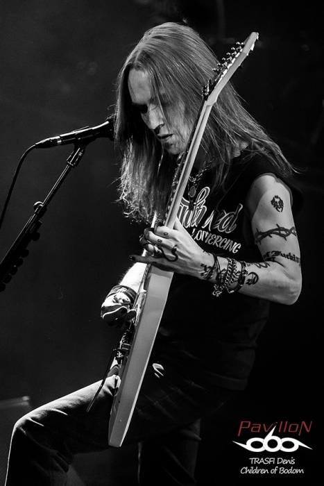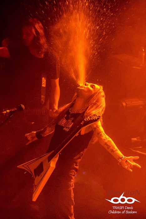 Une petite trêve pour mettre à niveau la perte de sueur, et le public est prêt pour accueillir leur groupe préféré. Children of Bodom investi les lieux. Le File 7 se transforme en champ de guerre. La salle se révolte et les premiers slams sont lancés dès la première note. C’est parti pour 1h30 de très gros show musical, technique et scénique. Les fans le savent bien et ne sont pas déçus. Les mélodies endiablées sont envoyées avec une facilité déconcertante. Les riffs, les montées de gamme, les solos, la rapidité de jeu et surtout la justesse d’exécution. Tout y est. Children répond aux attentes de leur fans. La sueur coule à flot. Le public est en ébullition, rare dans une salle de cette taille. Le leader interagit très facilement avec son public. Les jeux de lumières complètent bien l’ambiance générale du set. Côté morceaux, ils envoient du lourd mais alors du très très lourd. Même des morceaux rarement jouer sur scène sont lancé comme « Black Window » qui blase les 3/4 des guitaristes tellement la technicité est élevé. Je pense qu’il doit y avoir de très bonnes grat’ en vente sur le bon coin à bas prix à l’heure où j’écris ces lignes….