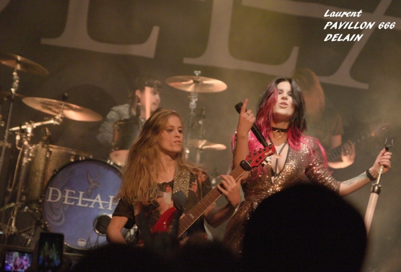 Un horaire très inhabituel (dû à une soirée prévue après le concert) m'a empêché d'apprécier les prestations de KOBRA et n'ai malheureusement pu assister qu'à la dernière chanson d'EVERGREY : « King of errors ». Visiblement, l'ovation réservée au groupe (couplé au nombre important de tee-shirts à l'effigie du groupe) me font dire que le groupe a réalisé une prestation grandement appréciée. Très bonne surprise, que ce concert puisque le Kao affiche complet. Cela montre bien l'évolution suivie par DELAIN dont la dernière venue à Lyon était en première partie de WITHIN TEMPTATION à la Halle Tony GARNIER. Le concert débute doucement, alors que l'on sent l'impatience monter dans la fosse, avec le titre instrumental « The Monarch » qui permet aux musiciens d'apparaître un par un. Le public est chaud et cela se ressentira tout le long du concert. Le groupe a misé sur le nouvel album car huit titres extraits de « MOONBATHERS » seront joués ce soir. Rassurez vous, le groupe ne néglige pas pour autant ses classiques et propose un best of de ces albums. Sur scène, l'apport de la nouvelle guitariste Merel BERCHTOLD se fait sentir et les morceaux gagnent en « épaisseur ». Incontestablement, le metal est fait pour les formations à deux guitares (avis tout à fait personnel) . Le groupe est joyeux, a l'air de prendre beaucoup de plaisir à être là ce soir (ou alors ce sont de très bons comédiens) et la frontwoman Charlotte attire tous les regards (sans manquer de respect aux autres musiciens) : il faut dire qu'elle tient très bien la scène,aidée de son charisme et de ses attentions envers le public. La différence avec le concert de la Halle est flagrant : dans une salle plus intimiste, le groupe délivre une prestation plus « chaude » que sur la grande scène de Tony Garnier et leurs morceaux nous prennent plus aux tripes. Le groupe participe plus ( sourires, headbanging, contacts avec les premiers rangs) et la promiscuité participe à l'ambiance. Le groupe est à l'aise ,détendu et cela se voit. Le final (trois chansons) est tout simplement grandiose : »Mother Machine » mais surtout « Don't let go » suivi de « We are the others » : tout simplement imparable. Le groupe peut quitter la scène après un tonnere d'applaudissements et nous avons là assisté à un excellent concert qui ,j'espère, nous permettra de revoir DELAIN et pourquoi pas sur la scène du Tranbordeur. Ce serait une juste évolution eu égard à la qualité du groupe. Rendez-vous est pris pour le prochain passage. |