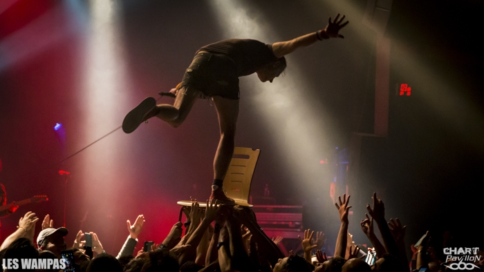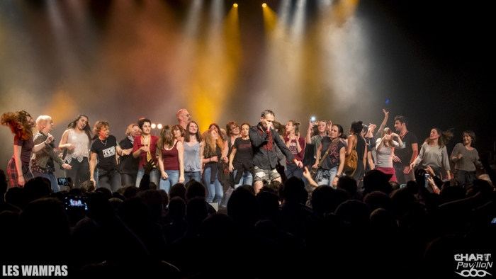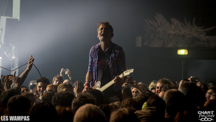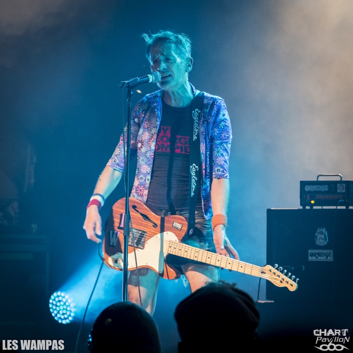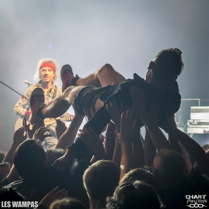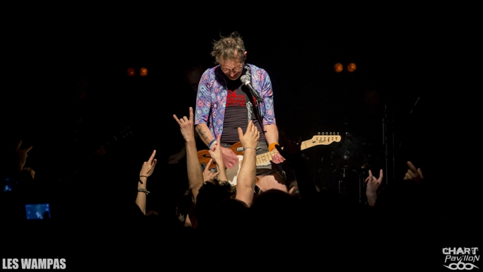 On attaque cette soirée avec le duo de BOTTLE NEXT. Lorsque l'on regarde sur le papier, il s'agit du duo d'un batteur et d'un guitariste. On se dit que l'on va sûrement avoir droit à un truc folk/pop avec de jolies mélodies acoustiques et un chant bien sympa quoiqu'un peu mielleux. Et ben pas du tout ! C'est même tout le contraire ! OK, il y a bien une guitare acoustique mais jouée de manière à faire pâlir d'envie les fans de Tom MORELLO qui depuis des années s'acharnent sur les riffs de RAGE AGAINST THE MACHINE. Et niveau batterie, c'est du côté du metal qu'il faut aller chercher. Oui, une double pédale peut très bien se marier à des riffs joués acoustique. Tout cela est franchement surprenant et d'une originalité singulière. C'est sincèrement du plus grand intérêt et rien de surprenant à ce que le groupe ouvre pour des groupes tels que MASS HYSTERIA, LOFOFORA et LES WAMPAS. Il y a là un potentiel et un talent immense à ne rater sous aucun prétexte. Doit on présenter un groupe qui ne lâche rien depuis 1983 ? Ce groupe fait partie des références du punk rock à la française depuis au moins deux générations et ne s'est jamais laissé avoir par les aspects commerciaux de la musique. Le groupe a certes envahit les ondes radios et télévisuelles avec le tube « Manu Chao » mais a tout de suite su reprendre sa place underground en sortant la chanson « Chirac en Prison ». La polémique et la controverse ont été de taille surtout pour les bien pensants parce que lorsqu'on y regarde de près, avaient ils vraiment tort ? Bon, on ne va pas polémiquer à nouveau mais avouez tout de même que certaines histoires ont quand même tendance à se répéter au sein de notre appareil politique. Heureusement qu'il existe des artistes pour nous permettre de lâcher un peu la pression de temps en temps. Et c'est bien ce qu'il s'est passé encore une fois ce soir avec ce concert. LES WAMPAS, c'est l'art de foutre le bordel dans une salle de concert en un rien de temps. On peut compter sur son leader charismatique pour ça. Du haut de ses 55 ans, ce retraité de la RATP a gardé une pêche d'enfer. On le voit sauter et courir dans tous les sens sur cette scène du Fil. Si d'autres des années 80 ont fini par jeter l'éponge, LES WAMPAS sont toujours là avec cette incommensurable énergie. Certes, il y a un peu de sang neuf avec le jeune guitariste Effello, que l'on pourrait prendre pour le fils de Didier et dont il n'est rien. Mais tout de même, ce concert déborde d'énergie. Avec des titres très courts, on n'en compte pas moins de 25 joués ce soir, le groupe ne lâche rien et enchaîne avec méthode. On peut citer quelques « Les ravers de Spezet », « C'est l'amour », « Yeah Yeah », « Patricia », « Rimini », « Comme un Punk en Hiver », « Ce Soir C'est Noël », « For The Rock », « Manu Chao », « Petite Fille » et pour conclure « Oï »... Coup de cœur pour cette soirée électrisante ! Oui, le rock ça fait du bien même quand les musiciens ne sont pas les meilleurs du monde. Il faut savoir prendre la bonne énergie là où elle se trouve et LES WAMPAS en ont des tonnes à vous offrir alors pourquoi s'en priver ! Merci encore au Fil pour son accueil ! Pour des raisons de confidentialité YouTube a besoin de votre autorisation pour charger. Pour plus de détails, veuillez consulter nos Politique de confidentialité. |