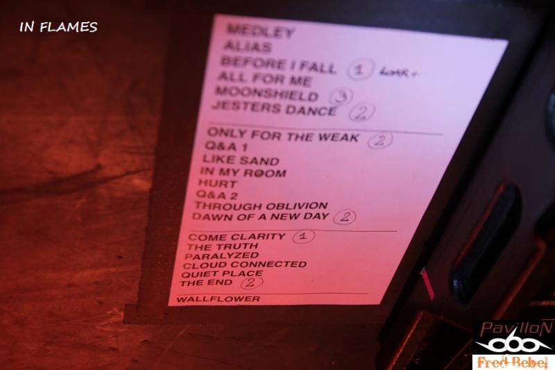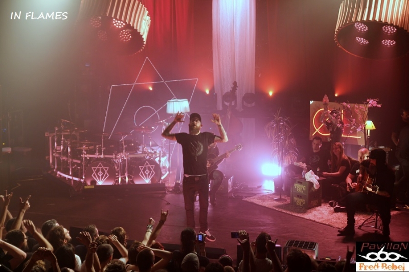 C'est la question que tout fan légitime peut se poser à l'écoute du dernier album tant celui-ci manque de créativité par rapport à un "Siren charms" déjà moins bon que son prédécesseur "Sounds of a playground fading". C'est pour trouver quelques réponses que je me rends à l'Alhambra ce mercredi 29/03 et apparemment je ne suis pas le seul car l'Alhambra est quasi sold-out ! Première surprise, le décor sur scène ! Un canapé, des statues, des tapis bref, on se croirait dans le salon cosi des Suédois. Premiers à arriver sur scène, un quatuor classique à cordes qui attaquent un medley de 35 titres du groupe en 10 minutes, un exploit réalisé sous les yeux de métaleux incrédules et pas franchement emballés. L'ambiance décolle enfin lors de l'arrivée de la bande à Anders Friden qui attaquent fort avec "Alias" suivi de titres du nouvel album et un quasi best of des tubes du combo. S'en suit une partie acoustique invraisemblable où le batteur et le bassiste s'installent dans le canapé, rejoints par une fan du public et son copain, tandis-que derrière eux un peintre entre en action sur une toile qui sera vendue en fin de show pour des oeuvres caritatives... Anders échange beaucoup avec le public, trop peut-être, cette partie acoustique est trop longue et fait retomber l'ambiance, dommage... Heureusement les zicos reprennent enfin la guitare électrique pour une fin de show à la hauteur du début. J'ai senti une certaine lassitude dans le discours d'Anders, les rumeurs de dernière tournée et l'accueil plus que mitigé du dernier album signeront-ils la fin d'IN FLAMES ? Au final je ressors du concert avec autant de questions qu'en arrivant... Merci à LIVE NATION pour l'accred et le pass photo. Setlit: Medley Alias Before I Fall All for Me Moonshield The Jester's Dance Only for the Weak Acoustic Like Sand In My Room Hurt (Nine Inch Nails cover) Through Oblivion Dawn of a New Day Come Clarity The Truth Paralyzed Cloud Connected The Quiet Place The End Wallflower Pour des raisons de confidentialité YouTube a besoin de votre autorisation pour charger. Pour plus de détails, veuillez consulter nos Politique de confidentialité. |