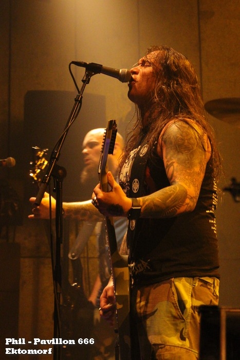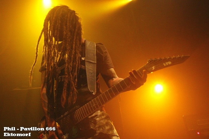 Avec une affiche aussi prometteuse, l'intensité devait monter tout au long de la soirée avec d'atteindre son zénith au moment opportun...Cet instant n'arrive pas toujours au moment attendu. Issue de la scène Australienne, Xtortya est une formation qui ne revendique pas AC / DC comme influence majeure. En effet, le quintette officie dans une tendance mêlant le metal au rap. Ayant peu d'espace sur scène de part la position de la batterie, les membres du groupe défendent leur musique en étant partagés de part et d'autre des fûts. Ce n'est pas un obstacle pour les musiciens qui prennent d'assaut la scène et se démènent sans économie. Musicalement, ce métissage est apprécié par l'assistance qui est essentiellement venu pour la tête d'affiche, l'ensemble est dynamique et puissant mais il ne manque l'étincelle pour permettre au public participatif d'exploser avec le groupe. Les hongrois de Ektomorf vont eux aussi évoluer dans une configuration offrant peu d'espace. Tout comme leurs prédécesseurs, ils vont oublier cette mise en scène et se donner à fond. La différence avec le groupe d'ouverture est que la quartette va mettre une tempête dans la salle. Le metal / thrash façon les ainés de Sepultura va emmener les foules du début jusqu'à la fin du set. Tout est en place, tant dans le domaine musical que dans la prestation scénique. Avec un show énergique à l'image de sa musique, Ektomorf sans être intimidé par les américains à venir sont en passe de prendre la vedette sur la salle de l'Empreinte. La suite nous confirmera ou non cette position. Attendu par de nombreuses personnes dans la fosse, Ill Nino doit en l'espace d'une soirée faire revivre à certains des souvenirs de jeunesse. La venue des américains doit permettre de retrouver les sensations connues à la grande époque du sextette. Cette tournée en l'honneur du premier album "Revolution Revolución" revient sur la genèse du groupe. Durant quinze année, l'enfant malade a sillonné les continents et a dispersé sa musique avec brio. Il est parfois difficile d'être et avoir été, ce constat est confirmé ce soir. Bien que le groupe soit musicalement en place, que la prestation soit animée, que l'investissement des musiciens soit présent, que l'équipe technique ait offert une production et des lights parfaits, le show ne dégage pas l'intensité espérée. Est ce du fait, des difficultés vocales de Cristian Machado, lors des passages hurlés ? Toujours est-il que le phénomène n'envahit pas la salle, la puissante est au rendez-vous, l'énergie aussi mais chacun reste un peu sur sa faim. L'assistance attend l'assaut brutal qui fera chavirer l'embarcation, qui fera écrouler la maison, mais celui-ci ne vient pas. Parfois la tête d'affiche n'est pas positionnée au bon endroit sur la liste des intervenants, ce n'est guère important. Une nouvelle fois, l'équipe de l'Empreinte a proposé un évènement riche en émotions. |