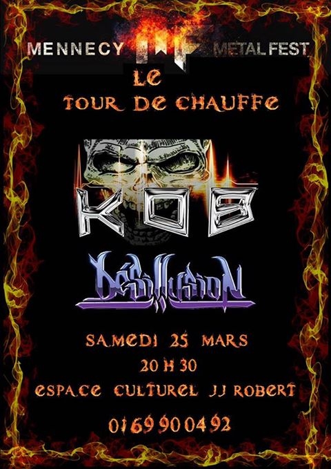 Organisé par l'équipe du Mennecy Metal Fest, le tour de chauffe de KOB permet de revoir sur scène la formation après six ans d'absence. Leurs compagnons de warm-up sont des habitués de la scène et des fidèles de la NWOBHM. Un programme riche en heavy metal, power metal issus de 80's.